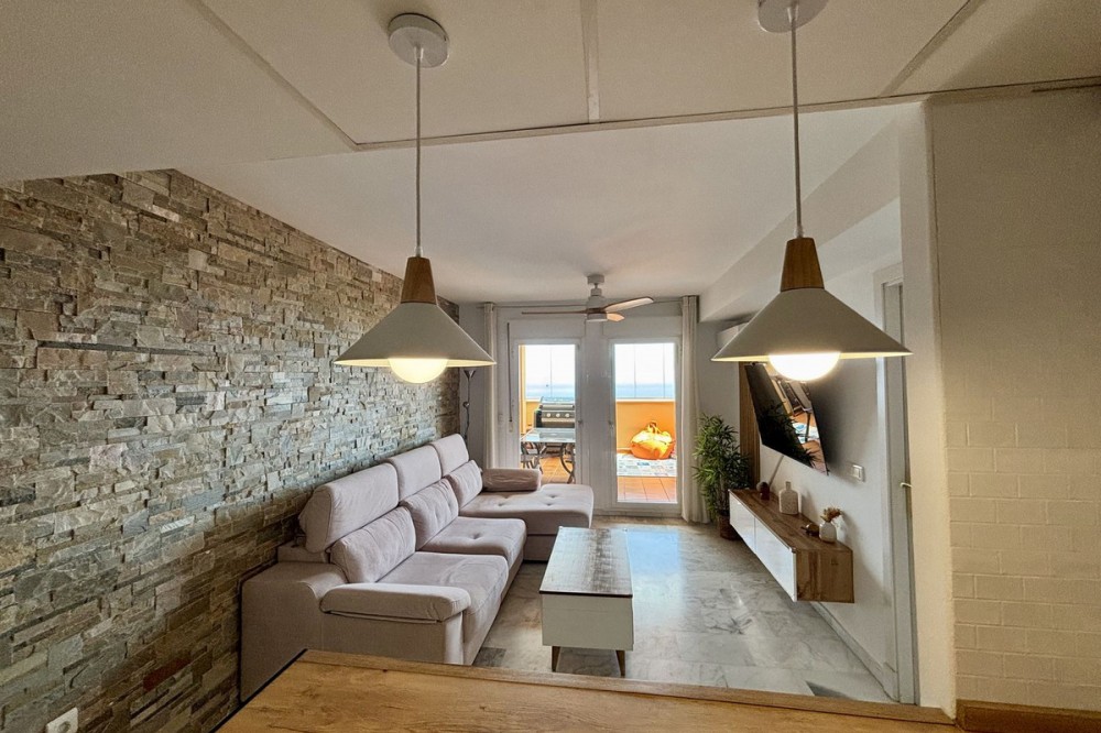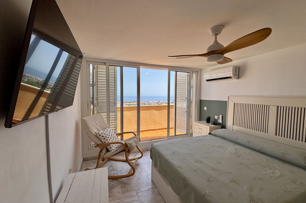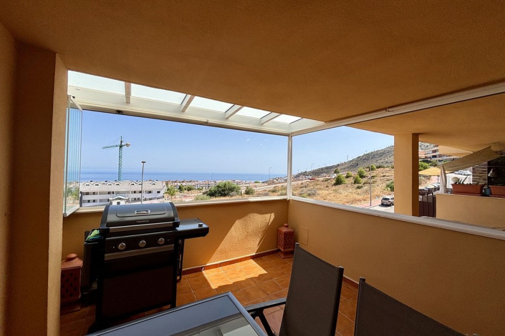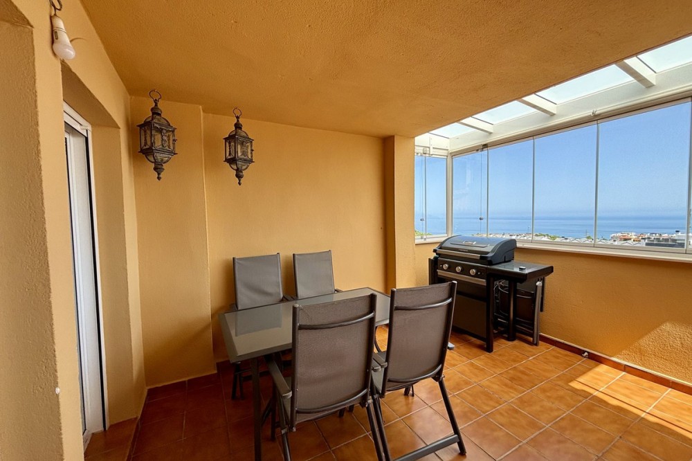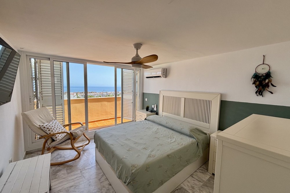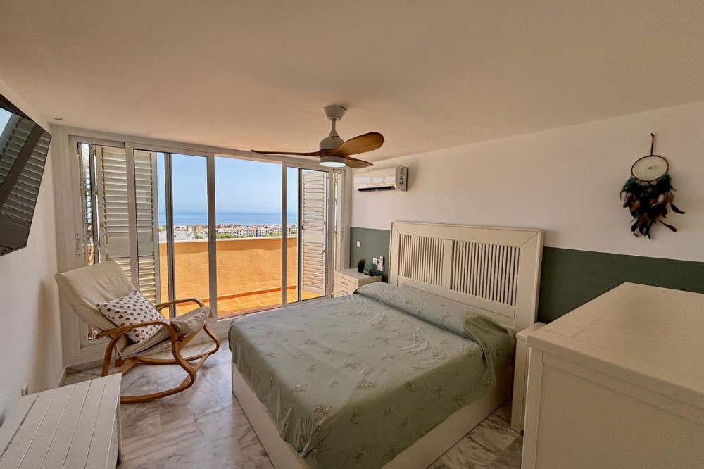 - Discover this spectacular penthouse with sea views that will make every day feel like a vacation! Located in a peaceful, natural setting, this home offers a perfect combination of comfort and beauty. With 140 m² of built area, it features 3 spacious bedrooms and 2 bathrooms, ideal for family enjoyment. The terrace covered with glass curtains is the perfect place to relax while gazing at the sea horizon. The property is very well connected, with quick access to the highway and just 15 minutes from the airport. It is also located a stone's throw from the beach and offers mountain access, making it an ideal spot for nature lovers. Energy efficiency is guaranteed thanks to the installation of solar panels, which not only reduces the environmental impact but also helps keep energy costs low. The penthouse, built in 2007, is in good condition and features built-in wardrobes, a storage room, and a parking space included in the price. The south-facing orientation ensures excellent light throughout the day, while the air conditioning and pool are details that add comfort and quality of life. Don't miss the opportunity to live in this wonderful space where tranquility and beauty come together. Come visit and fall in love with your new home! In compliance with Royal Decree 218/2005 of the Andalusian Regional Government of October 11, consumers are informed that the prices indicated do not include expenses derived from the purchase of real estate according to current laws (ITP, notary fees, etc.). There are no real estate brokerage fees additional to the sale price. Images and videos may vary slightly since the property is inhabited and images from the start of the development have been used.