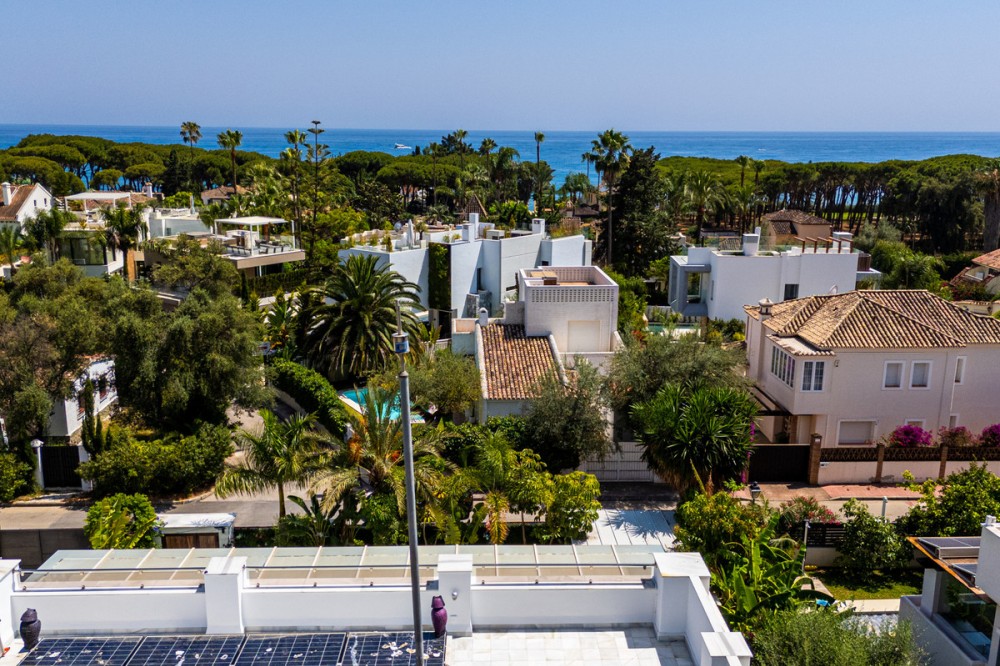 - Nestled in one of Marbella’s most exclusive beachside enclaves, Villa Veliko is a luxury Andalusian home designed for modern coastal living. The villa offers four spacious bedrooms, a private pool, and landscaped gardens just moments from the Mediterranean Sea. Bright open interiors and refined finishes create a calm and elegant space perfect for everyday comfort and entertaining. Inside, the villa features an open-plan living and dining area with large windows that fill the rooms with natural light and views of the garden and sea. The contemporary kitchen includes a central island and premium appliances. The master suite provides a private retreat with a walk-in wardrobe, lounge area, and ensuite bathroom. A fifth bedroom can easily be added if needed. Outdoors, Villa Veliko delivers the essence of Marbella living. The garden includes a sparkling pool, sun terraces, and a bar area ideal for gatherings. The rooftop solarium offers 360-degree views of the sea and La Concha mountain. This villa is a rare opportunity to own a luxury beachside property that combines Andalusian charm with modern design.
