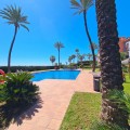 - MAGNIFICENT 3-BEDROOM GROUND FLOOR APARTMENT WITH PRIVATE GARDEN ON THE BEACHFRONT Enjoying an excellent beachfront location with direct access to the coastal path and Casares Beach, just minutes from the Finca Cortesín Golf Course, one of the most prestigious golf courses in Spain, which has hosted numerous high-profile events, including the Volvo World Match Play Championship three times and the 2023 Solheim Cup. Just a 10-minute drive from Estepona and 4 minutes from San Luis de Sabinillas with its beautiful and picturesque Puerto de La Duquesa. Close to supermarkets, schools, and the new Estepona Hospital. This LARGE GROUND FLOOR APARTMENT WITH PRIVATE GARDEN AND SEA VIEWS has DIRECT ACCESS TO THE BEACH and is SOUTH FACING. The property boasts a spacious entrance hall leading to the spacious living-dining room with large windows that connect to the large covered terrace, which is enclosed by glass curtains and provides abundant natural light and beautiful views of the sea and the garden from inside the house. The open-plan kitchen is fully equipped and has a laundry room. These common areas have a guest toilet located next to the entrance of the house. The three bedrooms of the home are distributed from the living room area. The two guest bedrooms have large built-in wardrobes and large windows overlooking the beautiful communal gardens. Adjacent to them is a full bathroom with a bathtub and underfloor heating. The spacious master bedroom has a dressing area and an en-suite bathroom with a whirlpool bathtub, separate shower, double sinks, and underfloor heating. This bedroom also has direct access to the private terrace. The home enjoys beautiful and well-maintained common areas with several swimming pools and ideal gardens. GREAT OPPORTUNITY TO EXPERIENCE THE LUXURY OF HAVING YOUR HOME ON THE SHORES OF THE MEDITERRANEAN SEA!!
