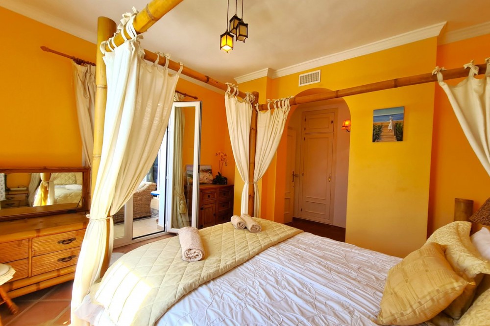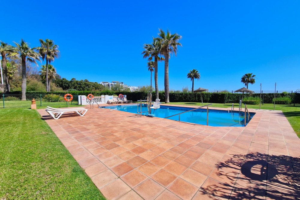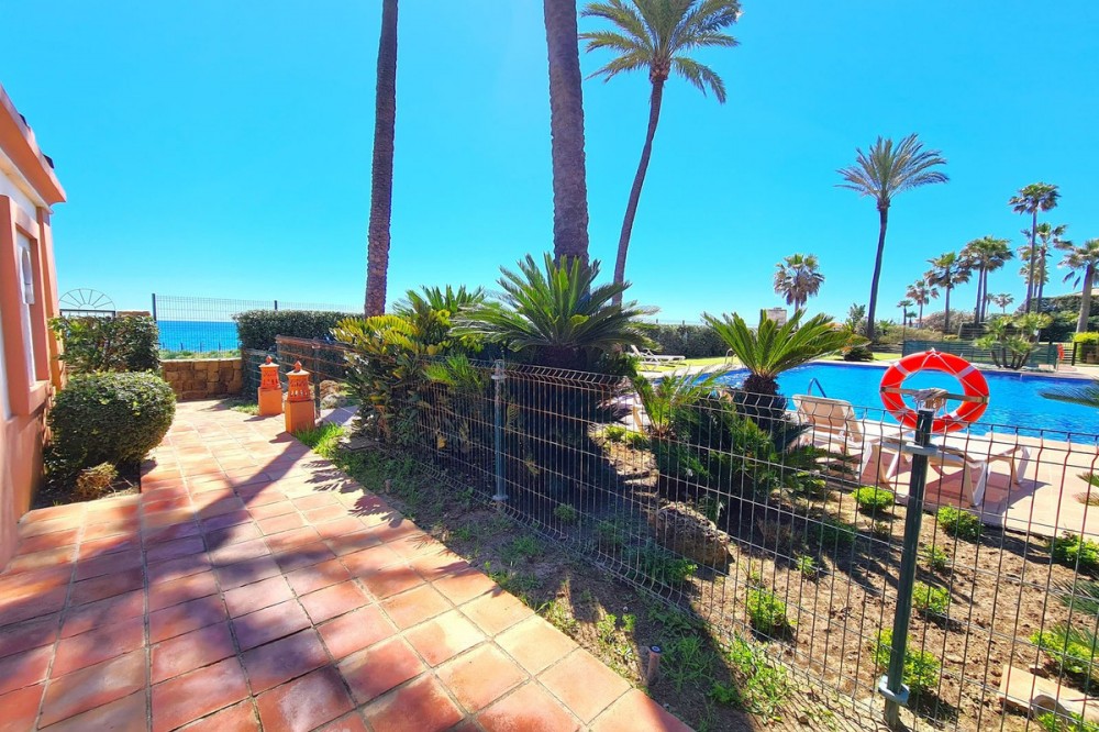 - MAGNIFICENT 3-BEDROOM GROUND FLOOR APARTMENT WITH PRIVATE GARDEN ON THE BEACHFRONT Enjoying an excellent beachfront location with direct access to the coastal path and Casares Beach, just minutes from the Finca Cortesín Golf Course, one of the most prestigious golf courses in Spain, which has hosted numerous high-profile events, including the Volvo World Match Play Championship three times and the 2023 Solheim Cup. Just a 10-minute drive from Estepona and 4 minutes from San Luis de Sabinillas with its beautiful and picturesque Puerto de La Duquesa. Close to supermarkets, schools, and the new Estepona Hospital. This LARGE GROUND FLOOR APARTMENT WITH PRIVATE GARDEN AND SEA VIEWS has DIRECT ACCESS TO THE BEACH and is SOUTH FACING. The property boasts a spacious entrance hall leading to the spacious living-dining room with large windows that connect to the large covered terrace, which is enclosed by glass curtains and provides abundant natural light and beautiful views of the sea and the garden from inside the house. The open-plan kitchen is fully equipped and has a laundry room. These common areas have a guest toilet located next to the entrance of the house. The three bedrooms of the home are distributed from the living room area. The two guest bedrooms have large built-in wardrobes and large windows overlooking the beautiful communal gardens. Adjacent to them is a full bathroom with a bathtub and underfloor heating. The spacious master bedroom has a dressing area and an en-suite bathroom with a whirlpool bathtub, separate shower, double sinks, and underfloor heating. This bedroom also has direct access to the private terrace. The home enjoys beautiful and well-maintained common areas with several swimming pools and ideal gardens. GREAT OPPORTUNITY TO EXPERIENCE THE LUXURY OF HAVING YOUR HOME ON THE SHORES OF THE MEDITERRANEAN SEA!!
