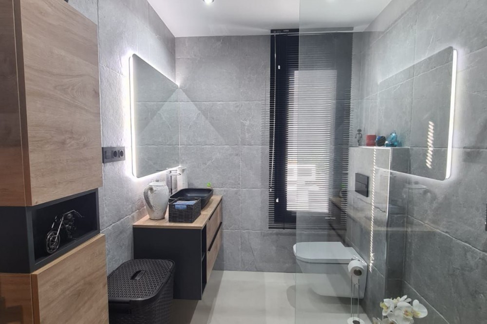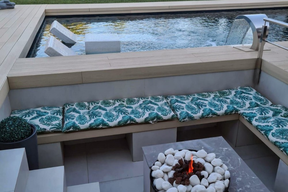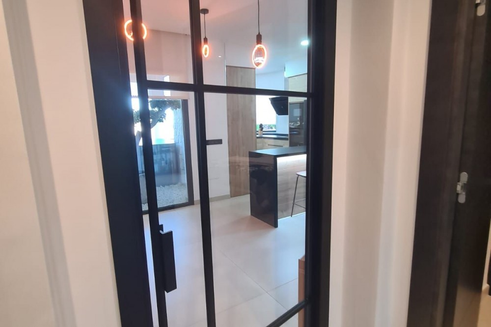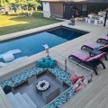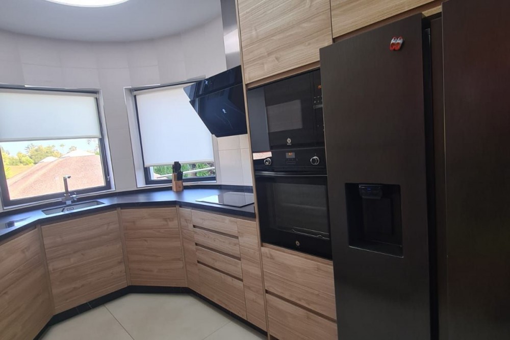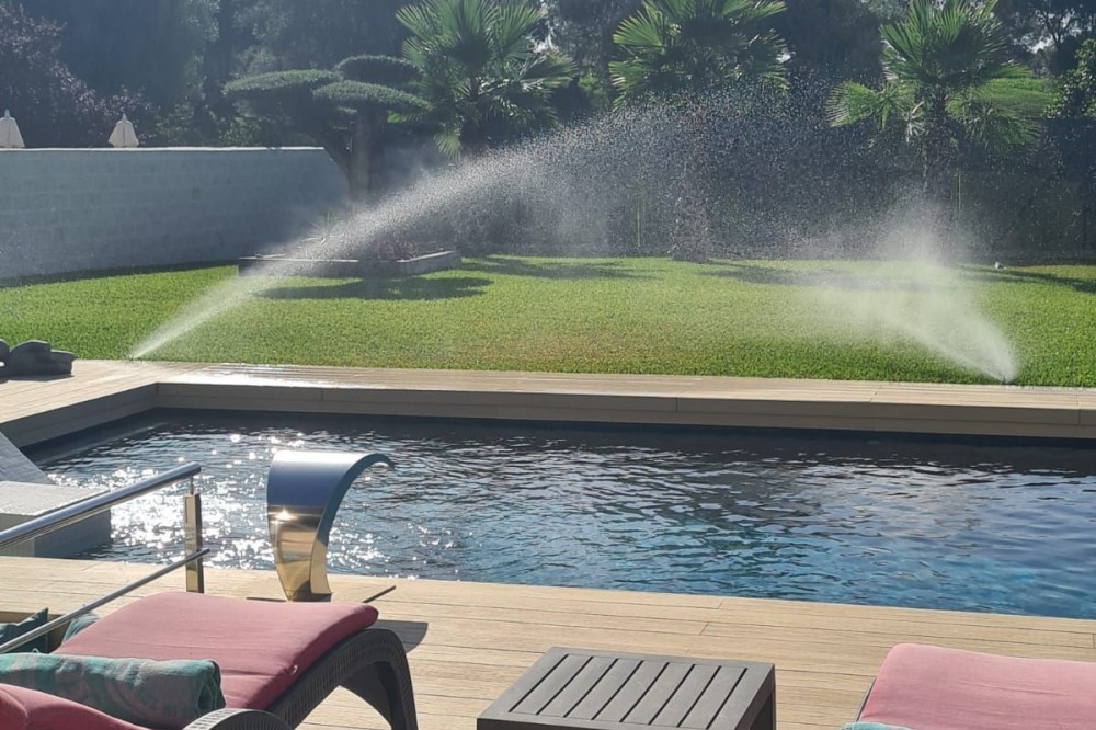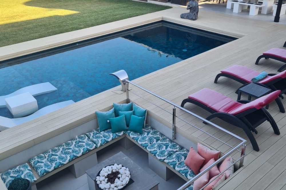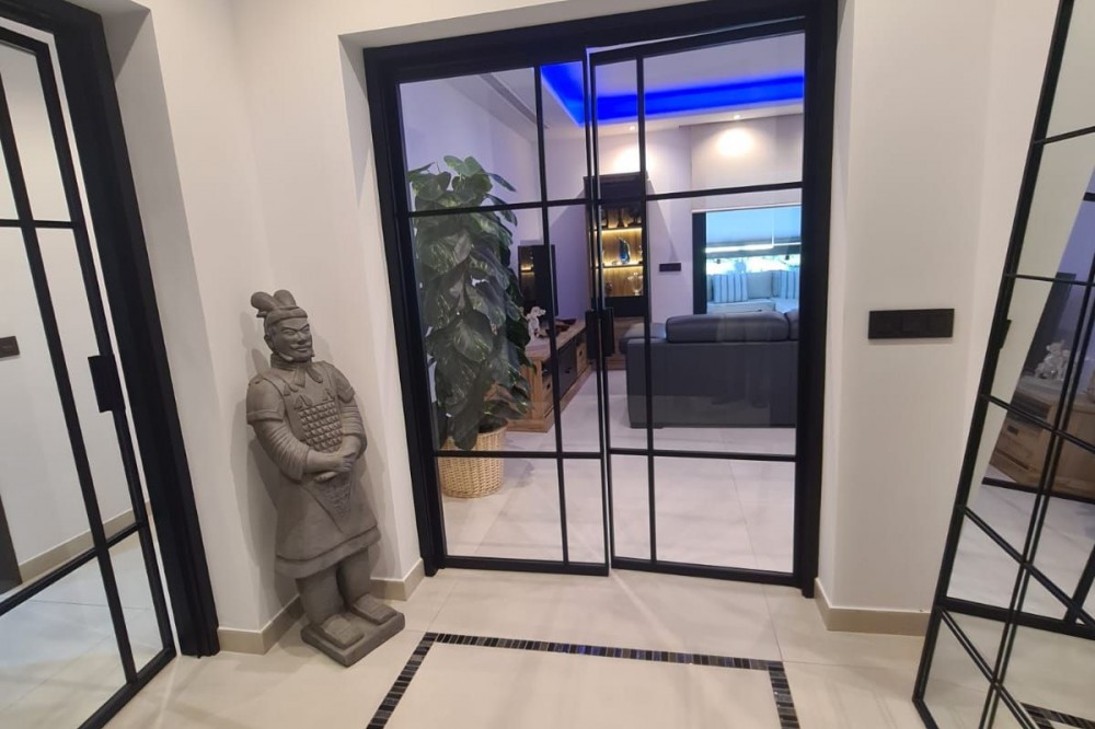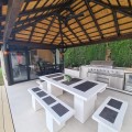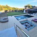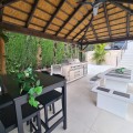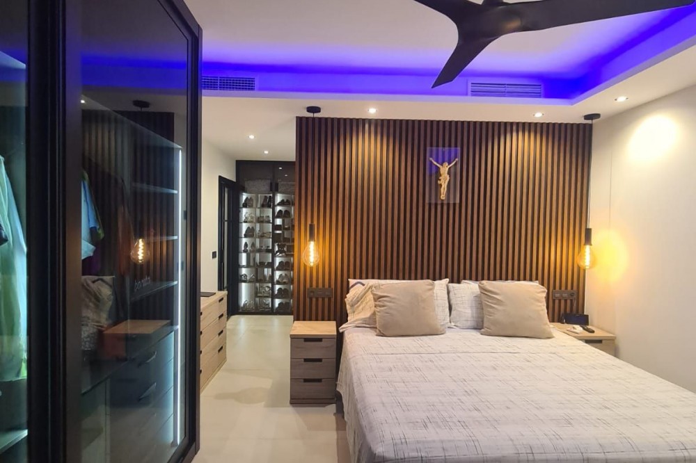 - Single-storey villa, completely renovated with high-quality finishes, located in a quiet area of the sought-after Mijas Golf residential area, on a 1,065-square-metre plot. This villa is an exceptional residence that combines contemporary design with elegance and offers a relaxed lifestyle in a well-connected neighbourhood The meticuloustly designed areas enable enjoymet of every aspect of the house. An elegant entrance porch with a pivoting security door leads to a very welcoming hallway that separates the master bedroom from the rest of the house. Spacious living-dining room that connects directly to a semi-open kitchen and leads to a covered seating area where you can enjoy the views even from an integrated jacuzzi. The suspended fireplace and décor create a very sophisticated atmosphere. Master suite with dark glass illuminated wardrobe and shoe organiser. Modern bathroom with elegant bathtub and walk-in shower. Guest bedroom Cinema room /third bedroom Shower room. The villa is equipped with individually controlled ducted air conditioning, alarm system, solar panels. All rooms have been tastefully furnished, adding a refined style to the property. Wooden gazebo with thatched roof with a summer kitchen and dining area Gym/yoga area, sauna and a guest toilet Balinese-style swimming pool and shower, surrounded by synthetic wood-effect flooring. Chillout area next to the pool Carpot for 3 vehicles next to a secondary entrance. Machinery/garden/storage room Exceptionally well-kept garden with palm trees. Cobblestone terrace Sold fully furnished and with most of the ornaments