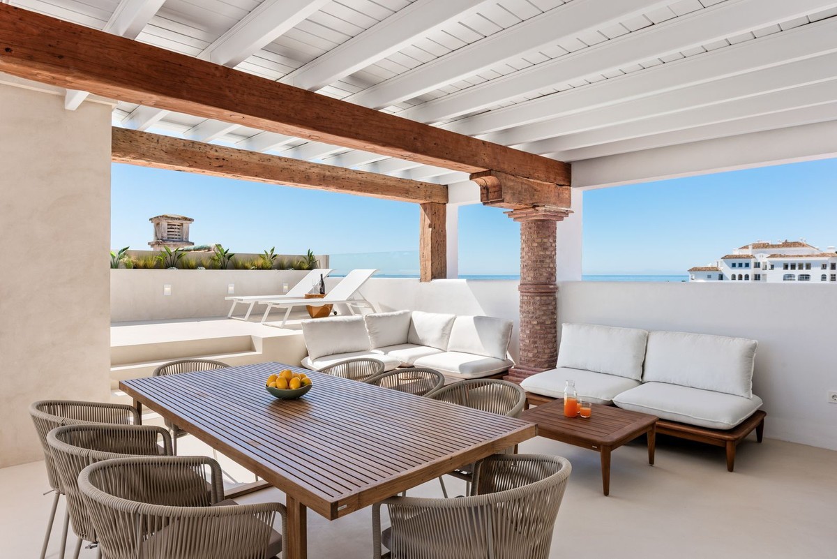 - We present this stunning property in an unbeatable location: a duplex penthouse in the sought-after enclave of Puerto de La Duquesa, Manilva (Málaga). With 133.51 m² of built area and a spectacular 38.02 m² terrace, this unique home combines contemporary design, comfort, and a relaxed seaside lifestyle. Distributed over two floors, the property offers four spacious bedrooms, three full bathrooms (two of them en suite), and a guest toilet. The residence has been completely renovated with high-quality materials and is delivered fully furnished and ready to move in. The modern and functional kitchen opens to the living-dining room in an open-plan space that connects to an uncovered terrace with impressive panoramic views of the sea, the coastline, and the marina. One of the main attractions of this property is its compact heated plunge pool located on the solarium, an ideal spot to enjoy the Mediterranean climate in total privacy. Additionally, it features air conditioning on each floor, built-in wardrobes, an elevator, barbecue area, and a charming wooden porch that provides shade and warmth to the outdoor space. Located in the heart of La Duquesa marina and surrounded by all amenities: shops, restaurants, transport, schools, and leisure areas, this property offers the best of both worlds: tranquility by the sea and a lively atmosphere with everything within reach. An unrepeatable opportunity to acquire an exclusive home on the Costa del Sol. Contact us for more information or to arrange a viewing. Your new home by the sea awaits! Descripción extra The property includes two generous garage parking spaces, located in the nearby Cigala building, an added value that provides comfort and security to your investment.