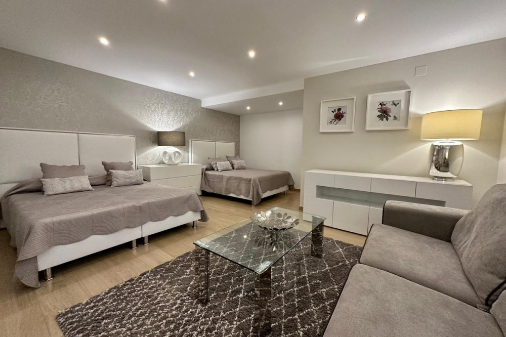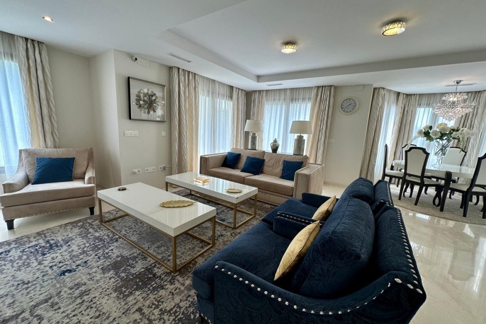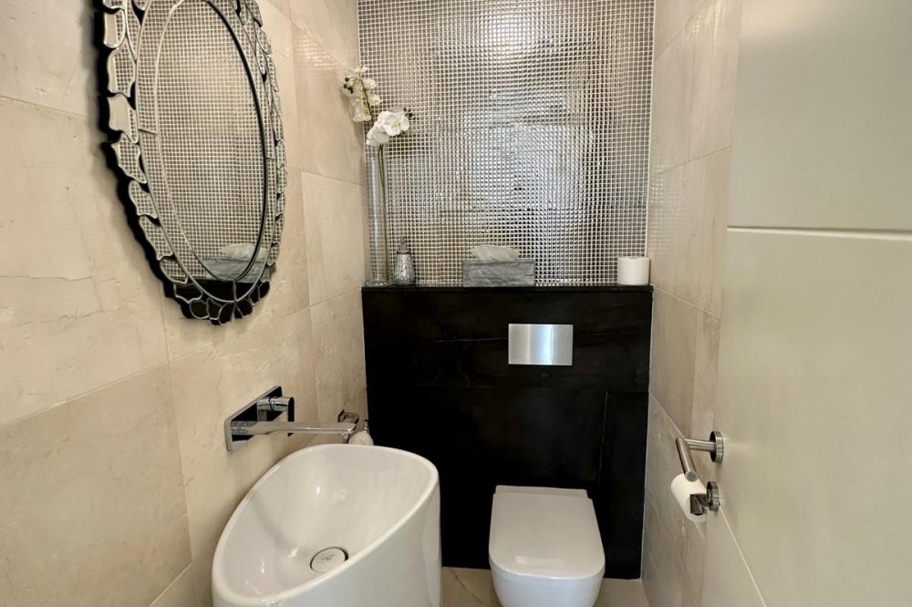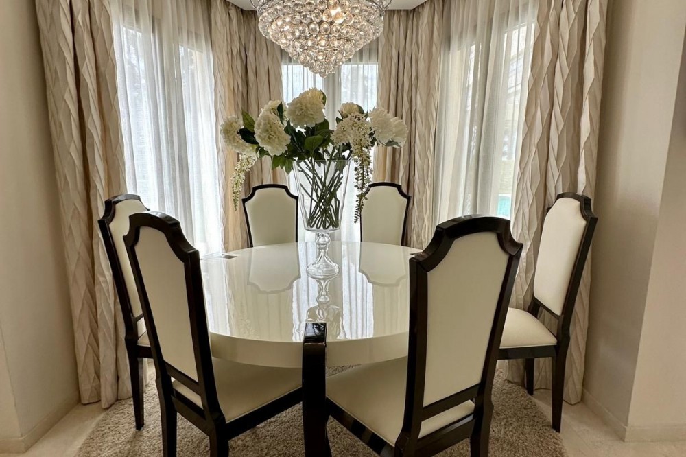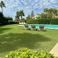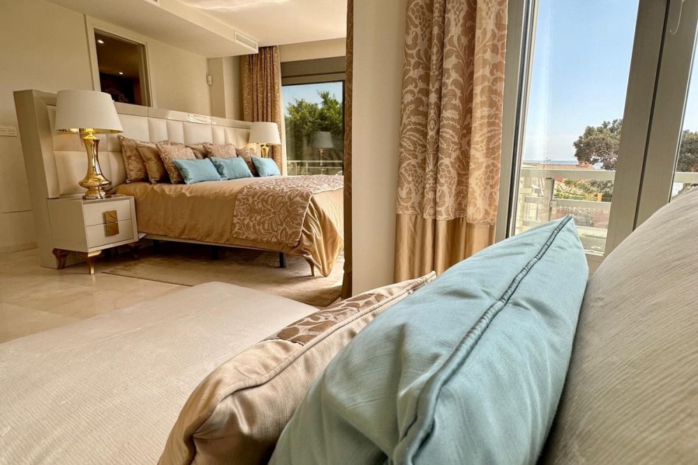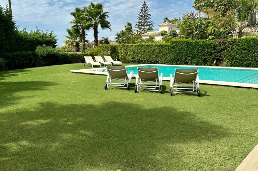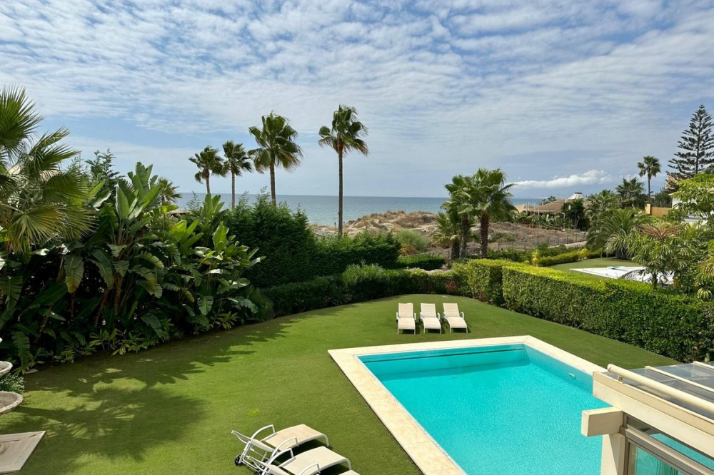 - REDUCED TO 3.950.000 € Discover the epitome of luxury living with this stunning semi-detached villa, perfectly situated by the beach in Marbella. Boasting five spacious bedrooms and 5.5 bathrooms, this home is designed for those who appreciate the finer things in life. The property is set on a double plot, featuring mature private gardens that offer a serene escape from the hustle and bustle. Elegantly decorated to a high standard, the villa is equipped with luxury fixtures and fittings throughout. Spanning four floors and accessible via a lift, every corner of this home exudes sophistication. The glass conservatory off the kitchen invites natural light to flood in, creating a warm and inviting atmosphere. The master bedroom is a true sanctuary, complete with terraces and an en-suite bathroom. For those who love to entertain, the large roof terrace provides the perfect setting for gatherings under the stars. Practical features include garage parking for three cars, driveway parking for five more, solar panels, a backup generator, and a state-of-the-art security system with seven cameras. All licences have been granted by Marbella Town Hall, ensuring peace of mind. Experience unparalleled luxury in this exquisite villa—your dream home awaits!