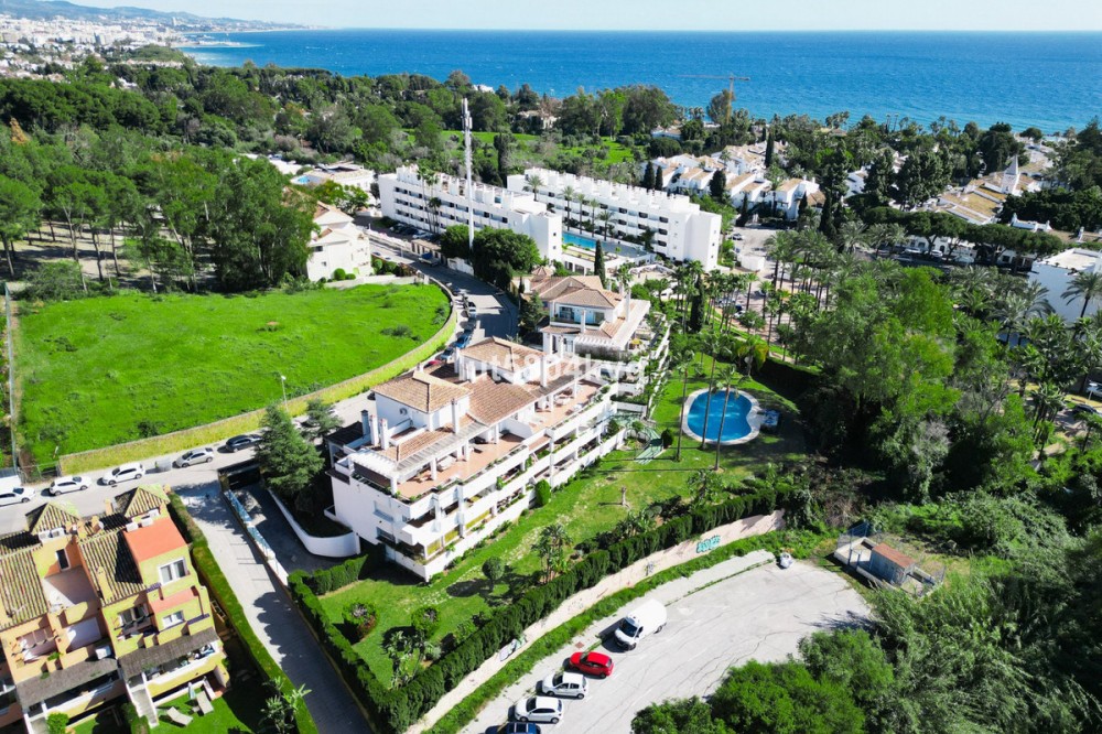 - Welcome to Balcon de Puente Romano – a gated community on Marbella’s prestigious Golden Mile. This 3-bedroom ground-floor property offers a sophisticated single-level living, complemented by a covered terrace. Ideally situated just a 5-minute stroll from the beach, Puente Romano, the Nobu Hotel, and Marbella’s most iconic restaurants and beach clubs, this home captures the essence of coastal luxury. This recently redesigned apartment features a spacious open-plan living and dining area, filled with natural light, opening onto a private terrace with serene garden and pool views.