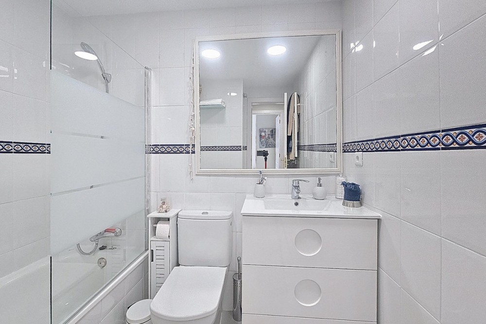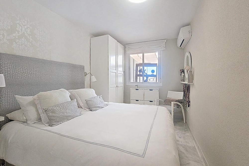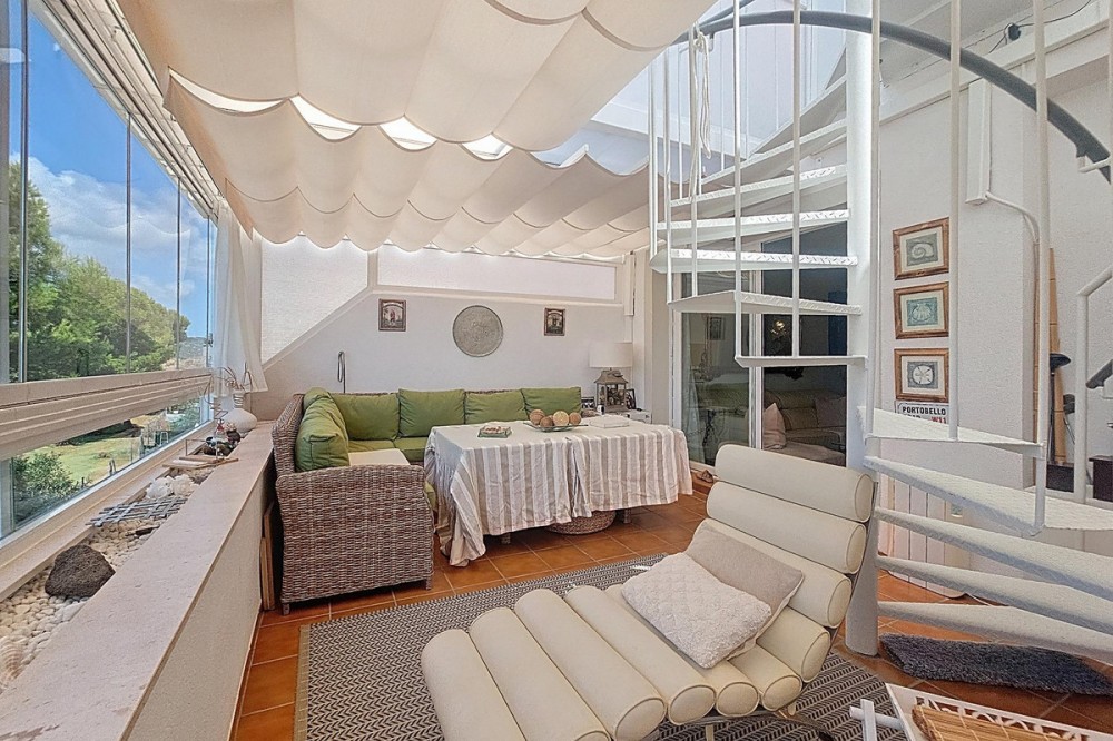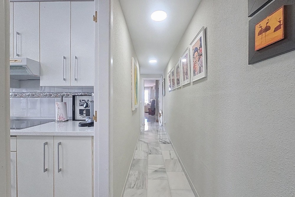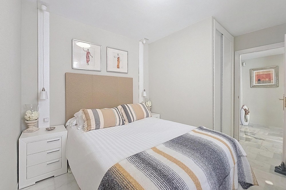 - Located in the peaceful and sought-after urbanization of Hacienda Casares, near the prestigious Doña Julia golf course, this 3-bedroom, 2-bathroom apartment stands out for its excellent condition and high-quality features. The master bedroom has its own en-suite bathroom, recently renovated with modern materials, offering a private and comfortable space. The independent kitchen is fully equipped with high-end appliances, perfect for cooking enthusiasts. The living area opens onto a pleasant terrace enclosed with a Lumon system, ideal for year-round enjoyment, and stairs lead up to a spacious private solarium of 72 m² boasting spectacular views of the Mediterranean Sea and the Doña Julia golf course. The property also includes a private parking space and a storage room, adding extra convenience to daily life. Close to the beaches, La Duquesa marina, and all amenities, this apartment is perfect as a primary residence or holiday home.