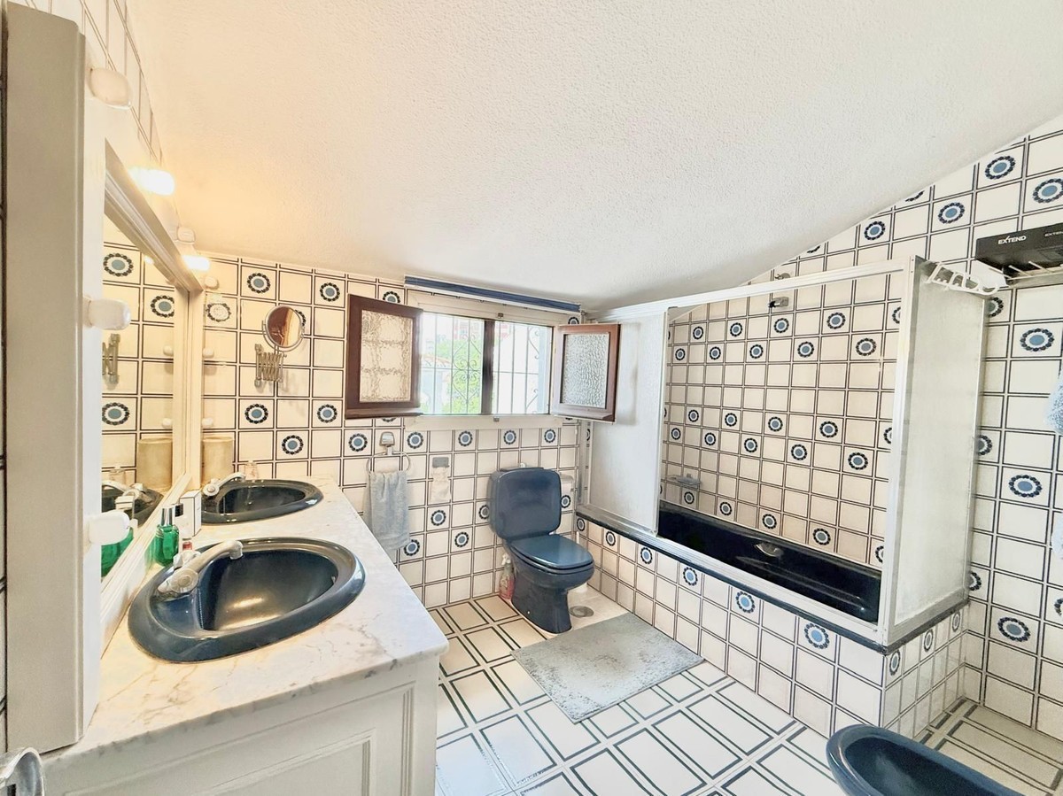 - Unique villa in the center of Fuengirola with a private pool and not part of any community. Are you looking for a detached villa with a private pool in the heart of Fuengirola, without a community or noise? This is your chance! Discover this cozy detached villa located in the picturesque and quiet Molino de la Condesa residential area, in the heart of Fuengirola. Located on a very quiet street, with no through traffic or parking allowed, it offers maximum privacy and tranquility in the heart of the city. This villa is sold furnished. The residential area enjoys an excellent residential location, close to the center and all essential services: pharmacies, a health center, daycare centers, secondary schools, shopping areas, public transportation, golf courses, sports areas, and a wide range of quality restaurants. Property Layout and Features With a constructed area of 173 m² on a 367 m² plot, this villa combines comfort, style, and functionality: • Three bedrooms, two of them on the ground floor, one with a study. • Two full bathrooms (one en suite upstairs) and a guest toilet. • A spacious living-dining room of over 60 m², featuring a high ceiling with decorative beams, a fireplace, and an elegant hardwood bookcase. • A spacious and bright rustic kitchen with Villeroy & Boch appliances and sink. • A walk-in closet and built-in wardrobes, clad in tongue-and-groove hardwood and Venetian doors. • A beautiful handcrafted wooden staircase with latticework details and high-quality stoneware flooring (Gres de Castilla, manufactured in Valladolid). Additional Amenities • A private pool of approximately 10 x 4 m, clad in blue stoneware. • Porch and garden with a built-in barbecue, ideal for enjoying the Mediterranean climate. • Drinking water tank of over 3,000 liters (3 m³), with a grid-connected motor. Microphos Salts system for descaling the pipes. • Solar panels for hot water with a 500 L storage tank. • Air conditioning/heating in the living room and master bedroom; electric heating in the downstairs bedrooms. • Mosquito nets on all windows, mounted on wood and hinged for easy cleaning. • Garage with electric sliding security door. Unbeatable Location Its location is simply exceptional: just a 7-minute walk from the beach and the center of Fuengirola, and with immediate, noise-free access to the highway. Nearby you will find: • The West Outpatient Clinic and a pharmacy open 12 hours a day. •Restaurants, supermarkets, the Town Hall, the Iglesia del Carmen Church, the Bioparc, cinemas, and more. •Just a few minutes' walk from the Miramar Shopping Center, Dunne's Stores, Parque Comercial Miramar, and stores such as MediaMarkt, Leroy Merlin, Decathlon, and Kiabi. Lifestyle and Freedom This villa does not belong to any community of owners, which means no community fees and complete independence. Its privileged location and high-quality construction ensure a comfortable, long-lasting lifestyle with great added value. Don't miss the opportunity to live in a central, quiet, and well-connected area, in a charming villa that has it all.
