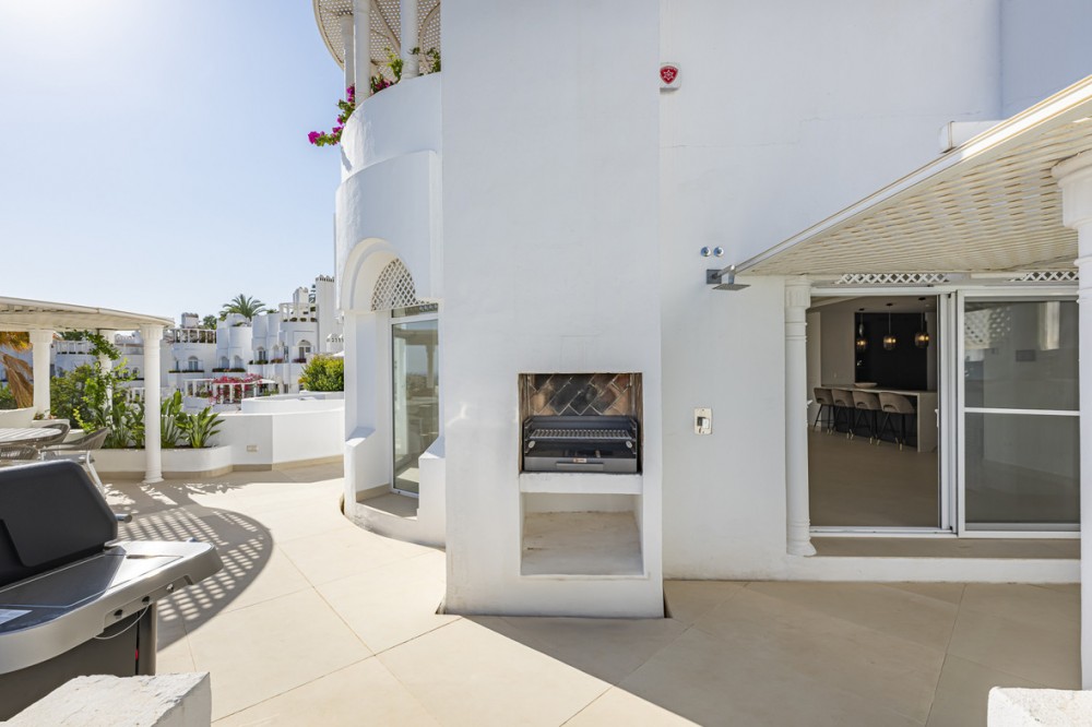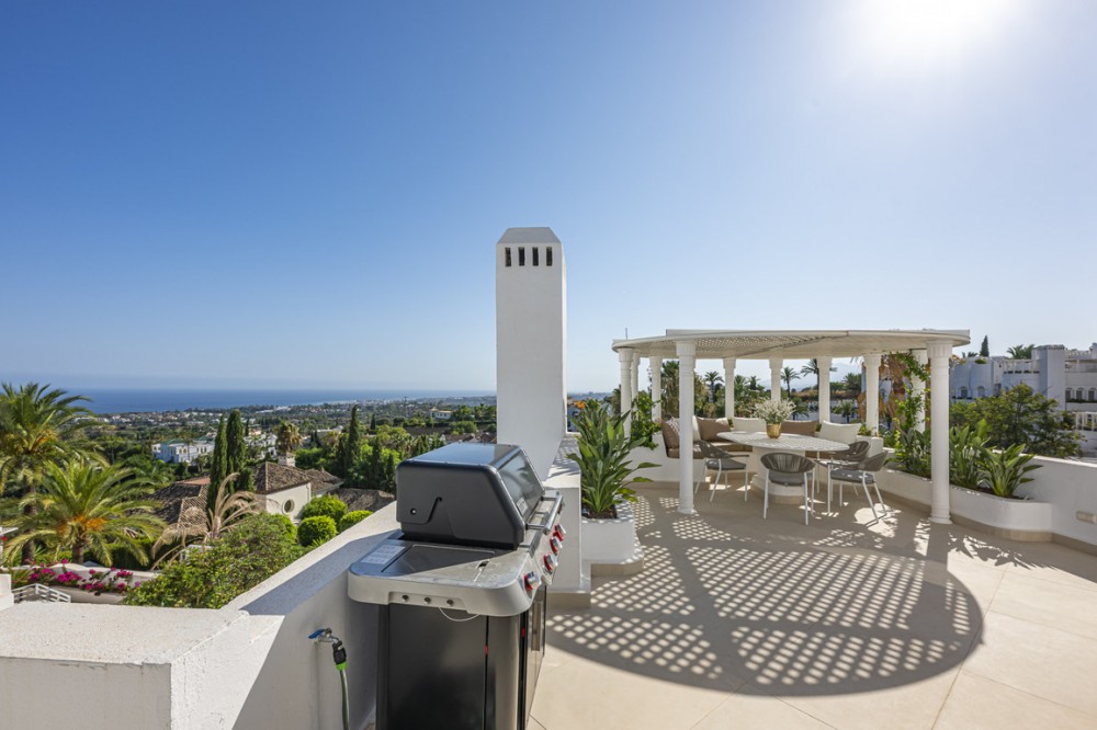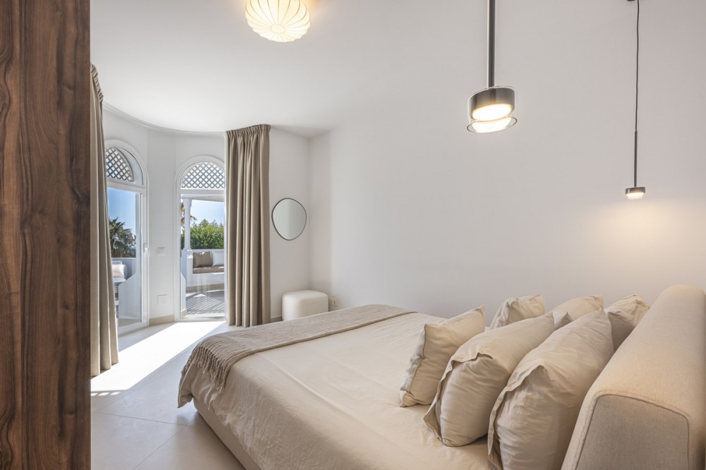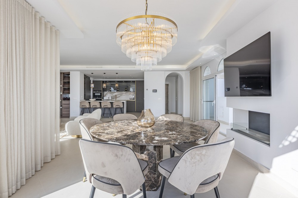 - EXCLUSIVE LISTING; Situated in the prestigious Marbella Golden Mile in Marbella, Malaga, this exceptional luxury apartment offers an unparalleled living experience in one of the region’s most sought-after locations. Exclusively available through sole agency, the property combines contemporary elegance with outstanding amenities and panoramic views of the sea, mountains, and countryside. The residence boasts a generous built area of 195m², with 190m² of refined interior space complemented by a 75m² private terrace, providing ample room for both relaxation and entertaining guests. Designed with comfort and sophistication in mind, the apartment comprises three spacious bedrooms, each with its own en-suite bathroom, and a total of four toilets. The interior features an open plan, fully fitted kitchen equipped with modern appliances, a welcoming living room with a fireplace, and a dedicated dining area. High-quality finishes such as porcelain floors, double glazing, and glass doors enhance the sense of luxury, while fitted wardrobes and a storage room offer practical convenience. Recent renovations have ensured the property is in excellent condition, with optional designer furniture available to suit personal tastes. Technology and security are at the forefront of this home, including a smart home system, video entrance, alarm, and internet connectivity via both Wi-Fi and fibre optic. The apartment is set within a gated community, providing peace of mind and exclusivity, and benefits from amenities such as a private pool with automatic irrigation, a communal garden, and a private garage. Air conditioning and an advanced heating system ensure year-round comfort. The location is particularly advantageous, being mountainside yet close to town, renowned schools, and a diverse selection of restaurants. Residents enjoy easy access to local amenities and transport links, making this apartment an ideal choice for those seeking a luxurious lifestyle in Marbella’s iconic Golden Mile. With breathtaking sea, mountain, and pool views from the covered and private terraces, this property epitomises refined coastal living.
