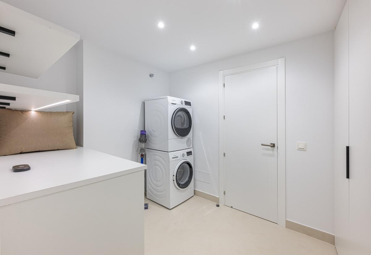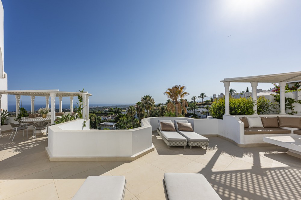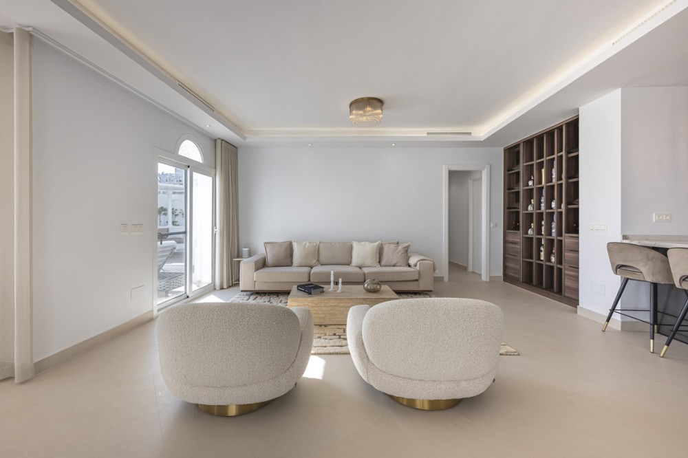 - EXCLUSIVE LISTING; Situated in the prestigious Marbella Golden Mile in Marbella, Malaga, this exceptional luxury apartment offers an unparalleled living experience in one of the region’s most sought-after locations. Exclusively available through sole agency, the property combines contemporary elegance with outstanding amenities and panoramic views of the sea, mountains, and countryside. The residence boasts a generous built area of 195m², with 190m² of refined interior space complemented by a 75m² private terrace, providing ample room for both relaxation and entertaining guests. Designed with comfort and sophistication in mind, the apartment comprises three spacious bedrooms, each with its own en-suite bathroom, and a total of four toilets. The interior features an open plan, fully fitted kitchen equipped with modern appliances, a welcoming living room with a fireplace, and a dedicated dining area. High-quality finishes such as porcelain floors, double glazing, and glass doors enhance the sense of luxury, while fitted wardrobes and a storage room offer practical convenience. Recent renovations have ensured the property is in excellent condition, with optional designer furniture available to suit personal tastes. Technology and security are at the forefront of this home, including a smart home system, video entrance, alarm, and internet connectivity via both Wi-Fi and fibre optic. The apartment is set within a gated community, providing peace of mind and exclusivity, and benefits from amenities such as a private pool with automatic irrigation, a communal garden, and a private garage. Air conditioning and an advanced heating system ensure year-round comfort. The location is particularly advantageous, being mountainside yet close to town, renowned schools, and a diverse selection of restaurants. Residents enjoy easy access to local amenities and transport links, making this apartment an ideal choice for those seeking a luxurious lifestyle in Marbella’s iconic Golden Mile. With breathtaking sea, mountain, and pool views from the covered and private terraces, this property epitomises refined coastal living.