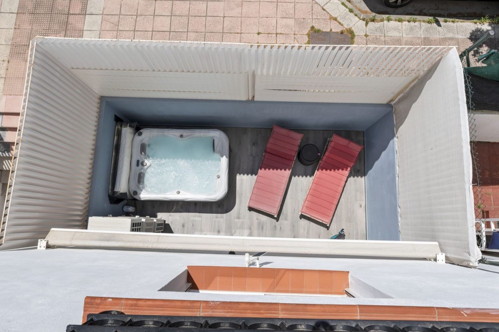 - Set in a quiet, sought-after residential area in the very heart of Estepona, this contemporary corner townhouse, completed in October 2019, offers luxury, comfort, and sustainability—perfect as a permanent residence, long-term rental investment, or holiday home, with no community fees. Built on an 84 m² plot, the property boasts a total built area of 232 m² across 2 floors, featuring 3 bright bedrooms, 2 full bathrooms, 1 guest WC, and an impressive private home cinema—ideal for family movie nights or entertaining guests. The open-plan living area leads to a stylish terrace with a bioclimatic pergola and outdoor jacuzzi, creating a private oasis for relaxation. The house comes fully furnished, and includes air conditioning, underfloor heating, double glazing, electric shutters, alarm system, and an excellent A-rated energy certificate. A 6.3 kWh solar panel system ensures extremely low annual electricity costs (approx. 300–500€). It includes a private garage with space for one car and two motorbikes, as well as an additional outdoor parking space. Being a corner unit with only one direct neighbor, the home offers excellent privacy and abundant natural light. Prime location: Just 1 km on foot from the beach (near the post office) and 300 meters from the pedestrian zone of Calle Terraza. All of Estepona’s vibrant old town, shops, restaurants, and amenities are within walking distance. Several nearby streets offer easy access by car. A truly exceptional property in one of the Costa del Sol’s most desirable urban centers.