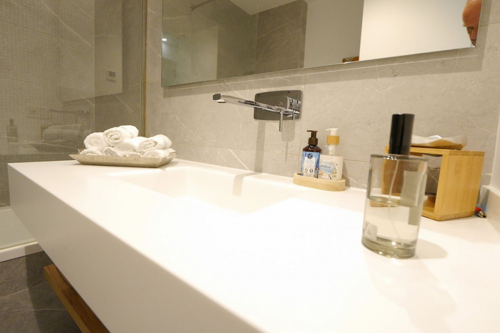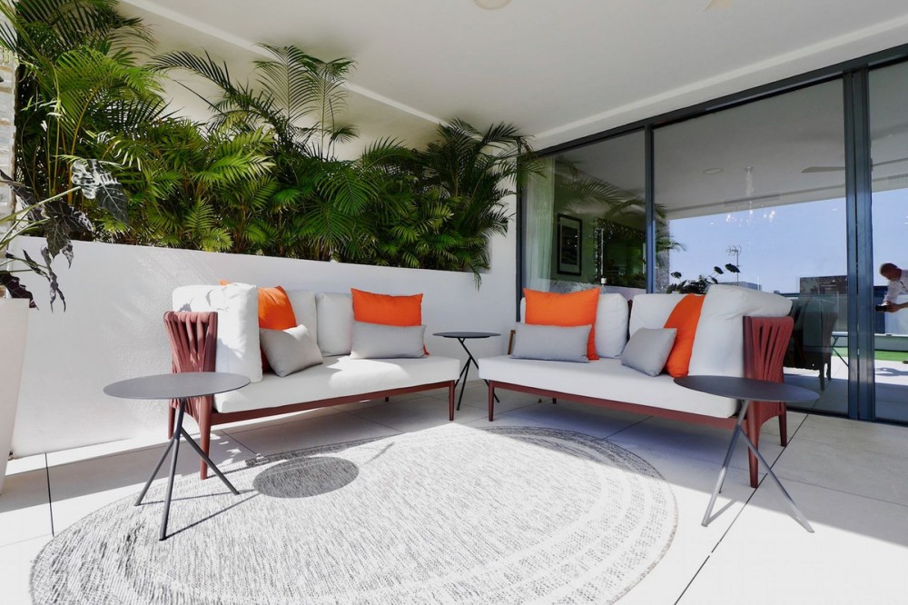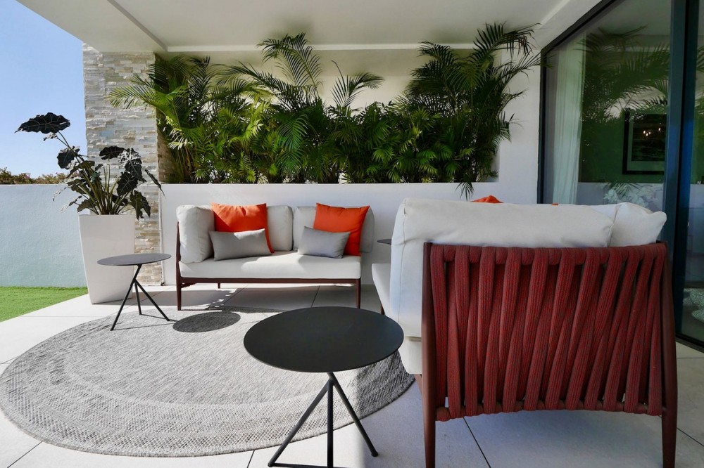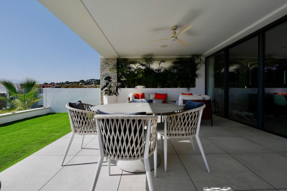 - This luxury, modern apartment is located in one of Cabopino's top gated complexes with a community indoor swimming pool and amazing outdoor pool area reminiscent of a five star hotel and a fully equipped gym. The apartment itself has one of the best orientations for enjoy the Spanish climate, with a very large partly covered terrace offering some shade in the summer heat while also providing a protected area when the sun is lower in the winter. The apartment enjoys a much sought after view of the mediterranean and is only 15 minutes walk to some of Marbella's best beaches and Cabopino Port with its many good restaurants. This property also has lots of extras like underfloor heating for each room individually and also airzone air conditioning for each room individually that enables one to enjoy these extras while maintaining lower energy bills. The owners have improved the property with extra spot lights in the kitchen, halls, bathrooms and the master bedroom, and have included indirect lighting in the living room, a fan on the terrace and an automatic irrigation system for the plants on the terrace, a water filter in the kitchen plus other extras.