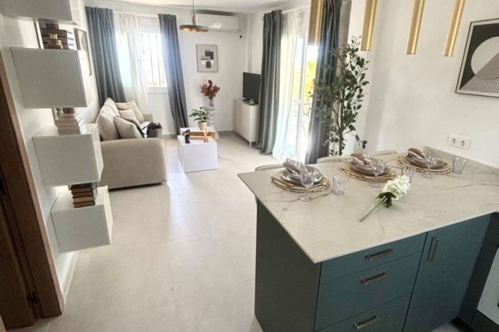 - Beautifully reformed spacious one bedroom apartment, located in prime position within a 2 minute walk to the beach, public transport and local shops, bars and restaurants!!!! Located on the first (top) floor, the apartment offers modern open plan living with luxury furnishings all included.....lounge-dining area, open plan kitchen, double bedroom with fitted wardrobes and bathroom. From the lounge there is a balcony from which sea views can be enjoyed, with south west orientation offering late afternoon and evening sun. The community also has a swimming pool and sunbathing area. The area of Riviera del Sol has many amenitiies including the award winning Miraflores Golf Course, Miraflores Tennis Clulb with pool and bar-restaurant and the exclusive beachfront Max Beach Club.