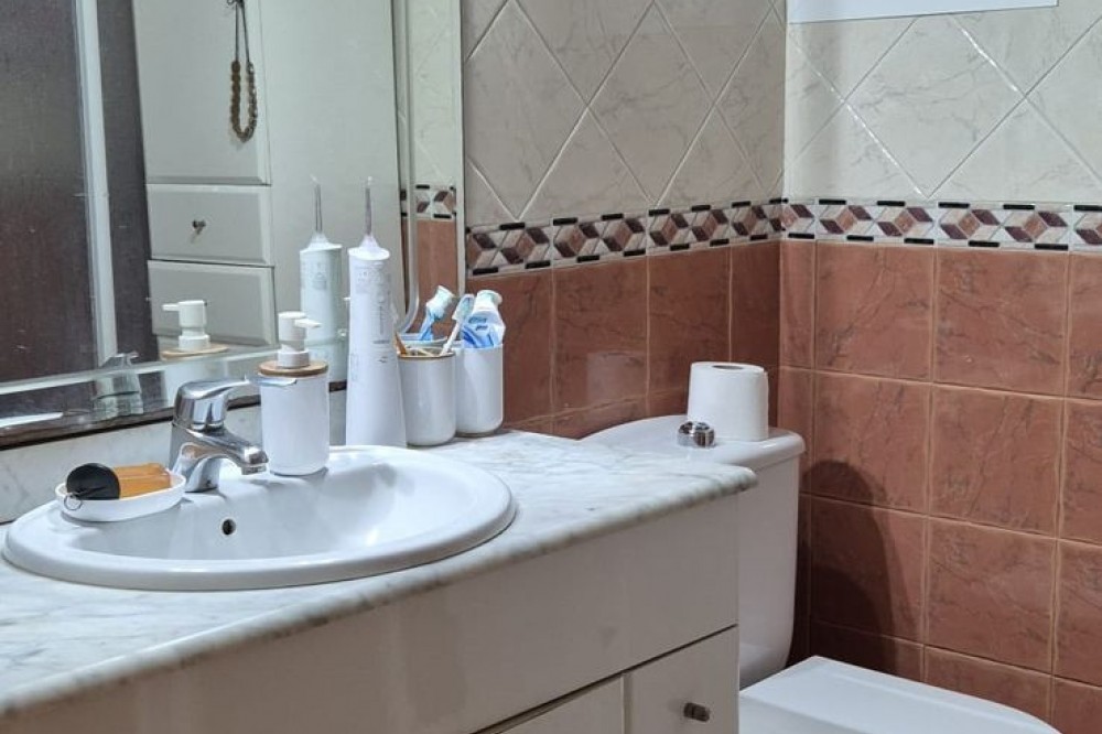 - Central apartment in Estepona The apartment has three bedrooms, one bathroom, and a terrace. The appliances are new: refrigerator, washing machine, ceramic hob, and electric water heater. There is a covered, glass-enclosed terrace with built-in wooden wardrobes. The community fee is paid quarterly: €160 per quarter. It is located next to all amenities: supermarkets, shops, medical center, pharmacies, etc. Top Floor Apartment, Estepona, Costa del Sol. 3 Bedrooms, 1 Bathroom, Built 76 m², Terrace 10 m². Setting : Commercial Area, Village, Close To Port, Close To Schools. Orientation : South, South West. Condition : Excellent. Features : Covered Terrace, Lift, Fitted Wardrobes, Near Transport, Utility Room, Marble Flooring. Furniture : Fully Furnished. Kitchen : Fully Fitted. Utilities : Electricity, Drinkable Water. Category : Cheap, Investment.