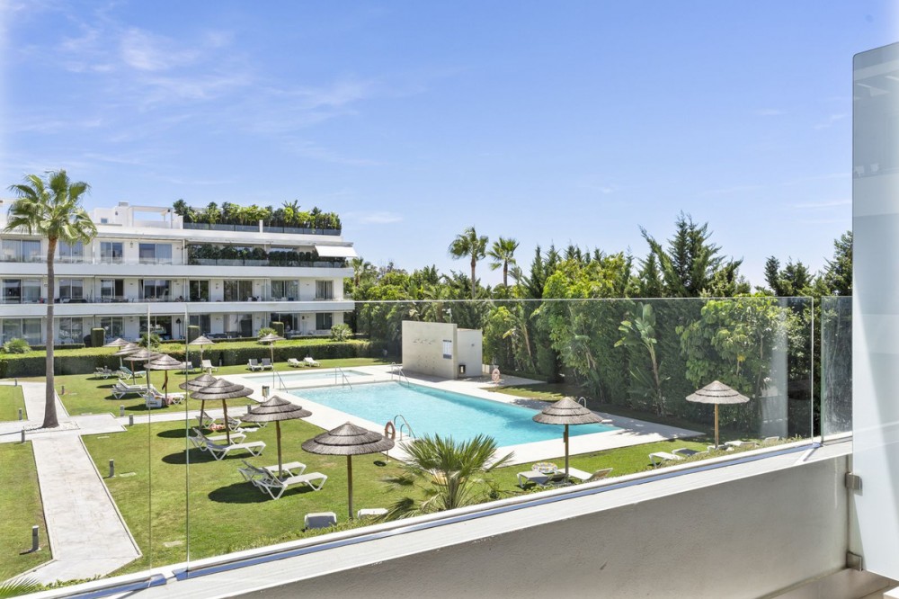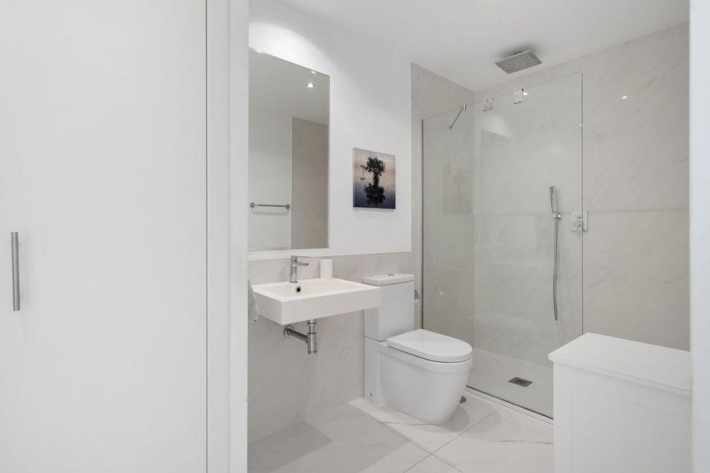 - Modern apartment located in an excellent spot on the New Golden Mile, just few steps from all the services. With modern amenities, stylish finishes, and plenty of space, this apartment is perfect for families. Key Features: - 3 Spacious Bedrooms: Perfect for families or those needing extra space. The master bedroom features an ensuite bathroom, while the other two bedrooms are generously sized with plenty of closet space. - Bright & Airy Living Room: The open-plan living and dining area boasts large windows, allowing natural light to flood the space. The living room leads out to a private terrace, ideal for relaxing or dining al fresco. - Fully Equipped Kitchen: Modern kitchen with high-end appliances, plenty of storage, and a separate utility room. Ready for all your culinary needs. - 2 Modern Bathrooms: Both bathrooms are sleek and contemporary, with high-quality fixtures and fittings. The master bedroom features an ensuite with a shower, while the second bathroom has a bathtub and shower combination. - Private Terrace: Enjoy outdoor living with a spacious private terrace, ideal for dining, lounging, or enjoying the pleasant weather. - Air Conditioning & Heating: Stay comfortable year-round with climate control throughout the apartment. - Secure Parking: The apartment comes with an allocated parking space within the gated complex. - Communal Pool & Gardens: The complex offers well-maintained communal gardens and a large swimming pool for residents to enjoy. - Storage Room: Additional space for storing bikes, seasonal items, or personal belongings. Location: Located in the desirable area of Belaire, just a short drive from the charming village of Cancelada and the popular town of Estepona. Walking distance to amenities: Supermarkets, cafes, restaurants, and local shops are all just a short stroll away. Minutes from the beach: Enjoy easy access to beautiful beaches and the stunning coastline of the Costa del Sol. Transport links: Excellent access to the AP-7 motorway for easy travel to Marbella, Puerto Banús, and beyond. The area is well-served by public transport.