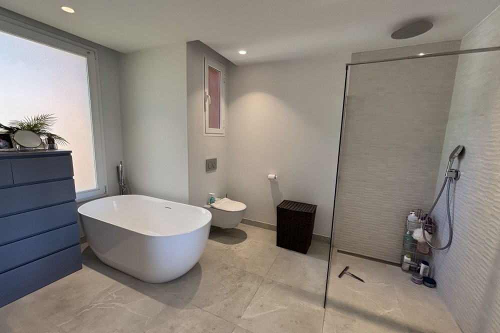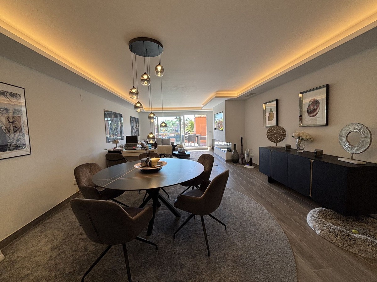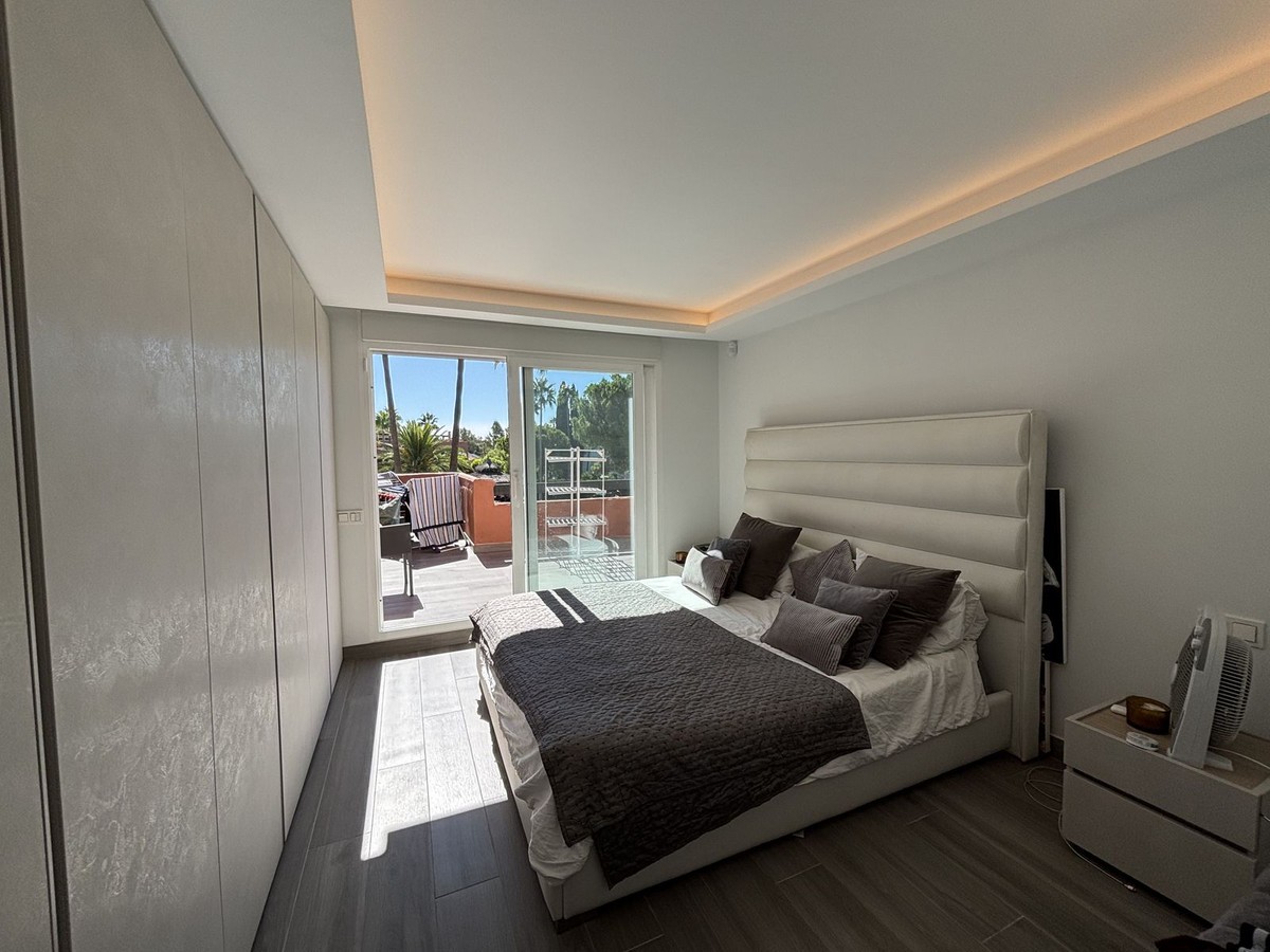 - Exquisite Renovated 3-Bedroom Apartment in Alhambra del Golf, Guadalmina Baja Nestled within the prestigious beachside complex of Alhambra del Golf in Guadalmina Baja, this beautifully renovated apartment offers the perfect blend of modern luxury and Mediterranean charm. Finished to the highest standards, every detail has been carefully designed to provide style, comfort, and elegance. The spacious property features three generously sized bedrooms, each with its own luxurious ensuite bathroom, ensuring complete privacy and comfort for family and guests. The open-plan living and dining areas flow seamlessly onto a large private terrace, where you can relax and enjoy breathtaking views of the lush gardens, the sparkling community pool, and the iconic La Concha mountain. The kitchen has been fully upgraded with top-quality finishes and appliances, making it both highly functional and ideal for entertaining. Natural light floods every room, creating a bright and inviting atmosphere throughout. Situated in one of Marbella’s most sought-after beachside communities, residents benefit from beautifully landscaped gardens, a large swimming pool, and 24-hour security. Just a short stroll from the beach and close to golf courses, restaurants, and all amenities, this apartment offers the ultimate Costa del Sol lifestyle. Whether as a permanent residence, holiday home, or investment, this is a rare opportunity to own a truly exceptional property in Guadalmina Baja.