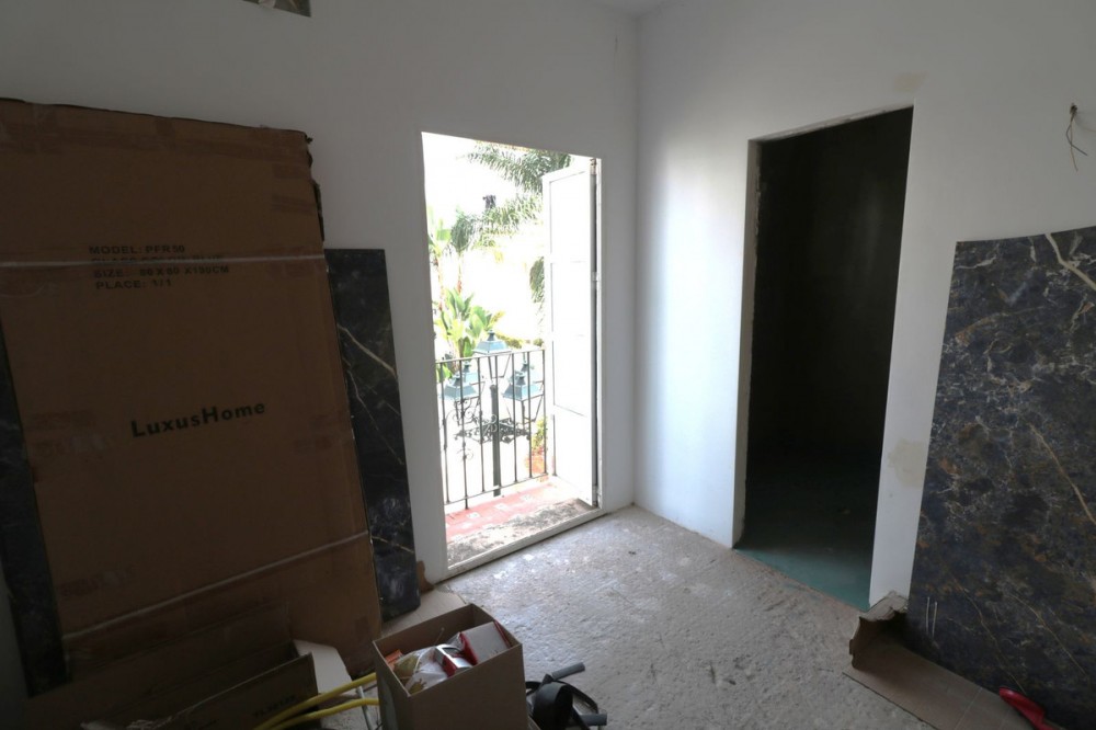 - Do you have your very own ideas about your dream home? Then this faboulous property is a perfect opportunity for you! Only 1000 metres from the beach is this fantastic rough diamond of a holiday apartment or permanent home with a sunny living room with the access to the big balcony, an open american kittchen (unfinshed) and a good sized bedroom with a small balcony and the bathroom (unfinished) on suite for making ideas into reality. Lots of natural light is coming in and gives the apartment a cozy feeling even without furniture. Located in a maintained urbanisation with small white blocks it looks like a typical, small spanish pueblo. The urbanisation has a communal swimming pool with sunbeds and umbrellas and beautiful gardens. A nice area only a short walk from shops, restaurants, bus stations and the magnificent beaches. Just a short drive to San Pedro de Alcantara and Marbella where you can find all kind of amenities. Close to prestigiious golf courses and international schools - Malaga airport only 40 minutes by car. A wonderful place to be - MUST BE SEEN!