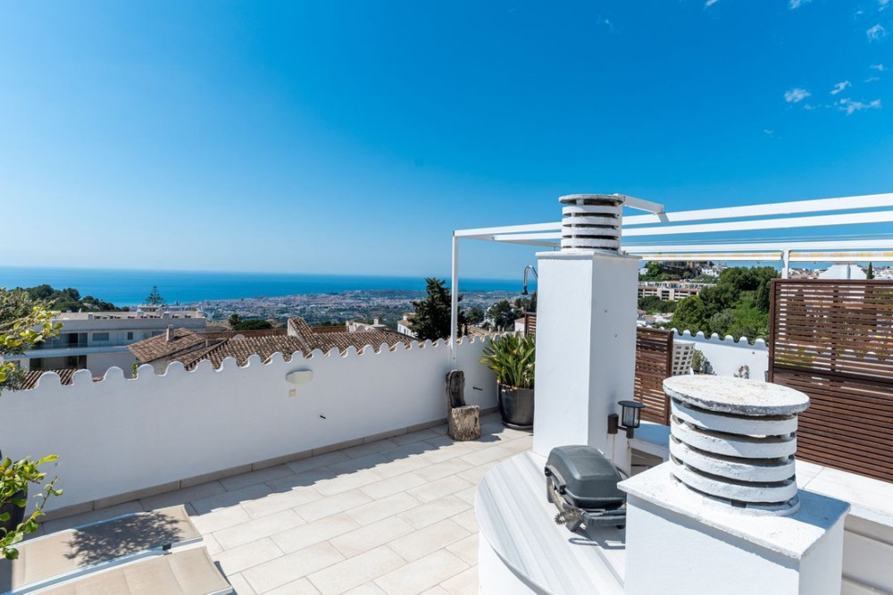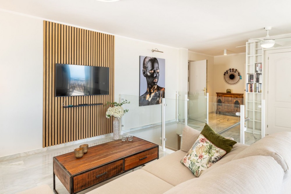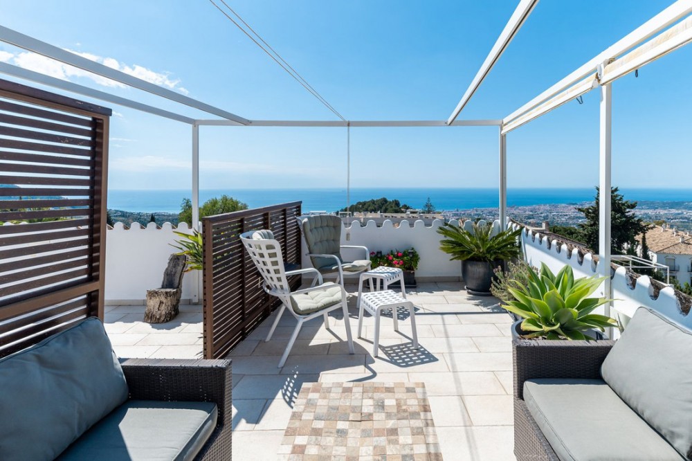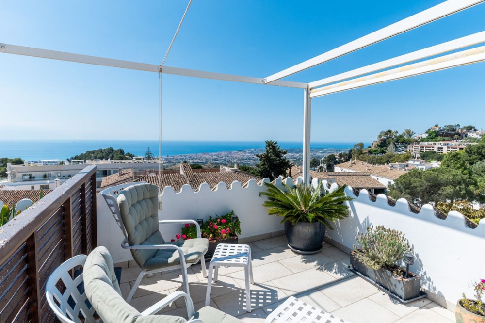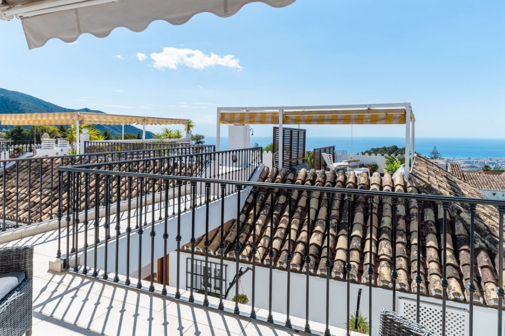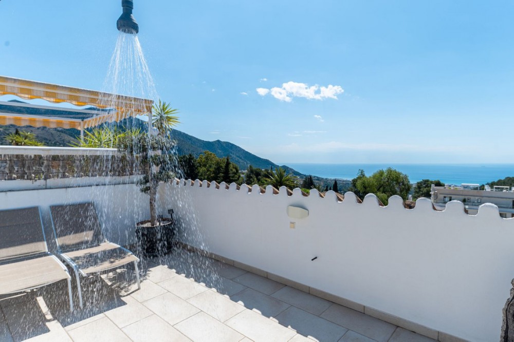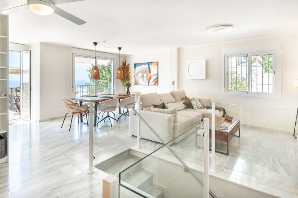- Dreaming of life in idyllic Mijas Pueblo? Welcome to your new home – an exclusive and modernly renovated 3-bedroom duplex apartment located in the heart of this charming whitewashed village. This property is designed for the true lifestyle enthusiast who wants to be within walking distance of everything – tapas bars, quaint shops, cultural attractions, and the unique Andalusian atmosphere that Mijas Pueblo is so famous for. The apartment features a welcoming entrance hall, a spacious and bright living room with a guest toilet, storage room, and a stylish kitchen. From the living room, you have direct access to a fantastically spacious terrace, divided into several inviting zones: a lounge area, outdoor kitchen, open-air shower – and space to install a jacuzzi. The entire terrace offers **spectacular panoramic sea views**, perfectly completing the experience of authentic southern Spanish living. An elegant marble staircase leads down from the living room to the apartment’s three bedrooms and two bathrooms, all designed with modern comfort and high-quality finishes. This home offers the best of both worlds – authentic Andalusian charm and contemporary luxury, ideal for relaxation, year-round living, or holiday enjoyment. The apartment has not been used for rental before, but short-term letting is permitted in the building. The location is excellent – just steps away from Mijas Pueblo’s most iconic spots and with easy access to both the beach and the airport. It is possible to rent a private parking space in the gate yard, next door. ✨ Don’t miss this unique opportunity to own a truly special property on the Costa del Sol – where quality of life, stunning views, and top location come together in perfect harmony.