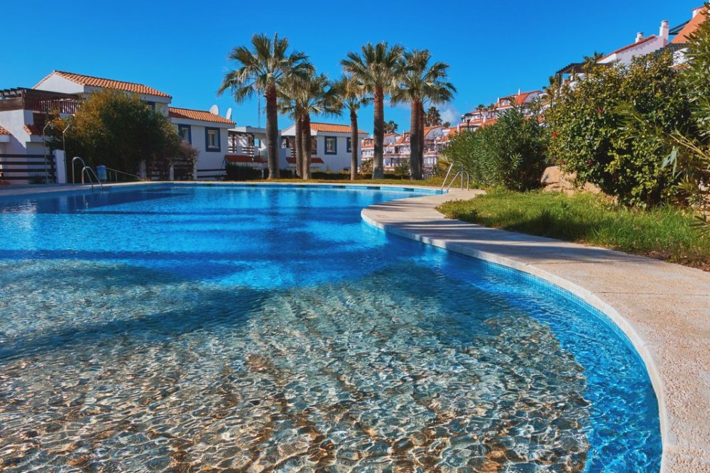 - Stylish south facing two bedroom, two bathroom apartment located within this much sought after urbanisation of Vistalmar, between Sotogrande and La Duquesa marina. Set within a secure gated and quiet community boasting four swimming pools with lush, tropical landscaped gardens. This comfortable apartment with private terrace at its entrance, offers two bedrooms, one of which has an en-suite bathroom and private terrace and a further bedroom with family bathroom. Fully fitted open plan kitchen, bright and airy living and dining area leading onto an additional private terrace/dining area boasting stunning direct views towards the Mediterranean sea. Furnished to a high standard and with hot and cold air conditioning throughout. Private, covered parking space is also included. Within a tranquil and peaceful area yet just a short distance to La Duquesa marina with its vast array of amenities, restaurants and bars. Surrounded also by many top golf courses and within just a half hour drive away from Gibraltar international airport. Stylish and comfortable apartment, ideal for all round living or enjoying holidays.