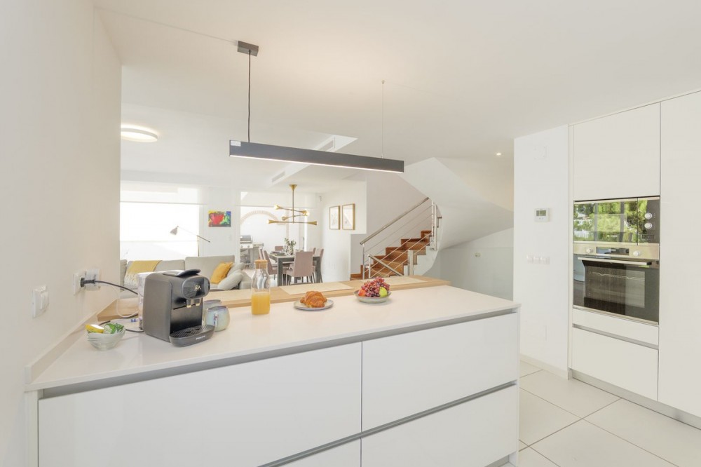 - Exclusive House with Sea Views in Torremuelle, Benalmádena Discover this spectacular 477 m² (terraces included) house, located in one of the most privileged and peaceful areas of Benalmádena, surrounded by nature and offering stunning sea views from its three terraces. The home features: • 4 spacious bedrooms with built-in wardrobes • 5 bathrooms designed with quality finishes • 2 elegant living rooms, perfect for comfort and entertaining • A modern kitchen fully equipped with Bosch appliances. • Home automation system for lighting, cooling and air-conditioning, and solar panels for great energy savings • Air conditioning and heating, double-glazed windows • Private parking • 2 storage rooms, a barbecue, and outdoor areas with beautiful outside ambient lighting, ideal for enjoying the Mediterranean climate • Sold fully furnished with quality furniture and licensed and fully equipped for short term rental by Andalusian government. The property is part of a community that offers a large infinite view swimming pool, gym, community and recreation area, and an exclusive environment with total privacy and security. Located in Torremuelle, an area highly appreciated by its residents, close to: -Hospital both private and public -Torremuelle train station -Beach -Sports club with tennis and paddle tennis -Cafes, restaurants, supermarkets, bus stop and taxi -British College -Just 20 minutes from Malaga Airport Ideal for enjoying the quality of life offered by the Costa del Sol in one of its most sought-after areas. Title Deed: Total Built Area 296.80 m2; Terrace Area 180.65 m2 Year of Construction 2019- Community fees: 658€/quarter IBIU: 1.649€/year Rubbish Collection Tax: 190€/year EEC: Energy Consumption C: 47.24 kWh/m2 year & CO2 Emissions C: 8.42 kg CO2/m2 year The information provided is for informational purposes only and has no contractual value. The offer is subject to errors, price changes, omissions, availability, and/or withdrawal from the market without prior notice. The indicated price does not include expenses inherent to the purchase of real estate according to current laws (ITP or VAT, notary fees, registry fees, administration fees).