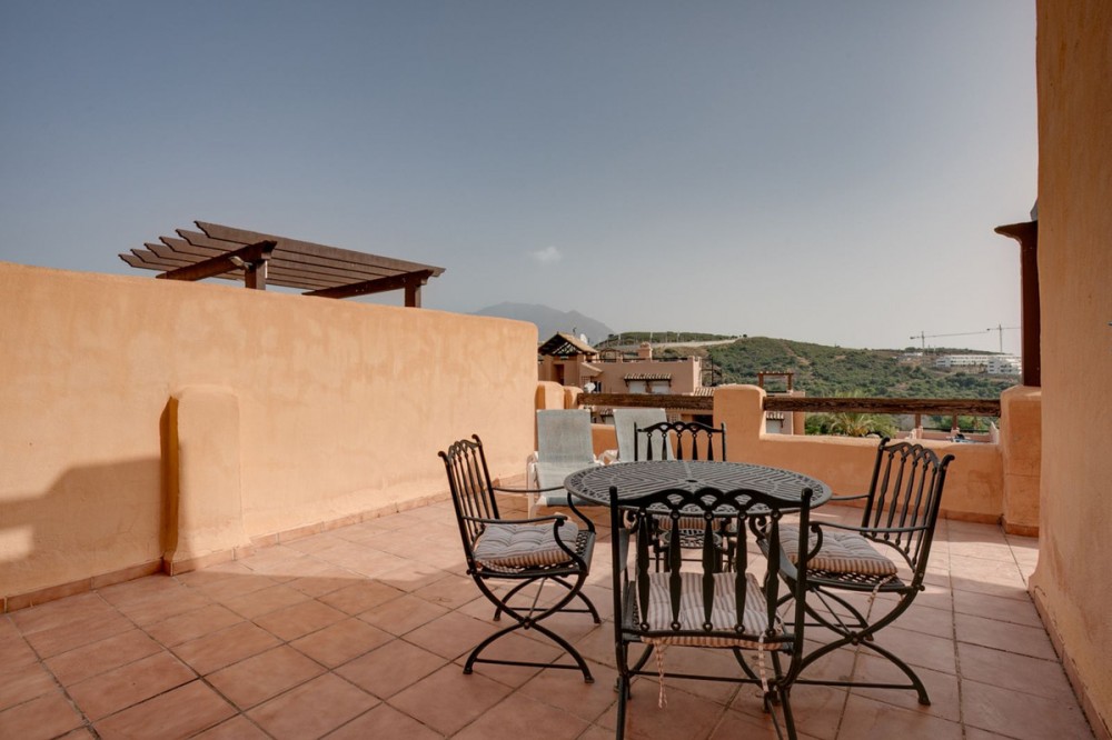 - Stunning 3-Bedroom Penthouse in Casares Costa This spacious and beautifully presented penthouse is ideally located in Casares Costa, just a short drive from the beach and all local amenities. Designed with comfort and lifestyle in mind, the property offers generous interiors, impressive outdoor spaces, and breathtaking views. Inside, you’ll find a bright and airy living room with direct access to a large terrace that enjoys the morning sun. The kitchen can easily be opened up to the lounge, creating an open-plan layout if desired. All three bedrooms are generous doubles with fitted wardrobes, while the master suite boasts its own ensuite bathroom. One of the true highlights is the incredible roof terrace – a private haven with sunshine throughout the day and spectacular mountain views, perfect for entertaining or simply relaxing. The property also includes a secure underground parking space and a storage room, adding both convenience and value. Key Features: 3 spacious bedrooms & 2 modern bathrooms Large terraces (90 m²) with sun all day Built size: 124 m² Fully furnished & ready to move in Communal pool & children’s pool Air conditioning (hot & cold) Lift access, double glazing & fitted wardrobes Gated complex with 24-hour security This property represents an excellent investment opportunity, ideal as a permanent home, holiday getaway, or rental option on the Costa del Sol.