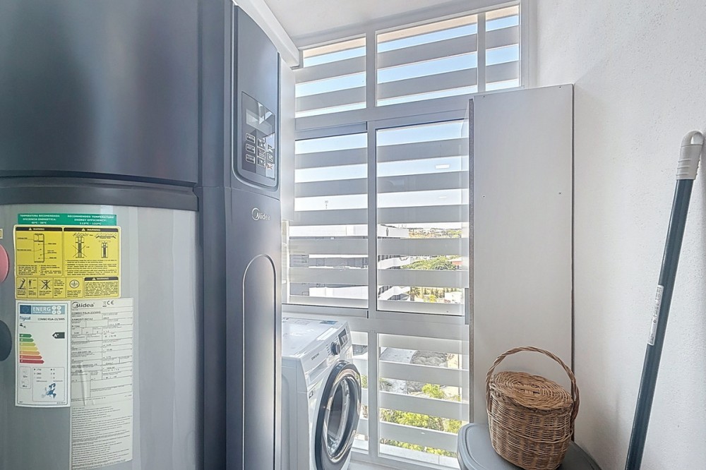 - Located in the very centre of Estepona, this modern duplex penthouse offers the perfect combination of urban convenience and Mediterranean charm. Its privileged setting places you within walking distance of shops, schools, playgrounds, public transport, and just minutes from the beach, the port, and several golf courses. The property boasts 187 m² built (101 m² interior), smartly distributed over two levels. It features 3 bedrooms and 2 bathrooms (one en suite), making it ideal for families or for those seeking extra space. The home is presented in excellent condition, fully furnished and equipped with air conditioning and an aerothermal system for maximum energy efficiency. The open-plan kitchen connects seamlessly with the living and dining area, which flows out to a private terrace with wonderful views of the mountains. The upper level is home to a fantastic private 30m² solarium, perfect for sunbathing, entertaining, or simply enjoying the Costa del Sol lifestyle. Additional features include a laundry room, storage room, and private parking space included in the price. On the rooftop of the building, residents also benefit from a communal swimming pool, an ideal spot to relax on warm summer days. Built in 2021 and situated on the 7th floor with lift, this penthouse is ready to move into and offers the rare chance to enjoy a modern home in one of Estepona’s most desirable areas. Key Features 187 m² built | 101 m² usable 3 bedrooms | 2 bathrooms (1 en suite) Private terrace + solarium Private parking & storage room Built in 2021 | Excellent condition Communal rooftop pool 7th floor with lift A unique opportunity to experience Estepona at its best — combining location, comfort, and lifestyle in one exceptional property.