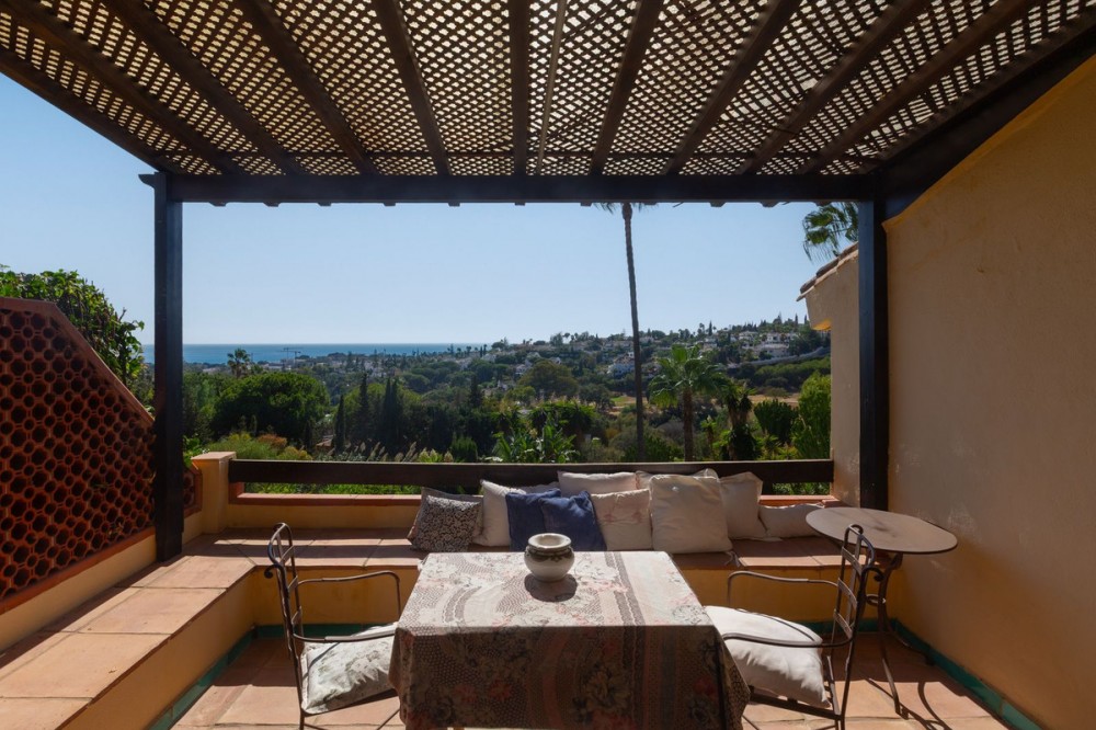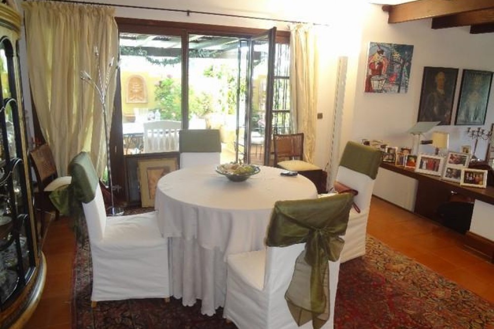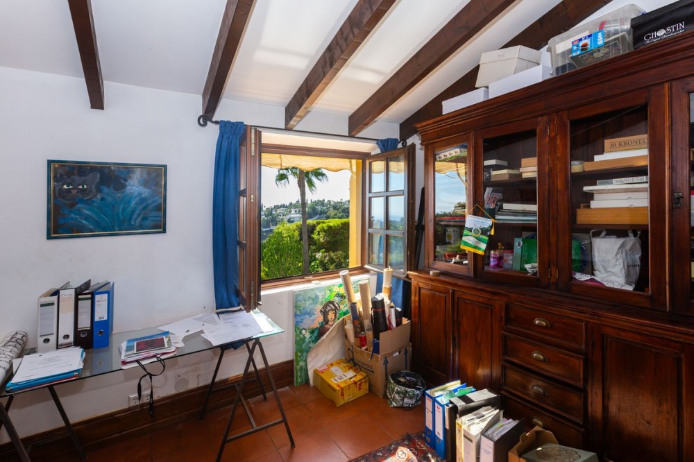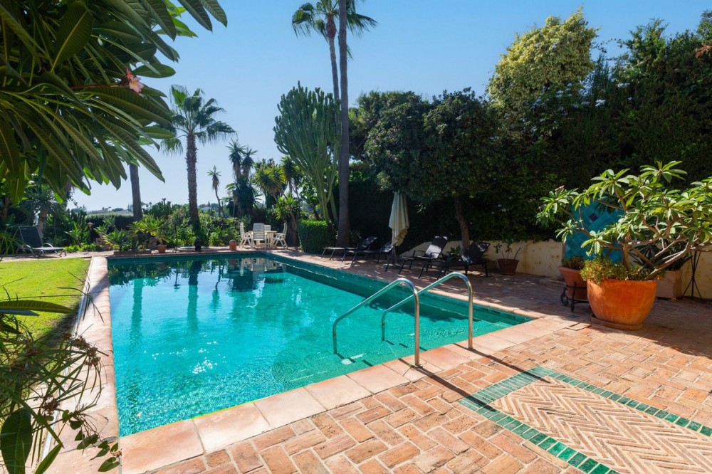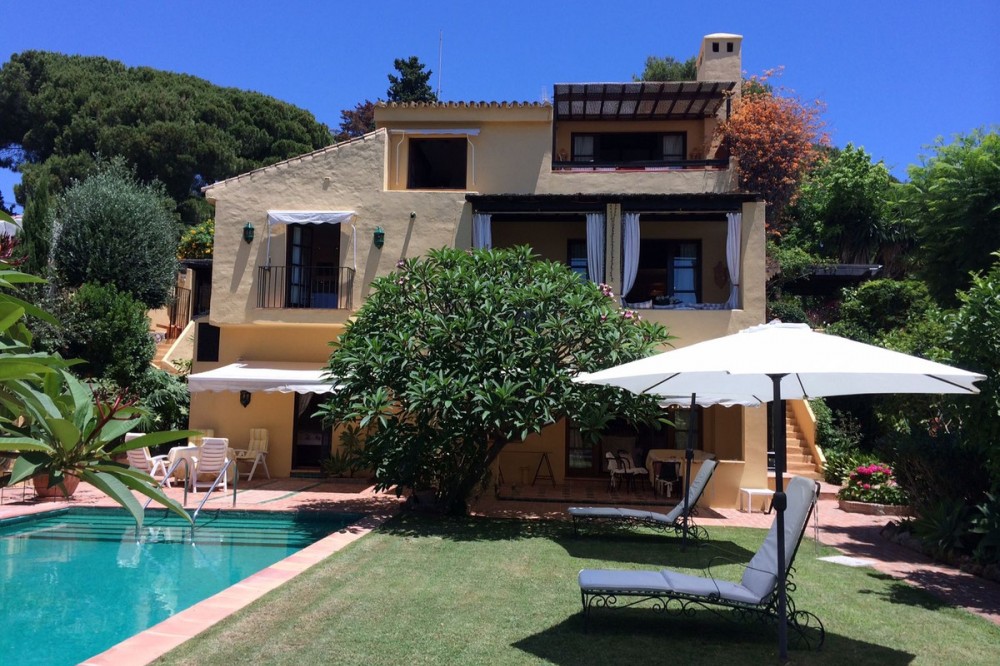 - This elegant and exclusive rustic-style villa offers beautiful sea views and a privileged location in the center of Elviria, one of Marbella’s most sought-after residential areas. The property was fully renovated in 2002 using top-quality materials. The villa features a total built area of 382 m², distributed across a spacious main residence and a separate guest area, ideal for visitors. The outdoor areas include a beautifully landscaped mature garden, a large swimming pool, and multiple spaces for outdoor living and entertaining.