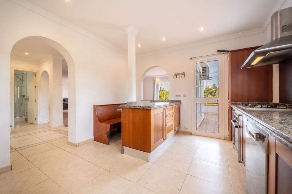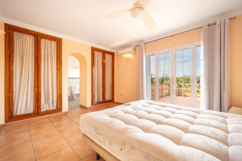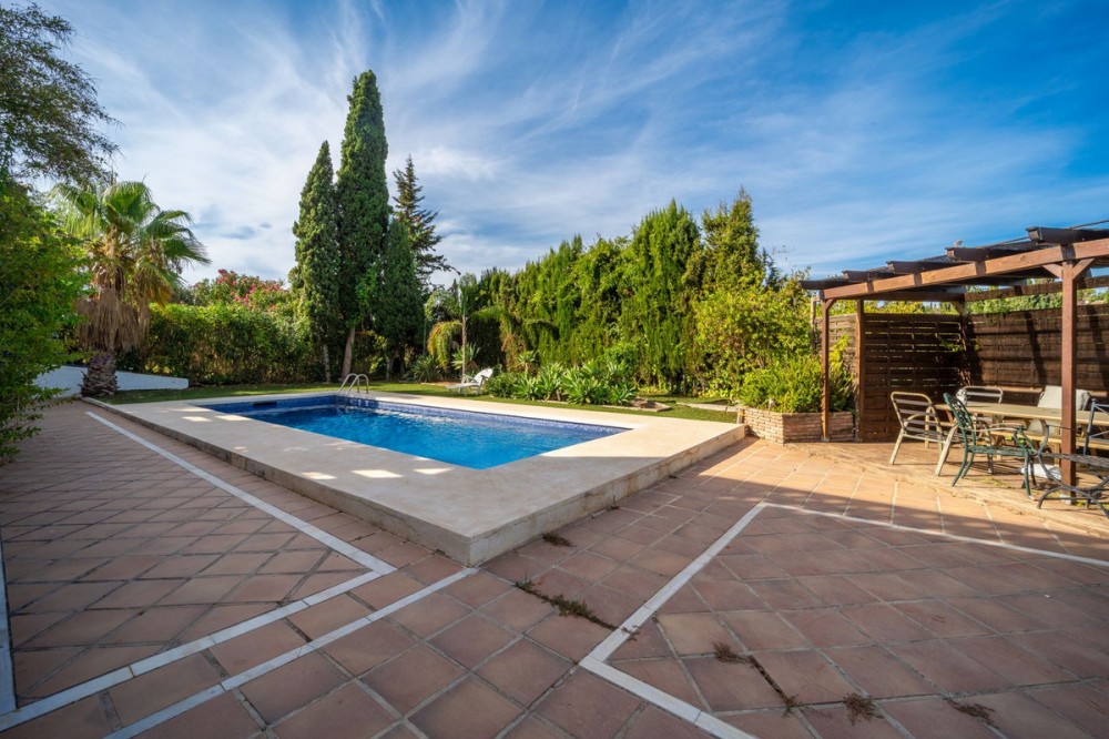 - Fantastic family villa in a peaceful area of Elviria within walking distance to the Beach. The property is very private and not overlooked by neighbours with lovely green views. On the entrance level you will find a spacious open plan living and dining room with a fire place, a good size kitchen, one office, 1 bed room & a guest WC. From the living room and the kitchen you can enter to the terrace which overlooks the pool & the garden. On the first floor you will find 3 good size bed rooms, each with access to a terrace 2 of them share a family bathroom. The master bedroom has an en-suite bathroom and a fabulous terrace with great views. The garden has a big pool, a chill out area and several fruit trees. There is also a good size storage room. This Propery is sold unfurnished. The property is in need of renovation.