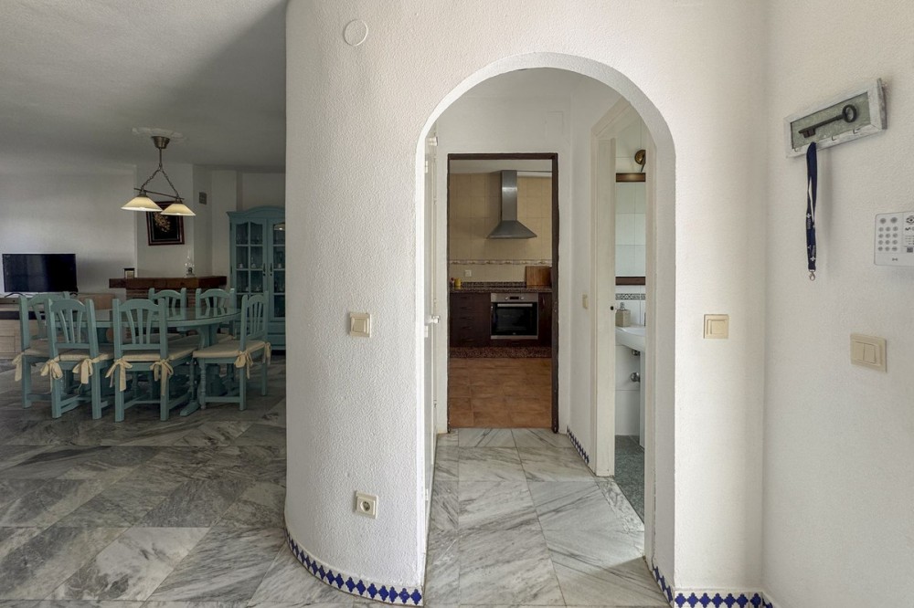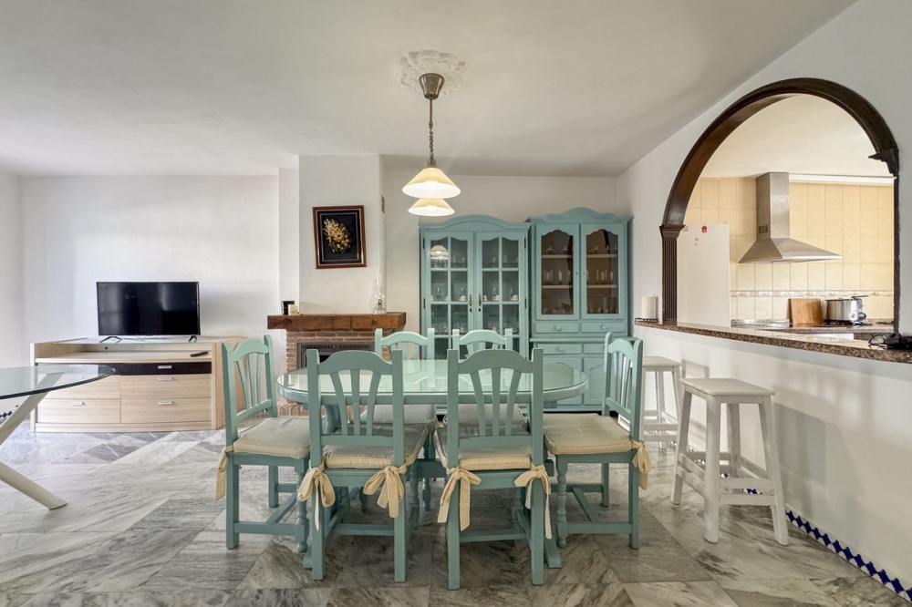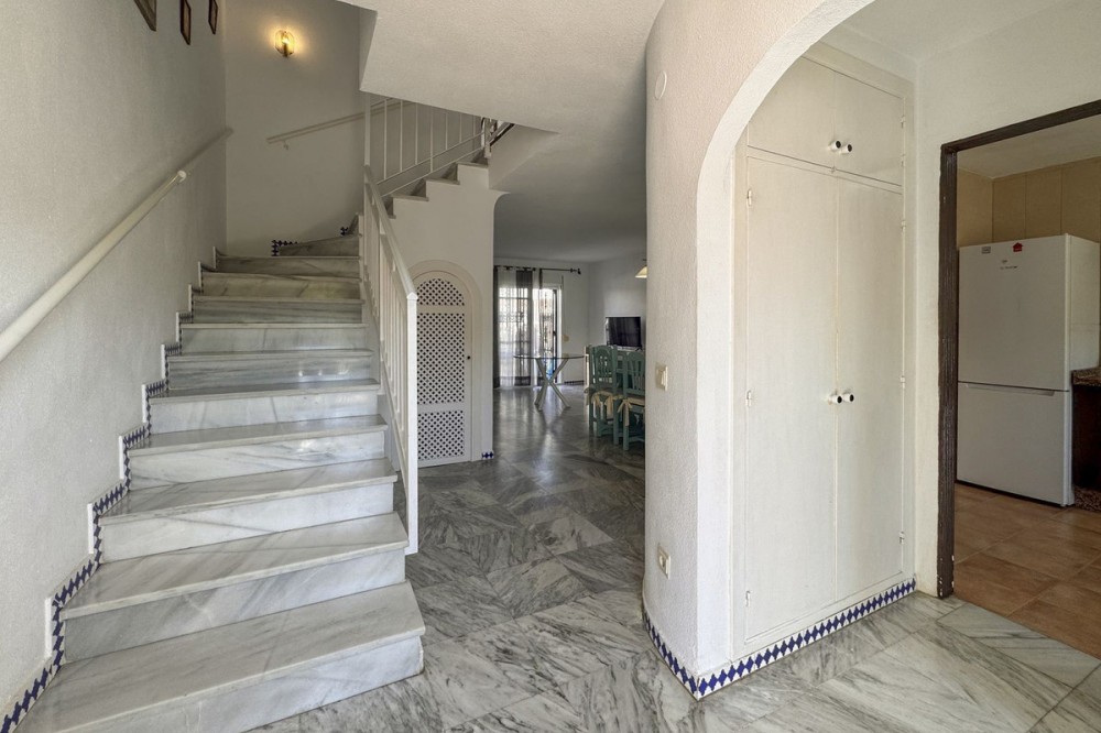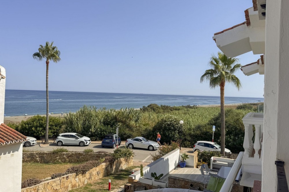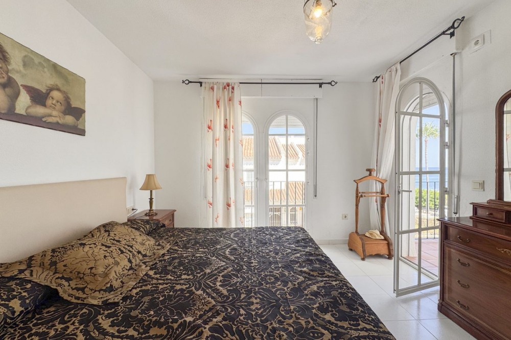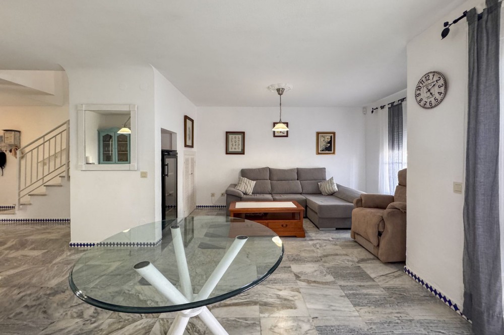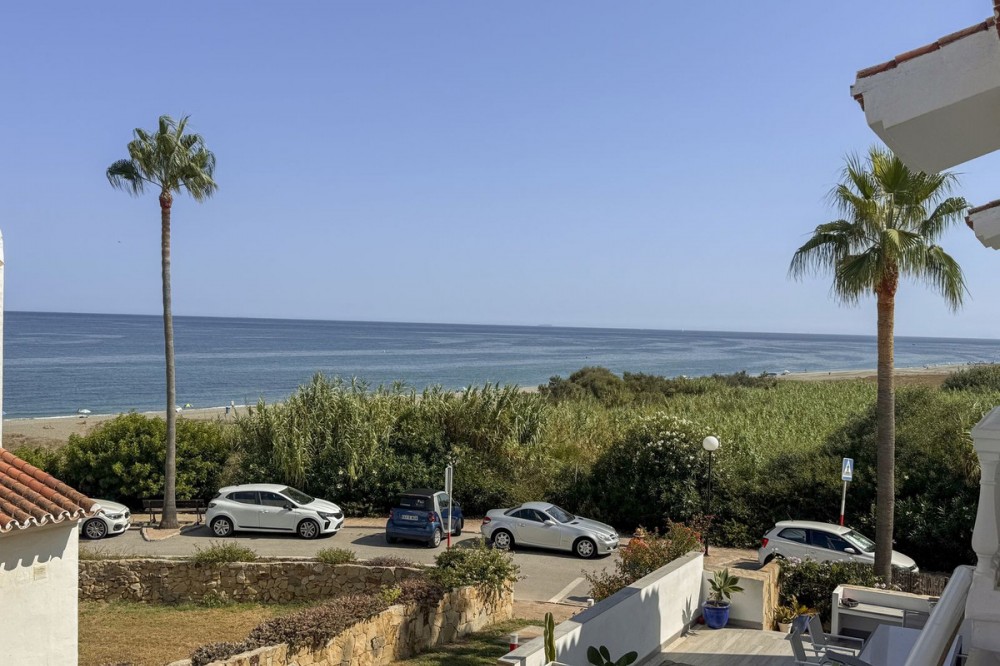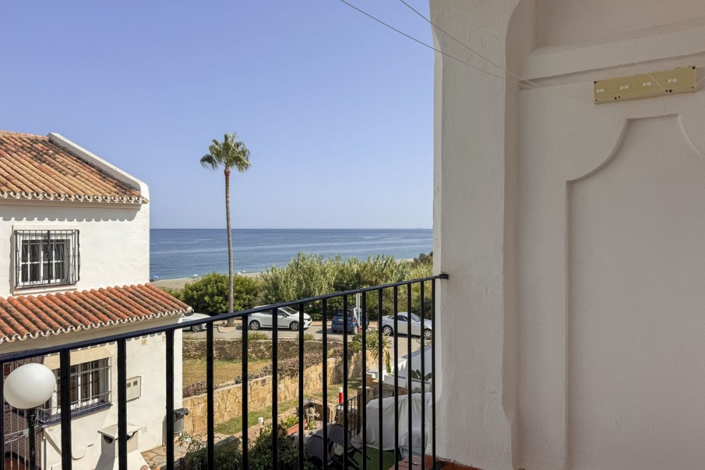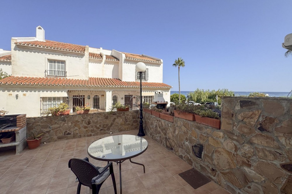 - Spectacular Townhouse with Sea Views in Aldea Beach, Manilva Beachfront Complex | Private Terrace | 1-Min Walk to the Beach This charming townhouse, located in the sought-after beachfront complex of Aldea Beach in Manilva, boasts an unbeatable location just steps from the sea. The urbanisation is perfectly connected to the promenade, offering direct access to Puerto de la Duquesa and the centre of Sabinillas. The main level features an entrance hall leading into a bright and spacious living-dining room. The independent kitchen is fully equipped and includes a serving hatch (with the option to convert it into an open-plan layout if preferred). A guest toilet is also available on this floor. From the private terrace, you can enjoy outdoor living with a side view of the sea. On the upper level, the master bedroom offers fitted wardrobes, a private terrace with stunning sea views, and a renovated en-suite bathroom. The two guest bedrooms are doubles and share a family bathroom. The urbanisation offers excellent facilities, including a beachfront swimming pool with sun loungers and lawn area, a tennis court, and basketball/football courts. This property presents great potential thanks to its prime beachfront location, generous living space, and solid build quality. Whether as a permanent residence or an investment opportunity, it is a home with remarkable value. For more information or to arrange a viewing, please contact us.