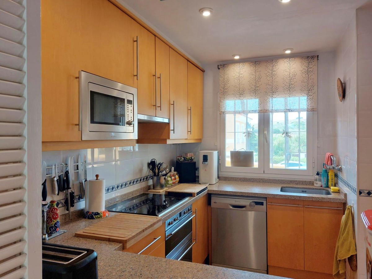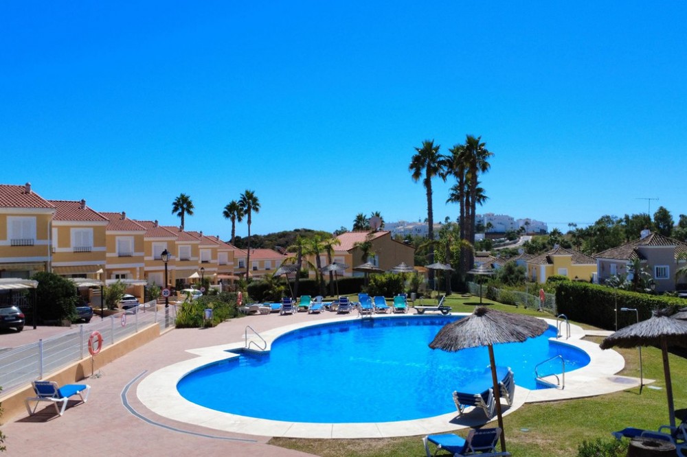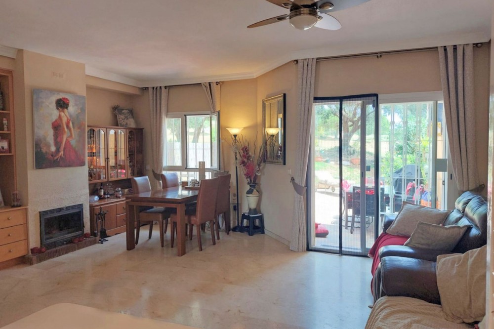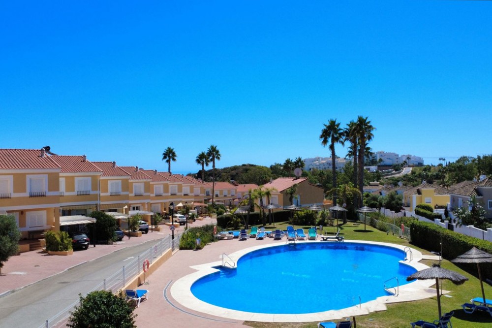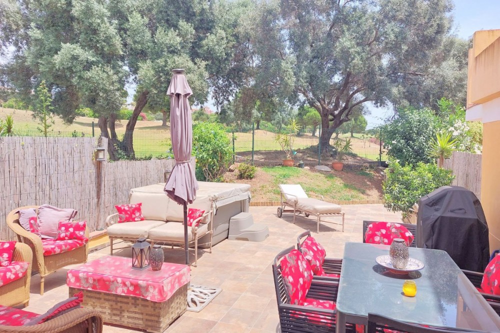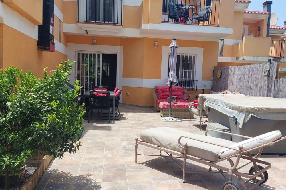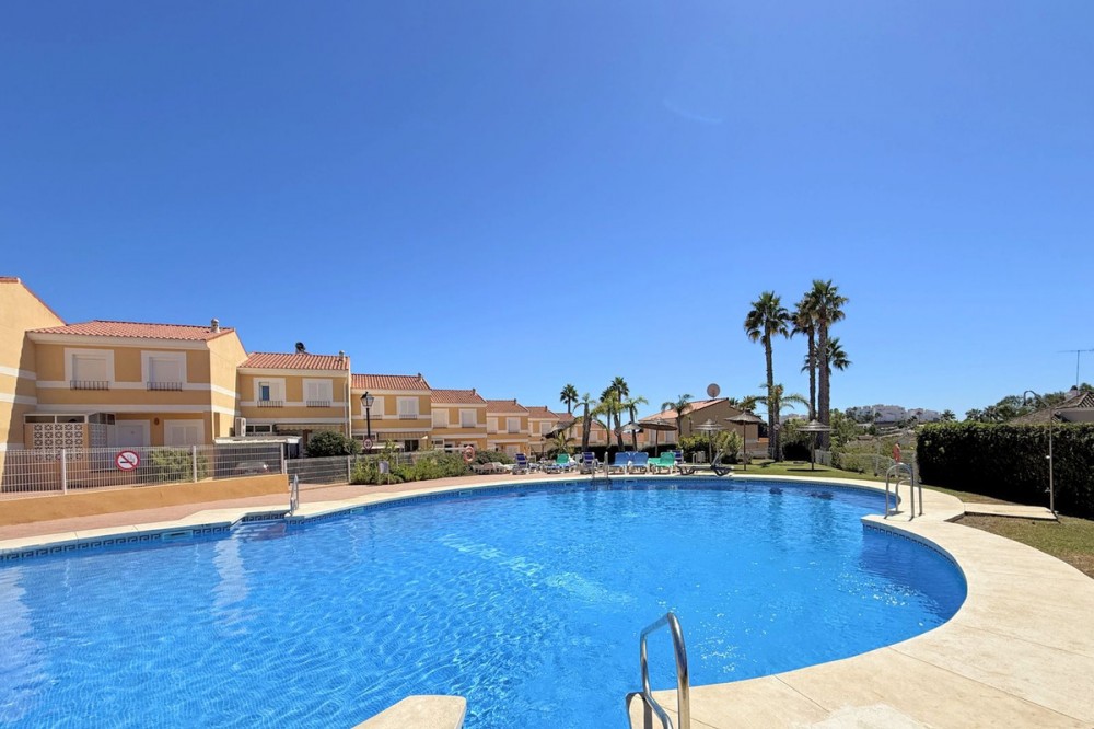 - Exclusive Golf Front Townhouse – La Duquesa Located in the attractive area of La Duquesa, between the towns of Estepona and Sotogrande, just a 10-minute drive to each, and only 5 minutes from sandy beaches with beach bars, a promenade, and its marina, this townhouse offers the perfect combination of tranquility, comfort, and Mediterranean lifestyle. With direct views of La Duquesa Golf Course and the sea, it is ideal for those who want to enjoy golf, nature, and proximity to the coast. The ground floor features a spacious living-dining room with fireplace, a fully equipped modern kitchen, and a rear terrace perfect for outdoor living. Upstairs, the master suite has a private balcony with stunning views, accompanied by two double bedrooms with built-in wardrobes and air conditioning. The gated complex offers a communal swimming pool, sun terrace, gardens, and barbecue area, creating the perfect setting to relax and enjoy the Mediterranean lifestyle with family. An elegant and welcoming home, ready to move in. We highly recommend a visit to fully appreciate its qualities and privileged location.