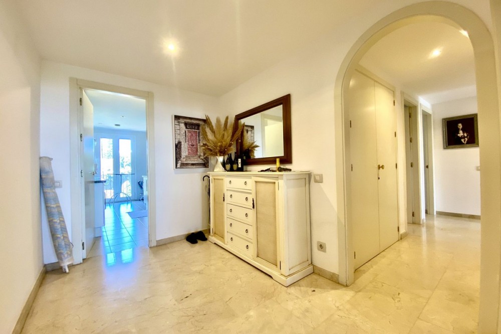 - This stunning apartment is located in Los Granados de Duquesa, Manilva, Málaga, a prime beachfront location. Thoughtfully designed and in excellent condition, this property offers a luxurious and comfortable environment. Located on the first floor of a private residence with 24-hour security, it guarantees tranquility and security to its residents. Just minutes from the port of La Duquesa, this apartment is ideal for those looking to live close to the sea and enjoy all the amenities. The apartment has three spacious bedrooms, designed to maximize comfort and functionality. The main terrace connects to the en-suite bedroom, allowing you to enjoy views of the sea and tropical gardens. One of the bedrooms also offers another southwest-facing terrace, making this a warm apartment in the winter season. Among the property's notable features are direct access to the beach, a security entrance with video intercom, and a surveillance camera system. Additionally, the apartment has individual air conditioning in each room, ensuring a pleasant atmosphere year-round. The community offers a communal pool and gardens, perfect for relaxing and enjoying the Mediterranean climate. For added convenience, the property includes a private underground garage with a wine cellar and storage room, ideal for storing bicycles or golf equipment. The location is unbeatable, with easy access to the seafront promenade and the various nearby amenities, such as bars and restaurants. This property is a unique opportunity to live in a luxurious setting by the Mediterranean Sea.