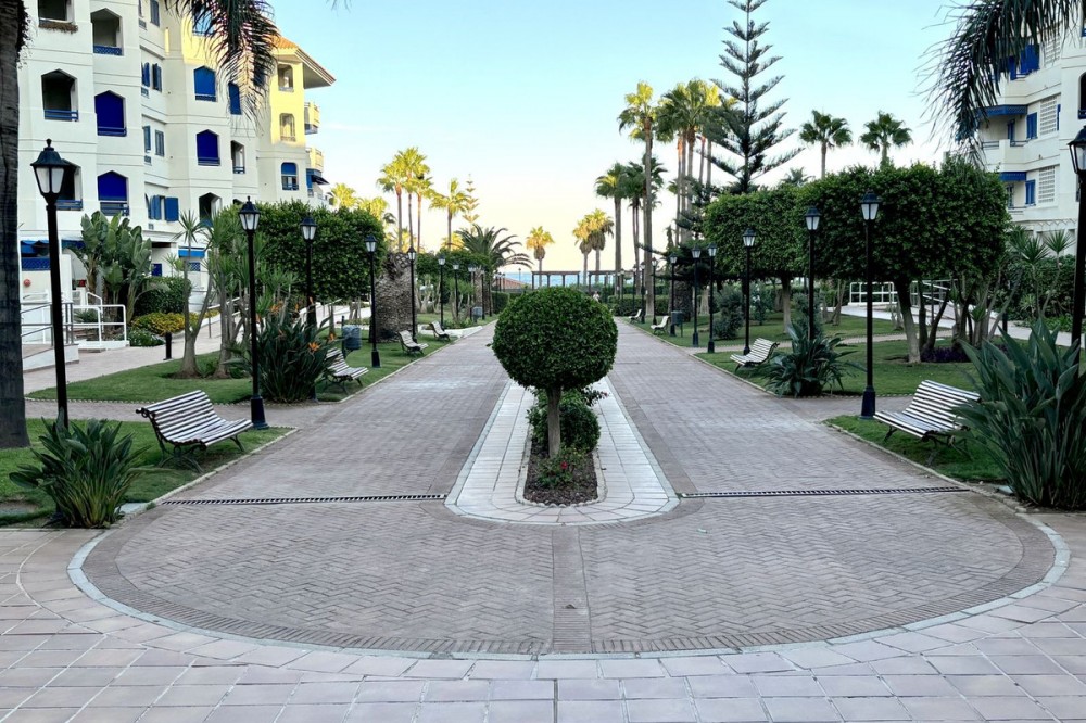 - Ground Floor Apartment, Estepona, Costa del Sol. 1 Bedroom, 1 Bathroom, Built 96 m², Terrace 15 m². Setting : Beachfront, Town, Commercial Area, Beachside, Port, Village, Close To Port, Close To Sea, Close To Schools, Urbanisation, Front Line Beach Complex. Orientation : West. Condition : Excellent. Pool : Communal. Views : Garden, Courtyard, Urban, Street. Features : Lift, Fitted Wardrobes, Near Transport, Private Terrace, Satellite TV, WiFi, Tennis Court, Utility Room, Access for people with reduced mobility, Marble Flooring, Double Glazing, Courtesy Bus, Fiber Optic. Furniture : Fully Furnished. Kitchen : Fully Fitted. Garden : Communal. Security : Gated Complex, 24 Hour Security. Parking : Underground, Garage. Utilities : Electricity, Drinkable Water, Telephone, Gas. Category : Beachfront, Investment.