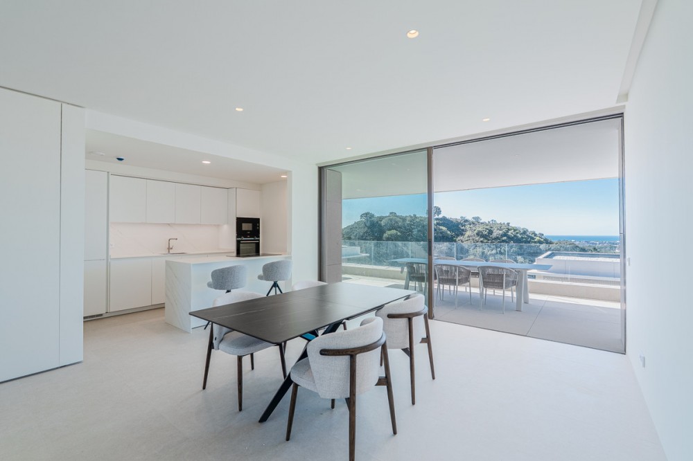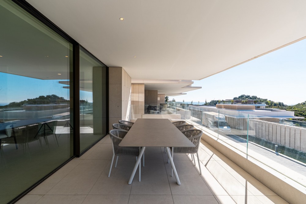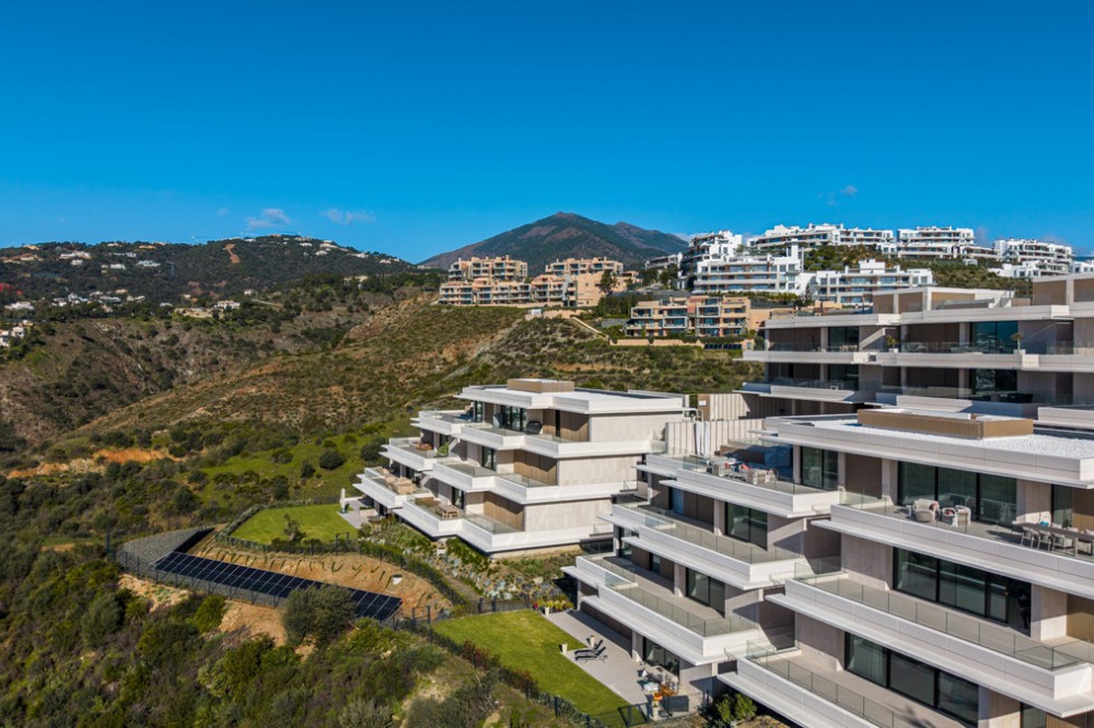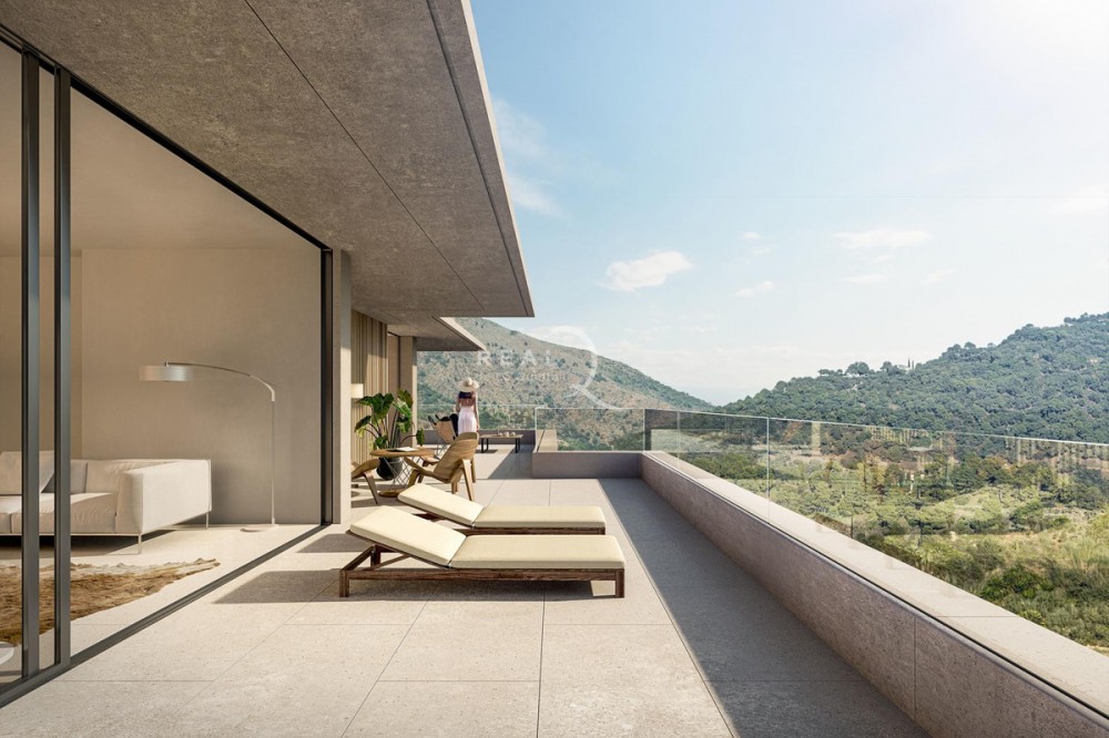 - Palmitos is een luxe woonproject, ontworpen door Villarroel Torrico, gelegen in het prestigieuze resort Real de La Quinta, te midden van de natuur en op slechts enkele minuten van Marbella en Puerto Banus. Met slechts twee blokken en 40 woningen onderscheidt Palmitos zich door zijn exclusiviteit, zuidelijke ligging en panoramisch uitzicht op de zee, de bergen en de golfbaan. De woningen combineren ruimte, elegantie en kwaliteit en bieden royale binnenruimtes, grote terrassen die perfect zijn om het hele jaar door van te genieten, en toegang tot fraai vormgegeven gemeenschappelijke ruimtes. De indeling is zo ontworpen dat er maximaal gebruik wordt gemaakt van natuurlijk licht en dat binnen en buiten naadloos in elkaar overlopen. Hoogtepunten Ruime woon- en eetkamers met open keukens. Grote overdekte terrassen met panoramisch uitzicht Hoofdslaapkamers met eigen badkamer Hoogwaardige afwerking en eersteklas apparaten Modern design met ramen van vloer tot plafond en glazen balustrades. Geniet van een aangenaam binnenklimaat met Daikin airconditioning (warm en koud), vloerverwarming in de badkamers en optionele watergedragen vloerverwarming in de rest van het huis. Compleet domoticasysteem met toegang op afstand Hoogwaardig aluminium kozijnwerk met dubbel glas en geïntegreerde zonwering. Resortvoorzieningen in Real de La Quinta Golfbaan en -academie Bevaarbaar meer met watersportmogelijkheden Tennis- en padelclub Sociale club met restaurant, fitnessruimte en spa. 24-uurs beveiliging Beschermd natuurgebied met wandelpaden Palmitos biedt een unieke kans om te wonen in een bevoorrechte natuurlijke omgeving met alle voorzieningen van een luxe resort en het comfort van een eigentijds ontwerp, gecreëerd voor de moderne mediterrane levensstijl.