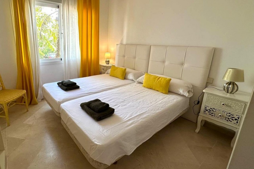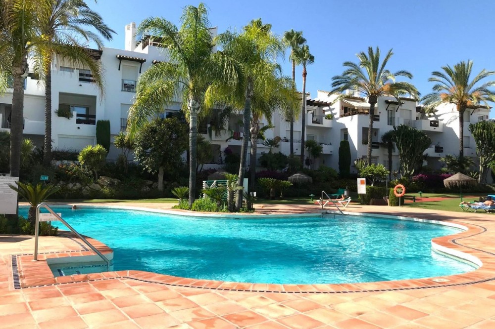 - Beautiful 90 m2 apartment with 2 bedrooms and 2 bathrooms, a terrace with garden views, and direct access to the beach in an exclusive Estepona development. This ground-floor apartment with two bedrooms and two full bathrooms offers a bright and welcoming space, with a large living-dining room and a fully equipped kitchen. The development is distinguished by its seven swimming pools, well-maintained communal areas, and direct access to the sea, with the beach just steps away. It is an environment designed to enjoy the Mediterranean lifestyle: sunrise walks, afternoon swims, and unforgettable sunsets. Located just a 10-minute drive from the center of Estepona, it offers the perfect combination of tranquility and convenience: supermarkets, restaurants, services, and entertainment within easy reach. Ideal for families, couples, or those looking for a sunny retreat accessible year-round. Contact us and schedule your visit today!