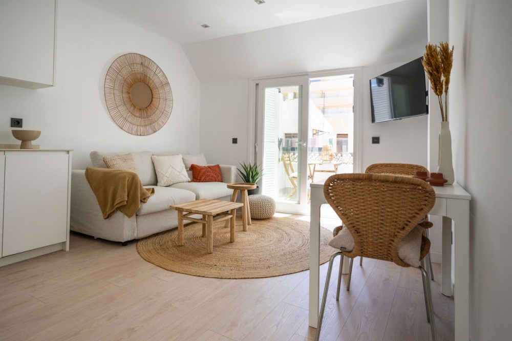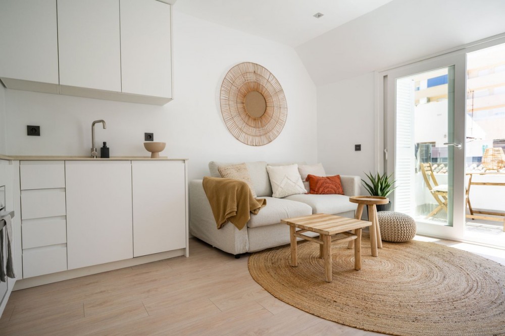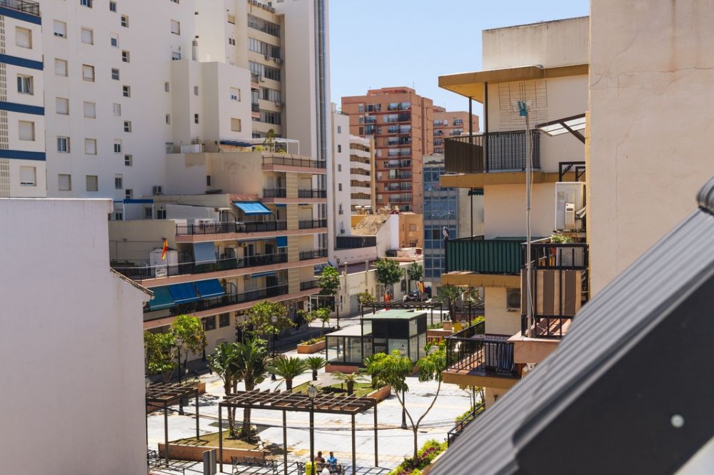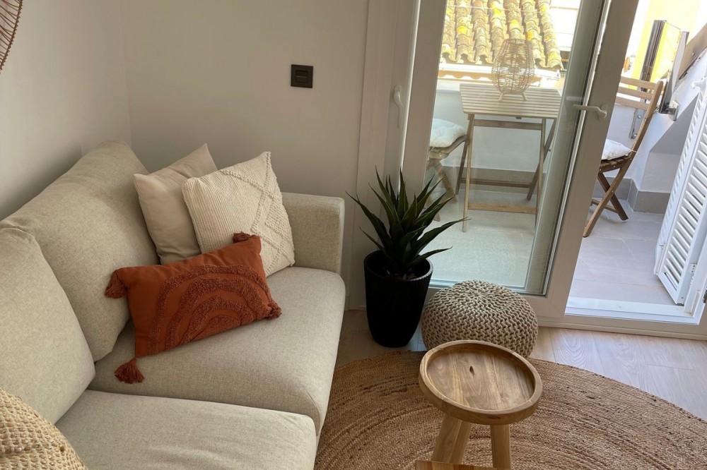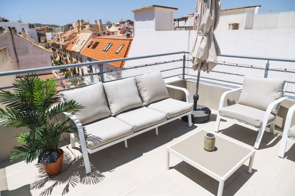 - Penthouse Just 100 Meters from the Sea Imagine living just steps from the beach in Fuengirola, on a quiet street yet with everything you could wish for within reach – cozy cafés, popular restaurants, a grocery store, a sourdough bakery, and a fish market. This bright and well-designed penthouse invites you to a life in the sun and a year-round vacation vibe. Open Layout and Peaceful Bedroom The apartment features an open-concept living room and kitchen, fully equipped and ready to use. There is also a peaceful bedroom and a fresh bathroom, creating a harmonious and comfortable environment. Two Delightful Outdoor Spaces The penthouse has a south-facing balcony off the living room, perfect for your morning coffee. Upstairs, there is a large rooftop terrace of approximately 25 m², accessible via a private staircase within the apartment. The rooftop terrace is for your exclusive use, as it is accessible only through a private staircase inside the apartment. Here, you can host dinner with friends or simply relax and enjoy the view. Modern Features and Popular Location The building is constructed with high-quality materials and offers modern features such as an aerothermal system and AC/CC. The hallway includes smart storage and a built-in washer and dryer, making everyday life easier. The apartment has a tourist license and is a highly sought-after property, with the beach, restaurants, and cafés just around the corner. It’s an unbeatable location, only 100 meters from the beach and 900 meters from the train station, which offers direct connections to Malaga city and the airport. A unique opportunity for those seeking a home, a vacation property, or an investment.
