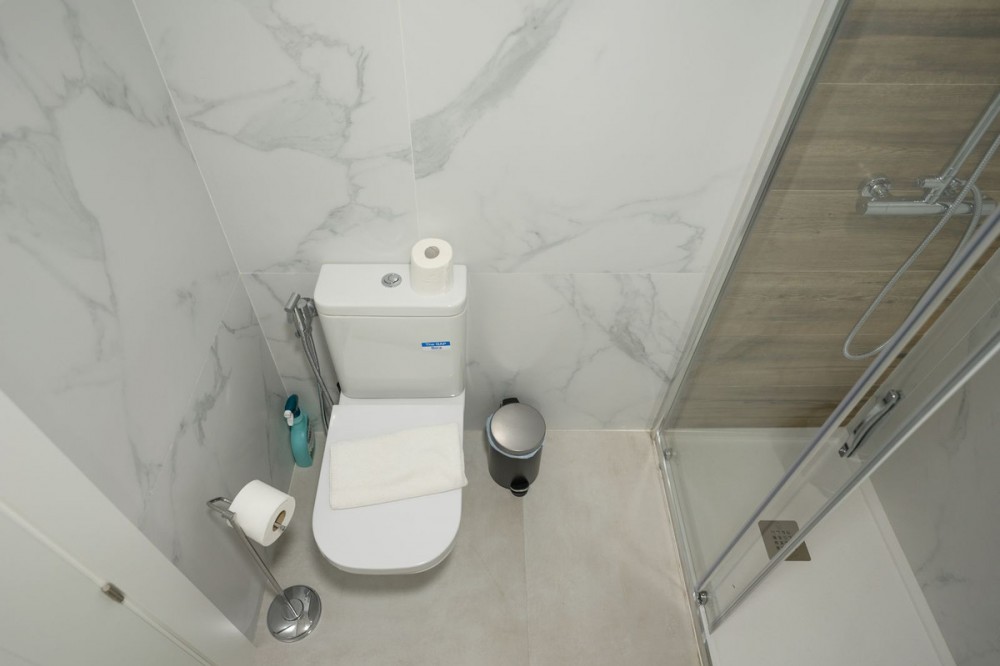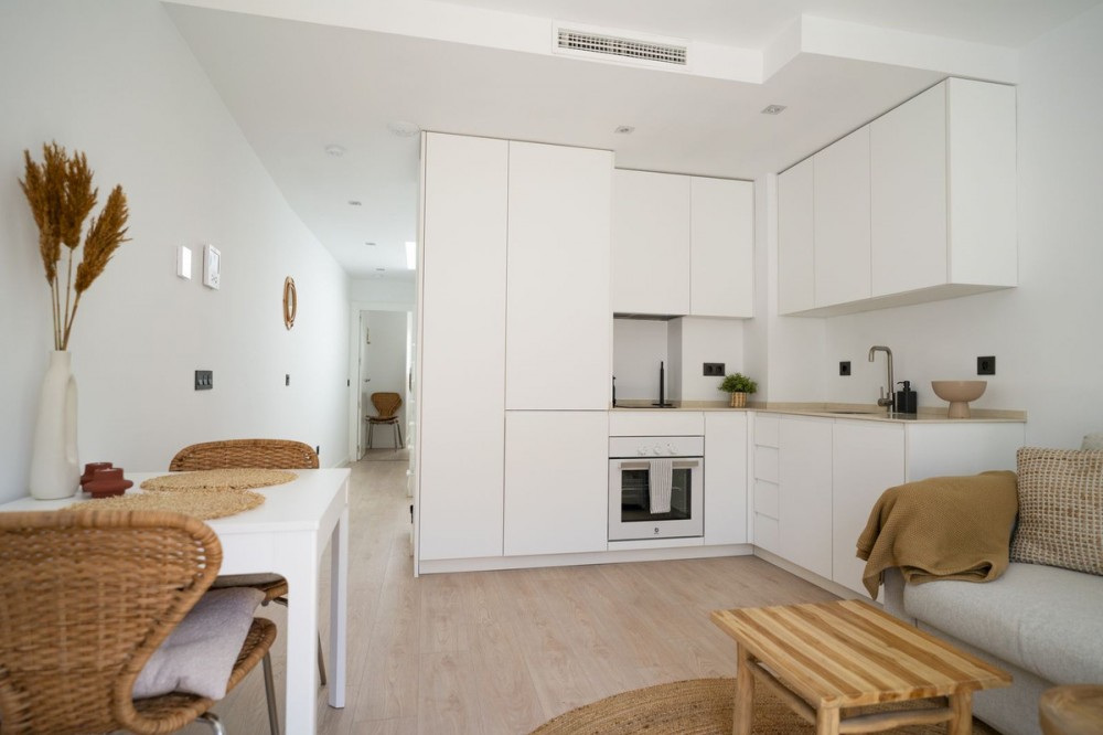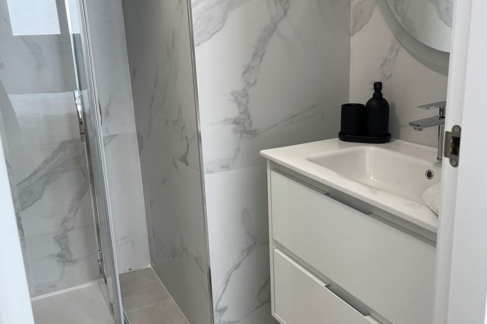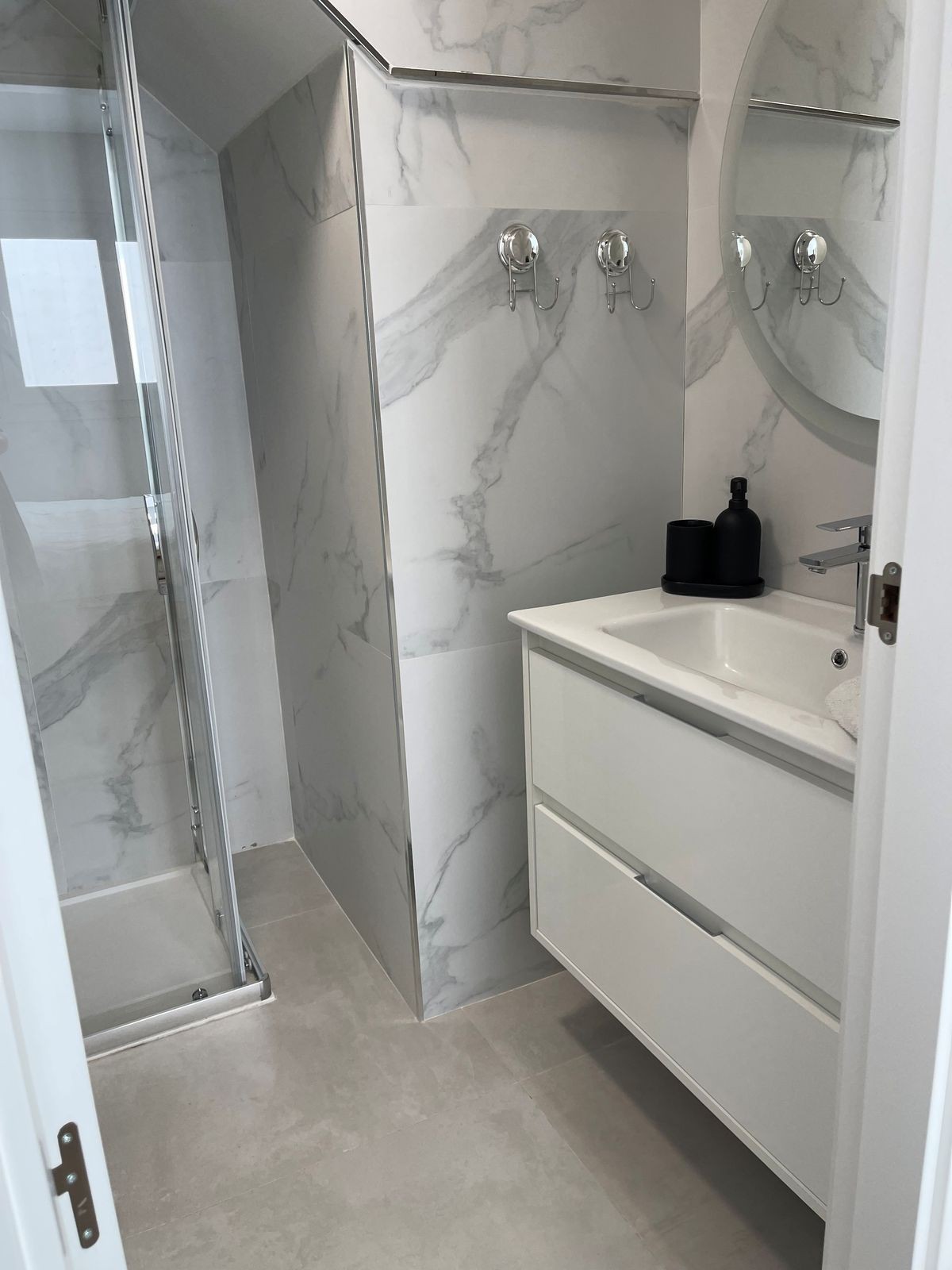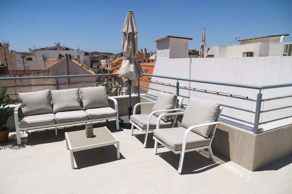 - Penthouse Just 100 Meters from the Sea Imagine living just steps from the beach in Fuengirola, on a quiet street yet with everything you could wish for within reach – cozy cafés, popular restaurants, a grocery store, a sourdough bakery, and a fish market. This bright and well-designed penthouse invites you to a life in the sun and a year-round vacation vibe. Open Layout and Peaceful Bedroom The apartment features an open-concept living room and kitchen, fully equipped and ready to use. There is also a peaceful bedroom and a fresh bathroom, creating a harmonious and comfortable environment. Two Delightful Outdoor Spaces The penthouse has a south-facing balcony off the living room, perfect for your morning coffee. Upstairs, there is a large rooftop terrace of approximately 25 m², accessible via a private staircase within the apartment. The rooftop terrace is for your exclusive use, as it is accessible only through a private staircase inside the apartment. Here, you can host dinner with friends or simply relax and enjoy the view. Modern Features and Popular Location The building is constructed with high-quality materials and offers modern features such as an aerothermal system and AC/CC. The hallway includes smart storage and a built-in washer and dryer, making everyday life easier. The apartment has a tourist license and is a highly sought-after property, with the beach, restaurants, and cafés just around the corner. It’s an unbeatable location, only 100 meters from the beach and 900 meters from the train station, which offers direct connections to Malaga city and the airport. A unique opportunity for those seeking a home, a vacation property, or an investment.