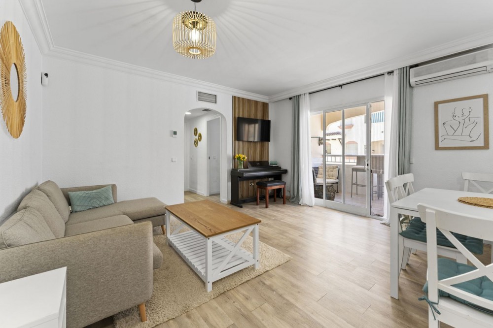 - Stylish Renovated Apartment by the Beach in Estepona Discover this beautifully renovated apartment, perfectly located in a sought-after beachfront urbanization in the very heart of Estepona. Just steps away from the beach, the marina, charming restaurants, shops, and supermarkets, this home offers the ideal blend of comfort and coastal lifestyle. The apartment features 2 spacious bedrooms and 2 modern bathrooms, along with a bright open-plan kitchen, dining, and living area designed in a contemporary style. From the private terrace, you can enjoy the sunshine and partial views of the Mediterranean—perfect for relaxing or entertaining. Highlights include: Fully renovated interiors with modern finishes Private terrace with beach views Elevator and private parking space A well-kept urbanization with swimming pool for residents Whether you are looking for a full-time residence, a holiday retreat, or a secure investment, this apartment ticks all the boxes. Its unbeatable location and stylish design make it a truly special opportunity in Estepona.