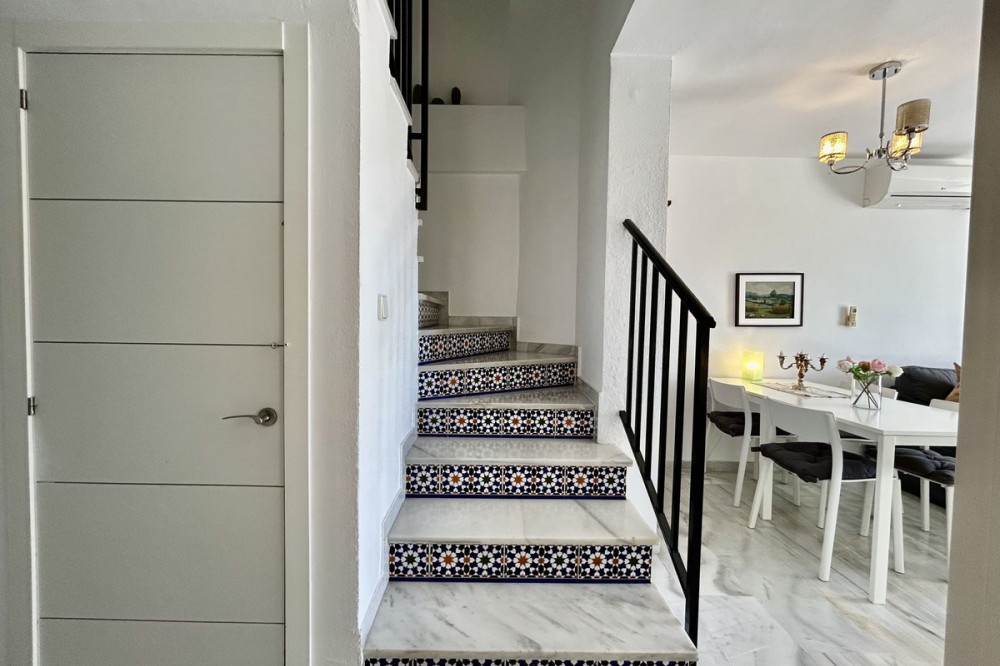 - Spacious Elevated Duplex in Gated Community – Torremolinos This elevated ground-floor duplex is set within a secure, sought after urbanisation, offering comfort, convenience, and an excellent location just steps from the beach. On the entrance level, you’ll find a separate fitted kitchen, guest cloakroom, storage, and a bright living room with direct access to a sunny terrace overlooking the pool and communal areas. From here, there is also direct access to the communal pergola with BBQ area and two swimming pools. The upper floor includes a master bedroom with Juliet balcony and sea views, a second large and bright bedroom, and a modern bathroom with walk-in shower. The property also benefits from a private garage space and an additional outdoor storage room. Shops, restaurants, and all local amenities are within walking distance, making this an ideal permanent residence, holiday home, or investment property. Duplex, Torremolinos, Costa del Sol. 2 Bedrooms, 2 Bathrooms, Built 72 m², Terrace 20 m². Setting : Commercial Area, Close To Shops, Close To Sea, Close To Town, Close To Schools, Urbanisation. Orientation : South East. Condition : Excellent. Pool : Communal. Climate Control : Air Conditioning. Views : Sea, Pool. Features : Lift, Near Transport, Private Terrace, Storage Room, Marble Flooring, Barbeque, Double Glazing. Furniture : Not Furnished. Kitchen : Fully Fitted. Garden : Communal. Security : Gated Complex. Parking : Underground, Street. Category : Holiday Homes, Investment, Resale.