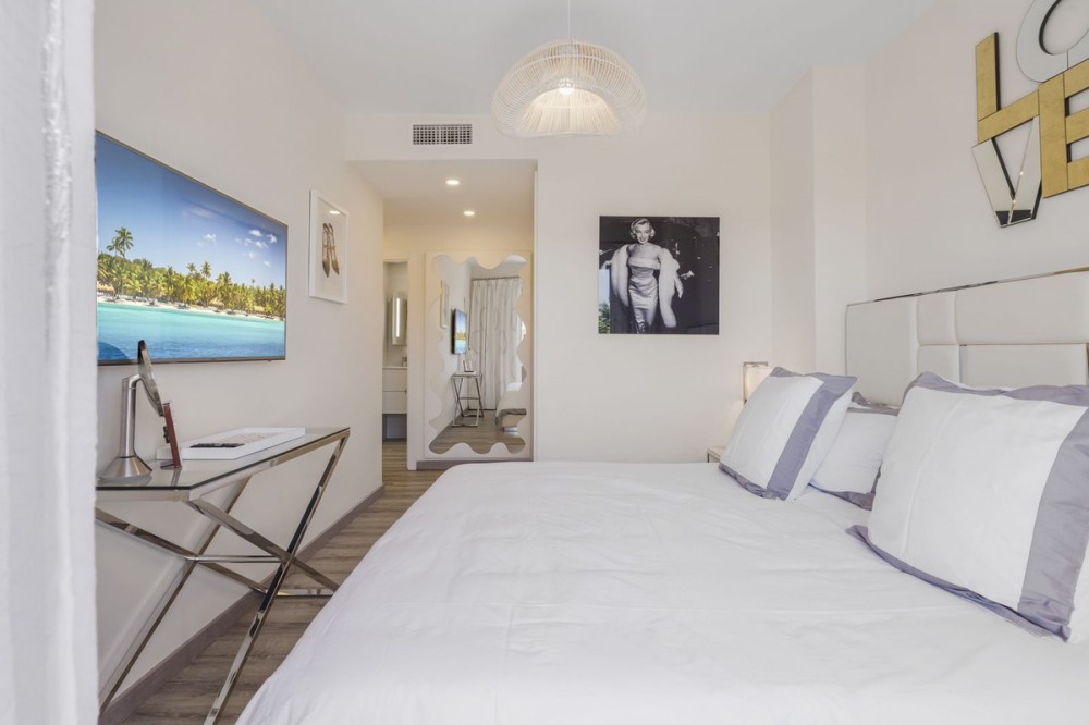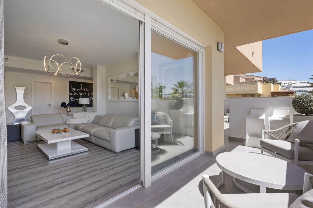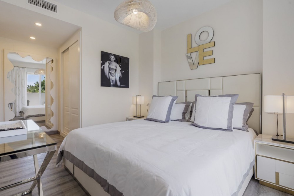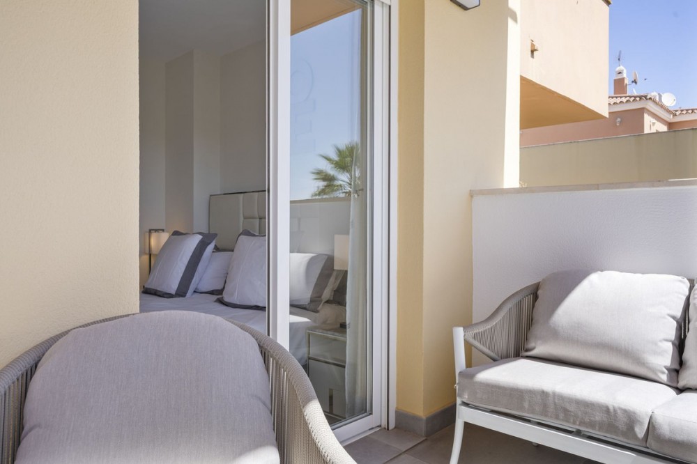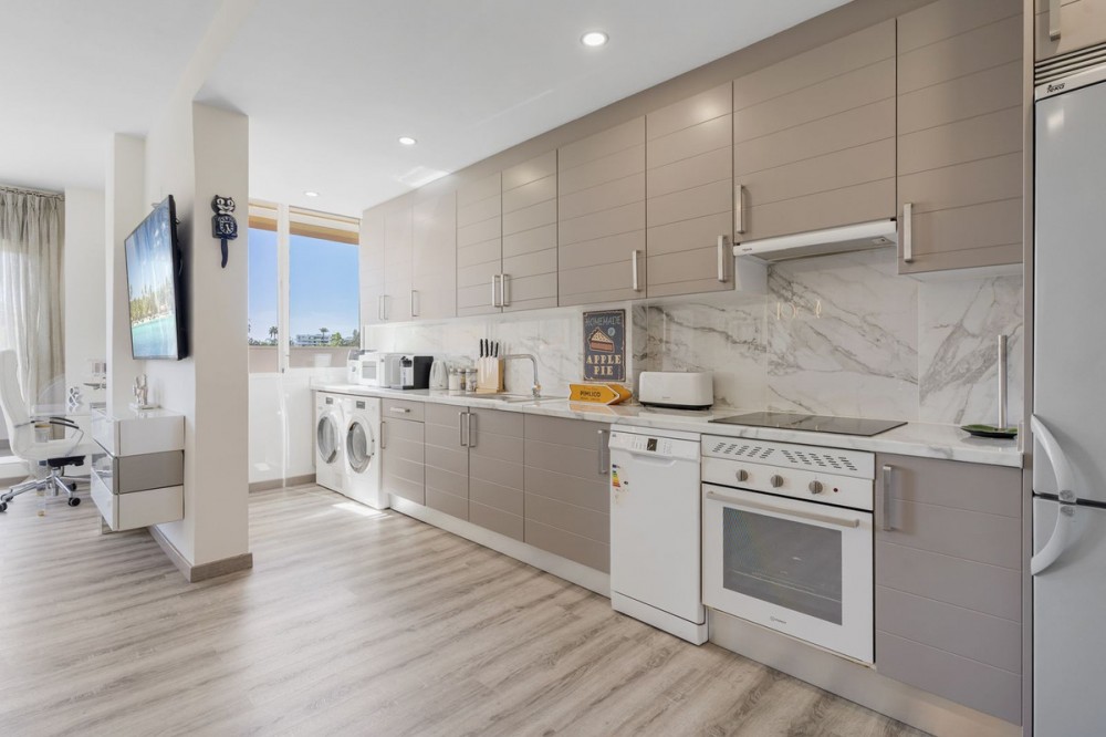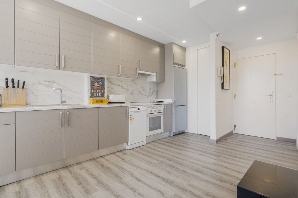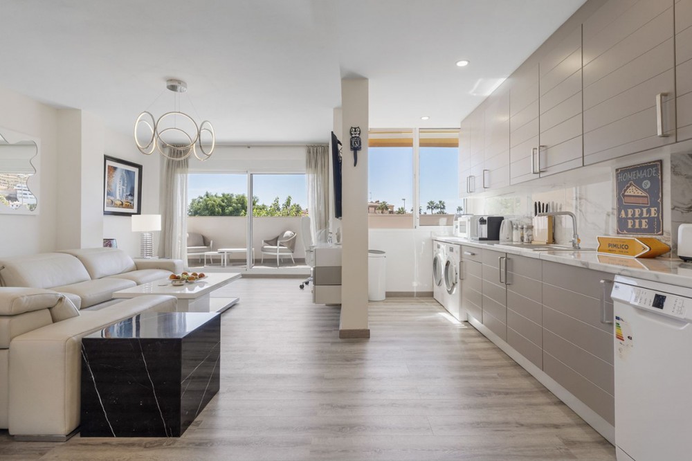 - Luxury 2 bed, 2 bath apartment, a short flat walk to La Cala town & beach and many other local amenities. La Cala is booming and this stylish apartment is a great opportunity. In a small, friendly community with a large pool area and spacious, well kept gardens, life here is peaceful and the location is very convenient, a close walk to great restaurants, supermarkets and the charming La Cala town & beach, everything you might need is close by.. The property would make a great full time home and also has great potential as a vacation rental; short term rentals are allowed in this community. A private parking space and storage room in the underground garage are included, with easy access from the garage by elevator to the apartment. Enter into the open plan living room and kitchen area and feel instantly welcome and at home, this completely renovated and redesigned apartment, makes maximum use of the spacious and bright open plan space. The tasteful interior design and designer furniture are all included as seen, and the property is immaculate, ready for you to move in. The spacious living room is light and bright with double patio doors to the south facing covered terrace over looking the pool and gardens, a lovely place to relax. The large kitchen is fully equipped with lots of countertop and cupboard space, a handy seperate storage area and a large double window giving more light and open views across the La Cala neighbourhood. There is also a built in double cupboard at the entrance. The family bathroom is fully reformed in a modern style with walk in shower, handy sensor lighting and LED mirror with bluetooth and speaker. The master bedroom has a spacious ensuite bathroom, modern and fully reformed with large walk in shower and sensor lighting. The master bedroom suite is a relaxing haven with a luxury feel, bright and airy with built in double wardrobes and patio doors to the outside terrace and a seperate seating area. The second bedroom is bright, charming and a lovely space. Also with built in double wardrobes and patio doors to access to the terrace. The terrace area has been refurbished in a modern style with different areas to rest and relax and designer outdoor furniture included. It is rare to find a fully reformed property ( of this high standard ) so close to La Cala town. Early viewings are highly recommended.