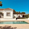 - Detached villa with sea views in Estepona – Don Pedro Development Living on the Costa del Sol transcends mere property ownership: it means enjoying a unique lifestyle where sun, sea, and tranquility become part of everyday life. This detached villa, located in the prestigious Don Pedro development in Arroyo de Enmedio (Estepona), represents an exceptional opportunity for those seeking comfort, privacy, and a prime beachfront location. The single-story villa boasts 110 m² of living space on a generous 835 m² plot. Inside, the layout has been designed to maximize space and natural light: an elegant living room with an open-plan kitchen and direct access to the exterior, along with three bedrooms and three bathrooms, including a master suite with a walk-in closet and en-suite bathroom. Outside, every detail invites you to enjoy the Mediterranean climate: a spacious garden with a private pool, a terrace with a barbecue area, and a charming patio. The property also features covered parking for two vehicles with direct access from the development. Its location is another major asset: a privileged beachfront setting, close to prestigious golf courses, in a quiet area with excellent transport links. Furthermore, it is near shops, amenities, and the Estepona hospital, ensuring convenience and peace of mind for daily life. As an added bonus, the villa offers the possibility of expansion by up to 65 m², making it a unique investment and customization opportunity. This ready-to-move-in residence is ideal as a permanent home or for extended winter stays, where every day becomes a high-quality Mediterranean lifestyle experience.