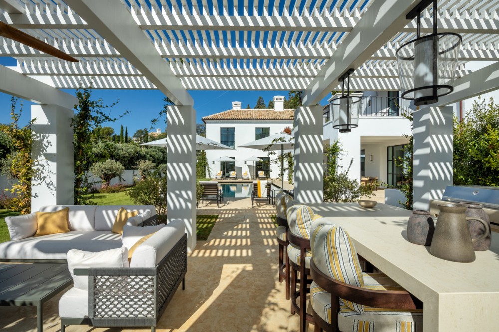 - Step into the opulence and grandeur of this Villa, a magnificent estate that transports you to a private paradise in the heart of Cascada de Camoján. Its extraordinary architecture and distinctive design set it apart, leaving every visitor captivated. Created by the acclaimed architect behind Finca Cortesín, the villa’s nude-toned exterior radiates serenity and peace, offering a calming atmosphere for its residents. The gardens are a true oasis—perfect for hosting gatherings and making the most of Marbella’s 320 days of sunshine. Colorful floral walls frame the property, adding vibrancy and seamlessly blending the natural surroundings with the estate. Inside, timeless elegance defines every space. Custom-made furniture and refined décor create a sophisticated ambiance, while the upper terraces provide effortless indoor-outdoor living. Expansive windows flood the interiors with natural light, enhancing the home’s sense of openness. Nestled at the foothills of the majestic La Concha mountain, it boasts spectacular views of the glittering Mediterranean Sea. Its privileged location combines absolute privacy and tranquility with convenient access to Marbella’s finest offerings. From world-class dining to luxury shopping, every amenity is just a short drive away.