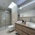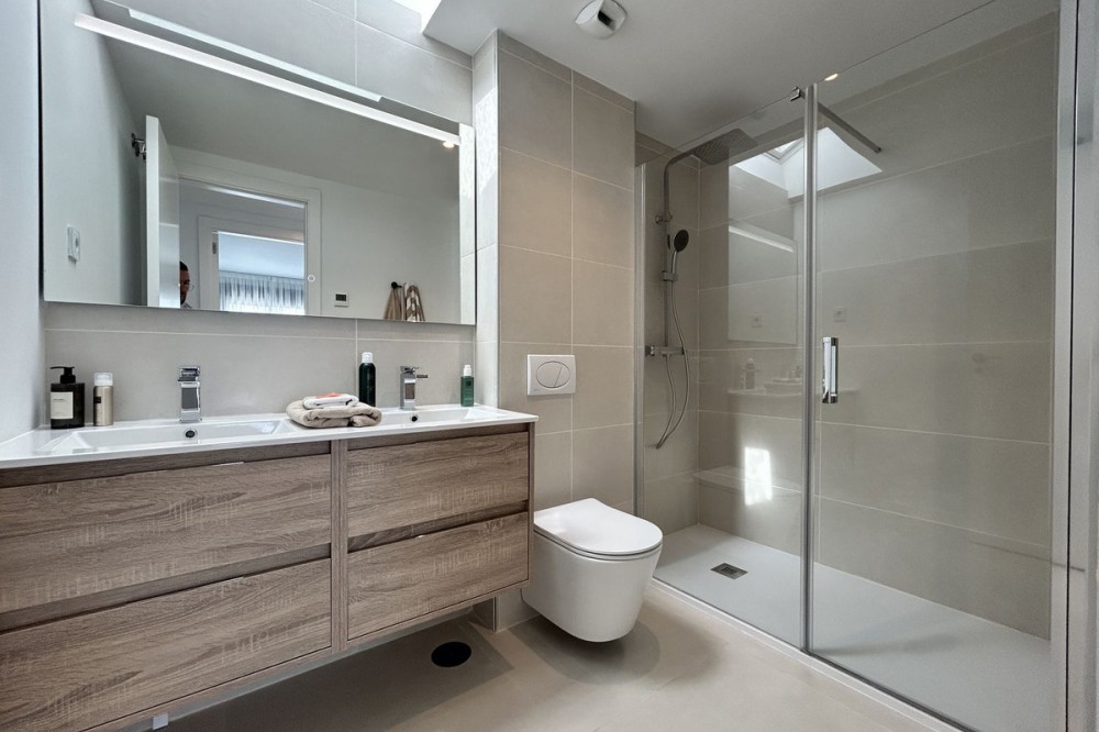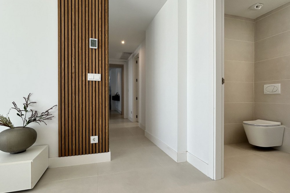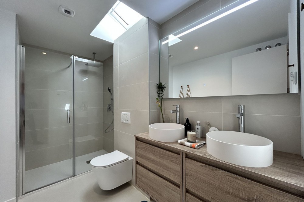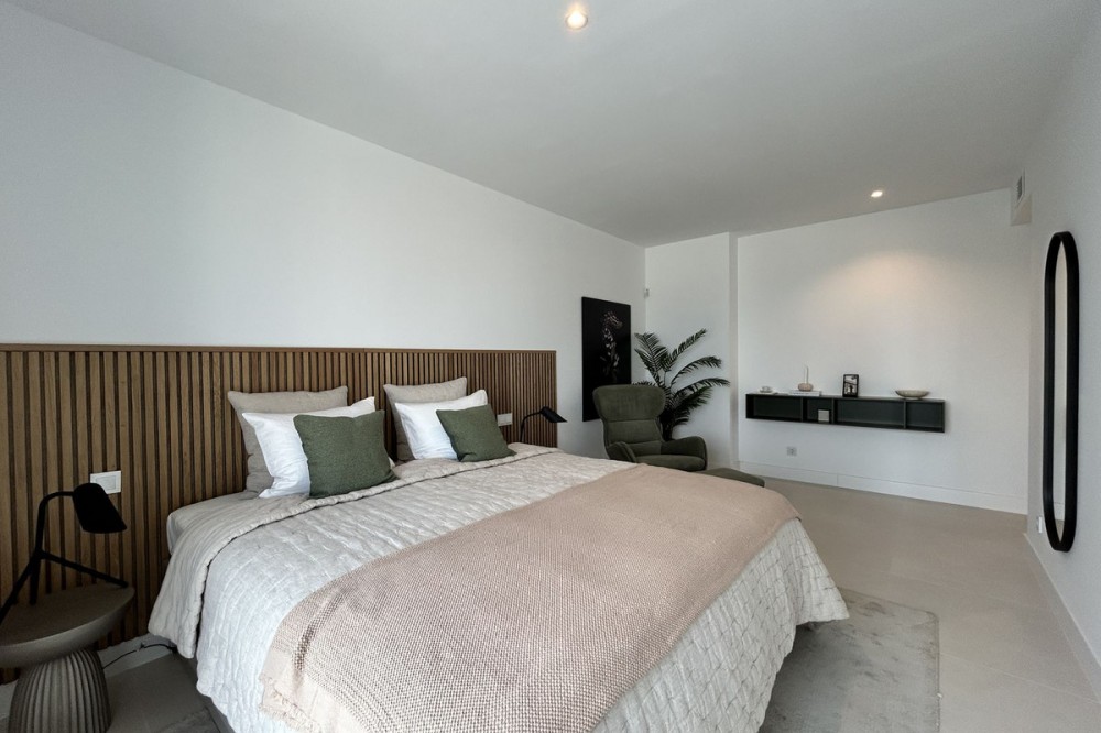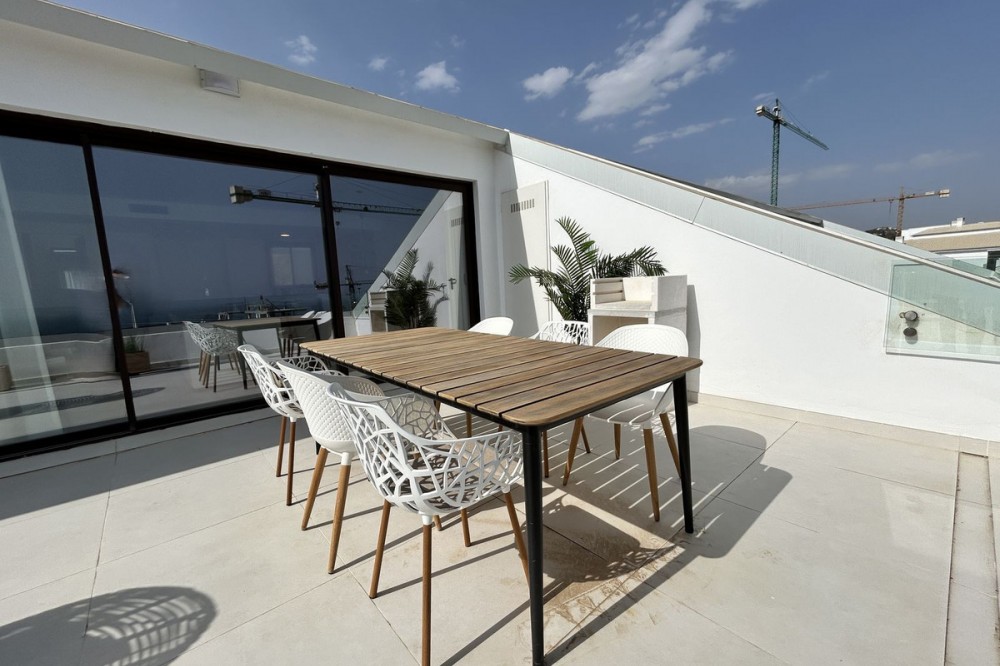 - This exclusive, brand-new penthouse with three bedrooms and a large south-facing terrace with sea and mountain views is fully furnished with high-end designer pieces by Ikonia Ilusion&Arte, which stands out for its thoughtful lighting and maximum sense of spaciousness. It features home automation and smoke detection sensors, as well as Jung mechanisms. The kitchen, equipped with wall and base cabinets, Silestone countertops, and paneled appliances with A-grade energy efficiency, includes a stove, oven, microwave, hood, refrigerator, dishwasher, and washer-dryer. The bathrooms feature wall-hung toilets, extra-flat shower trays with screens, and, in the master bathroom, a double sink with integrated cabinetry. With an open-plan concept, the living room and kitchen are integrated and extend onto a spacious terrace through large, high-performance sliding windows, creating a seamless connection between the interior and exterior. Its features include an air-source heat pump system for heating and cooling, underfloor heating in bathrooms, aluminum/PVC exterior carpentry with double-glazed thermoacoustic and security windows, and pre-installed motorized blinds in the bedrooms and living room. Large-format porcelain tile flooring extends throughout the home. Lined built-in wardrobes and glass railings on the terraces provide elegance and security. The complex emphasizes sustainability with thermal insulation and pre-installation for an electric vehicle charger. Two parking spaces and a storage room are included. Located in an exclusive residential area of Higuerón, Fuengirola, offering extensive gardens, an outdoor pool, a solarium, and a jacuzzi: a true Mediterranean paradise in full expansion, surrounded by nature and perfectly connected. Don't miss this turnkey opportunity to experience the Mediterranean from day one and make a high-value investment in a premium location. The buyer is exempt from agency fees. The price does not include any expenses arising from the purchase and sale process, such as notary fees, registration fees, or transfer taxes.