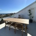 - Exclusive newly built penthouse with 3 bedrooms and a spacious south-facing terrace offering spectacular sea and mountain views. The home comes fully furnished with high-end designer pieces created by Ikonia Ilusion&Arte, highlighting the carefully designed lighting and spaciousness of each room. It features a home automation system and smoke detectors, as well as Jung appliances. The modern and functional kitchen features high and low cabinetry, a Silestone countertop, and paneled appliances with an A energy rating (hob, oven, microwave, extractor hood, refrigerator, dishwasher, and washer-dryer). The bathrooms feature wall-hung toilets, extra-flat shower trays with screens, and the master bathroom features a double sink with integrated cabinetry. The open-plan design combines the living room and kitchen in a single space, connected to the terrace by large sliding windows that maximize light and create a seamless transition between indoors and outdoors. Its features include air conditioning (heating/cooling via aerothermal heating), underfloor heating in bathrooms, aluminum/PVC exterior carpentry with double-glazed thermoacoustic and security windows, and pre-installed motorized blinds in the bedrooms and living room. Large-format porcelain tile flooring extends throughout the home, while fully tiled built-in wardrobes and glass railings on the terraces provide elegance and comfort. In line with a sustainable lifestyle, the home is thermally insulated and pre-installed for an electric car charger. It also includes two parking spaces and a storage room. Located in the prestigious Higuerón development, Fuengirola, this residential complex offers landscaped gardens, a communal pool, a solarium, and a jacuzzi. A true Mediterranean paradise surrounded by nature and with excellent transport links. Move into your new home in Higuerón today and start enjoying the sun, the sea, and a unique lifestyle, while your investment grows in one of the most exclusive areas of the Costa del Sol. The buyer is exempt from agency fees. Expenses arising from the purchase process, such as notary fees, registration fees, or transfer taxes, are not included in the price.