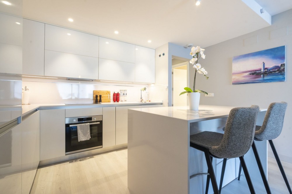 - Jardines de La Lagunas well established modern community in Las Lagunas. Short distance to everything, golf, beach, shopping, park, etc. The apartment has been upgraded with glass curtains, the kitchen, and nice furnitures. Storage and garage underground. Nice gym and a big pool.