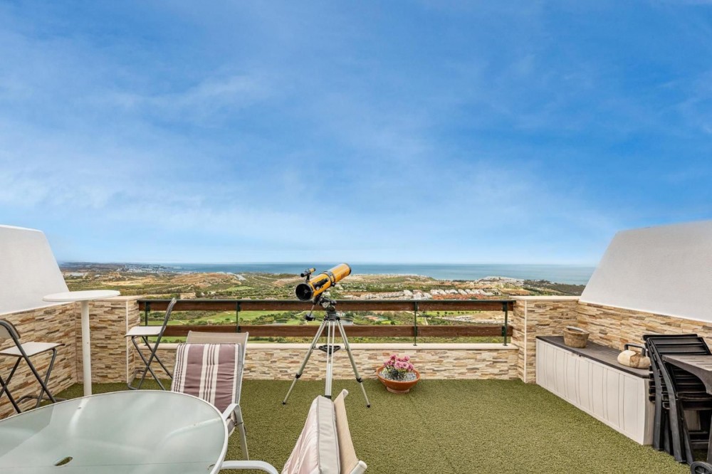 - We are pleased to present this magnificent duplex penthouse located in the exclusive Doña Julia area of Casares, a privileged setting that combines peace, elegance, and proximity to the sea. A unique property, ideal both as a permanent residence or as a second home on the Costa del Sol. The property offers 85 m² of built space, distributed across three bright and spacious bedrooms, two bathrooms (one of them en-suite), and impressive outdoor areas: a 36 m² terrace and a private 84 m² solarium boasting panoramic views of the sea and the mountains. The penthouse is in excellent condition and is delivered fully furnished, featuring a fitted kitchen, marble floors, built-in wardrobes, double glazing, and hot/cold central air conditioning. Key features include: Solarium, covered and uncovered terraces, and a private balcony. Lift access and video entry system. Secure gated community. Two private parking spaces. The location is another highlight: surrounded by golf courses, just minutes from the beaches, and with excellent connections to the town centre and main points of interest along the Costa del Sol. In short, a duplex penthouse that offers comfort, exclusivity, and an unbeatable Mediterranean lifestyle. Don’t miss the opportunity to discover this property. Contact us today for more information or to arrange a viewing.