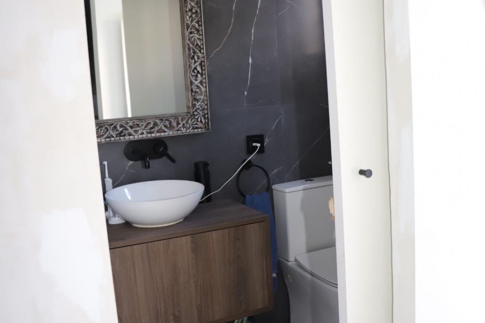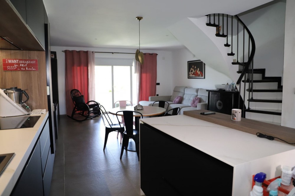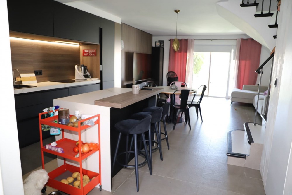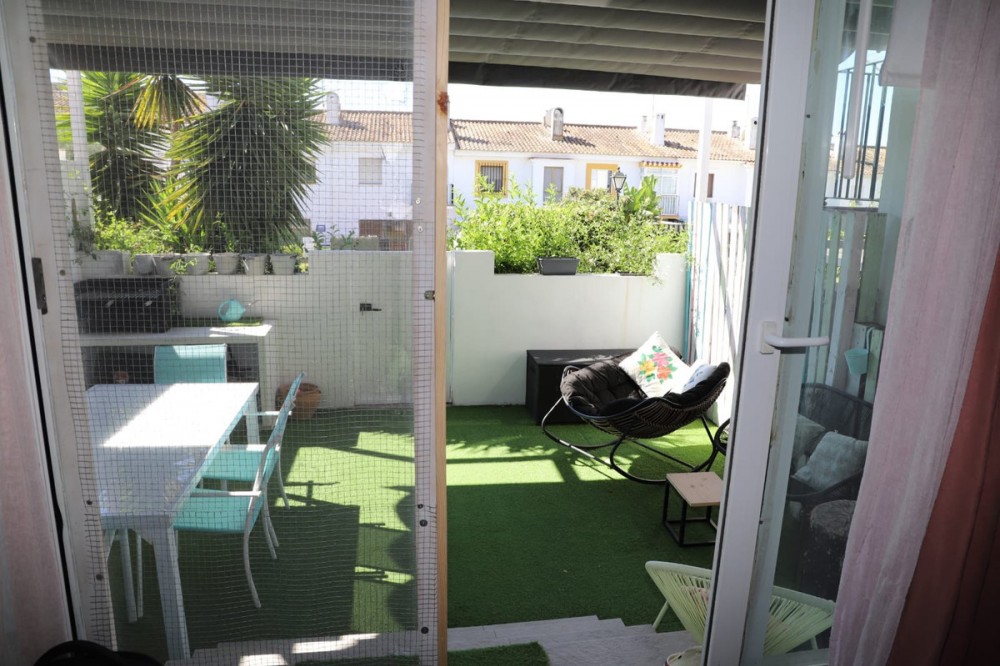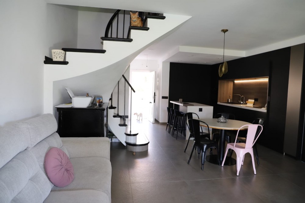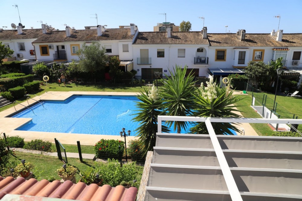 - This well-appointed town house is situated in the desirable neighbourhood of Nueva Atalaya, in Estepona East, Malaga. Offering a blend of comfort and convenience, the property features three spacious bedrooms, three bathrooms, and an additional guest toilet, making it an ideal choice for families or those seeking ample living space. With a built area of 130m² and a generous 28m² terrace, the residence provides a harmonious balance between indoor and outdoor living. The property is presented in good condition and benefits from a range of modern amenities. Air conditioning and a fireplace ensure year-round comfort, while solar panels contribute to energy efficiency. The home is equipped with high-speed internet (Wi-Fi), an alarm system, and a storage room for added security and practicality. The living room, laundry room, and private terrace offer versatile spaces for relaxation and daily activities, and the ground floor patio further enhances the living experience. Residents enjoy access to a communal pool and garage, while the property also boasts a private garden with delightful views of both the garden and pool. The gated community setting provides peace of mind, and pets are allowed, making it suitable for animal lovers. Optional furniture packages are available for those seeking a turnkey solution. The location is particularly advantageous, with amenities, transport links, shops, schools, and the town centre all nearby. The property is also close to the sea and beach, golf courses, and a children’s playground, catering to a wide range of lifestyles. A balcony adds to the appeal, offering an additional outdoor space to enjoy the pleasant surroundings.