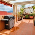 - Duplex penthouse for sale in San Pedro de Alcántara Spacious and bright 210 m² duplex penthouse in the heart of San Pedro. The property offers 3 bedrooms, including a master suite with en-suite bathroom, plus 2 full bathrooms and a guest toilet. Highlights include a large dressing room, a cosy rustic-style kitchen-diner and a generously sized sunny terrace with beautiful views of La Concha. The main floor has an elegant living room with access to the L-shaped terrace, a spacious kitchen-diner of approximately 30 m² with space for a large table seating up to 8 people and direct access to the terrace. On this level you will also find the master suite, with its fully renovated bathroom, as well as a guest toilet. On the upper floor there are two additional bedrooms with fitted wardrobes, a large shared dressing room and a double bathroom. The property has ample storage space, marble floors, hot/cold air conditioning and a very practical layout. It includes a very spacious parking space.