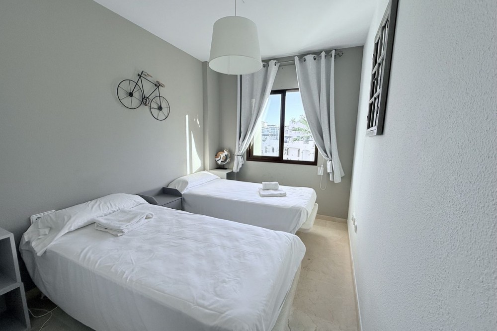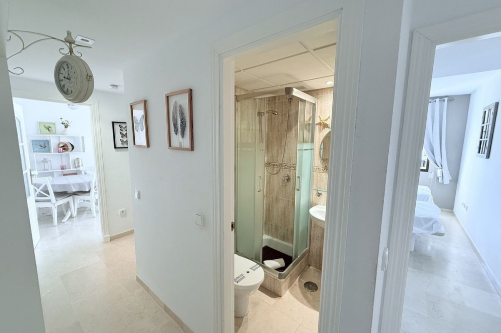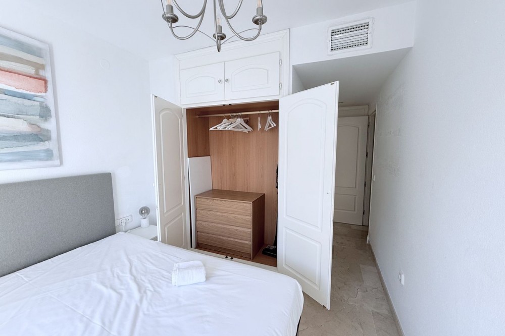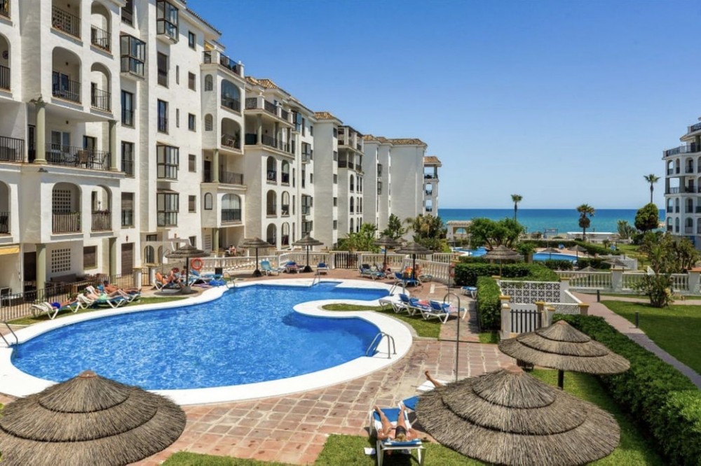 - Apartment for Sale in La Duquesa – First Line Beach This bright and spacious 2-bedroom, 2-bathroom apartment is located on the very first line of the beach in La Duquesa, offering an unrivalled lifestyle by the sea. Just a few steps separate the residence from the sandy beach, where you can enjoy spectacular views of Gibraltar and the African coastline. From here, every day begins with the rising sun over the Mediterranean and ends with breathtaking sunsets on the horizon. The property is situated right next to the lively port of La Duquesa, where a wide selection of restaurants, cafés, and bars create a vibrant social atmosphere. Beyond dining, the marina offers the opportunity to embark on boat trips or leisurely walks along the promenade. Daily shopping is equally convenient, with supermarkets such as Lidl and other services just minutes away. The apartment itself is very luminous thanks to its well-designed layout and large windows that allow natural light throughout the day. With 82m² of living space, it includes two comfortable bedrooms, two modern bathrooms, a fully equipped kitchen, and a living-dining room that opens onto a terrace with sea views. Residents benefit from access to three community swimming pools surrounded by landscaped gardens, making this complex ideal both for holidays and year-round living. An underground garage space is included, providing comfort and security.