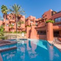 - Ample and bright top floor apartment in Elviria Playa in East Marbella offering three bedrooms, two bathrooms, a glazed and covered terrace, bright living room with access to terrace and a very large fully equipped kitchen with separate laundry room. Equipped with marble floors, AC hot and cold, awning, blinds, underground parking space and storage room. Lift. Complex with three pool areas, a small gym with sauna and within a small walk from the beach and all local amenities.
