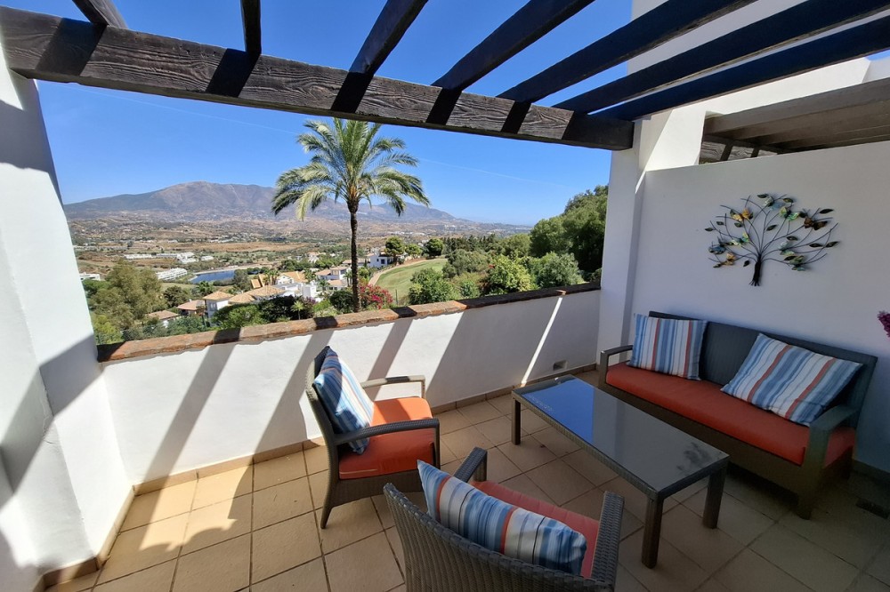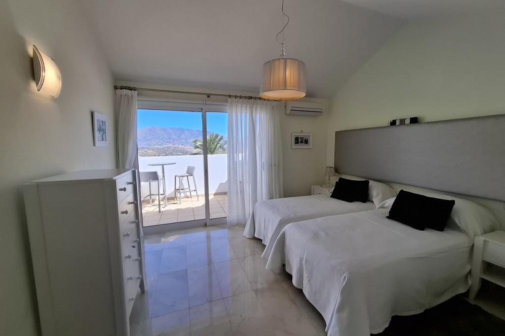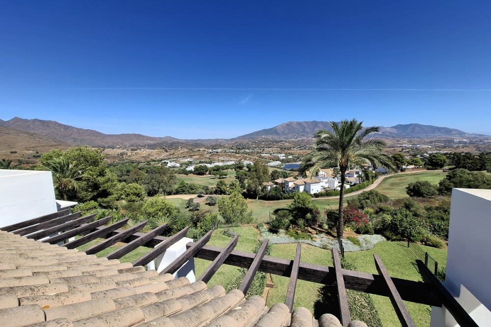 - Nestled within the prestigious enclave of La Cala Golf Resort, this impeccably appointed 3-bedroom townhouse offers a harmonious blend of refined elegance and contemporary comfort. Designed for discerning buyers, the residence boasts panoramic views of the rolling fairways and the surrounding Andalusian countryside, delivering a lifestyle of tranquility and prestige. Step inside to discover a spacious, light-filled interior where high ceilings, premium finishes, and bespoke detailing create an atmosphere of understated luxury. The open-plan living and dining area flows seamlessly onto a private terrace—perfect for alfresco entertaining or quiet contemplation amidst the Mediterranean breeze. The gourmet kitchen is a chef’s delight, outfitted with top-tier appliances and sleek cabinetry. Upstairs, the master suite is a haven of indulgence, featuring a private balcony, ample wardrobe space, and a spa-inspired en-suite bathroom. Two additional bedrooms offer versatility for guests, family, or a dedicated workspace. Each of the three generously proportioned bedrooms is a sanctuary of comfort and style, bathed in natural light and thoughtfully designed to evoke a sense of calm and retreat. The master suite and second bedroom both feature elegant en-suite bathrooms, finished with premium fixtures, walk-in showers, and sleek marble accents—perfect for moments of indulgence and privacy. The heart of the home is its open-plan kitchen, where modern design meets functionality. Outfitted with high-end appliances, stone countertops, and ample storage, it flows effortlessly into the dining and living areas, creating a seamless space for entertaining or relaxed family living. Step outside to discover a beautifully landscaped private garden—an expansive haven ideal for sun-soaked afternoons, alfresco dining, or simply unwinding in the serene surroundings of La Cala Golf Resort. Whether hosting guests or enjoying quiet solitude, this outdoor space elevates the property into a true lifestyle residence.