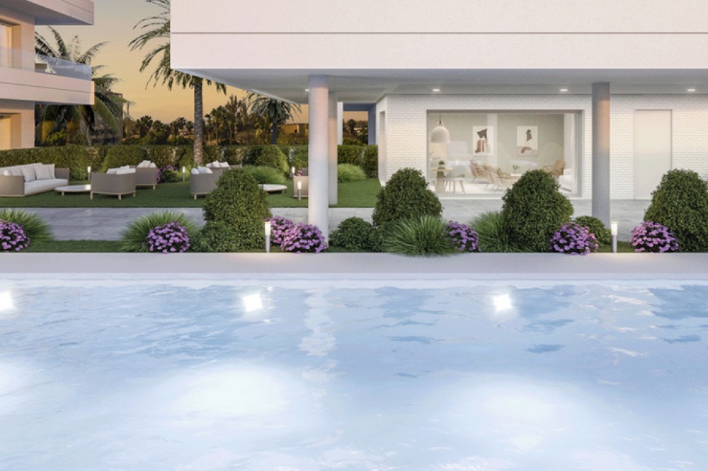 - New Development: Prices from €431,655 to €462,210. [Bedrooms: 3] [Bathrooms: 2] [Built size: 121m2]. This building has been completed since August 2025. It is ready for a visit. The development is located on the Costa del Sol, on undulating terrain filled with lakes and surrounded by the famous golf courses of Nueva Andalucía. This complex is situated in the municipality of Marbella, Málaga, undoubtedly one of the best-known Spanish destinations for its high quality of life and pleasant climate. This project is set in a privileged area, just 13 minutes by car from the center of Marbella and less than 10 minutes from Puerto Banús. An ideal place to enjoy both the beach and nature in equal measure. This municipality is known for its exclusive private residential areas and luxurious apartment complexes. Living in this development means enjoying all the benefits of a peaceful life on the Costa del Sol while also having access to the beaches and leisure activities that characterize Marbella. This development has everything necessary close at hand. Within less than 5 km there are numerous beaches and sports and leisure facilities, among which the many golf clubs stand out: Los Naranjos, Las Brisas, or the Real Club de Guadalmina. Likewise, the Guadaiza sports complex offers tennis courts, paddle courts, a football field, basketball court, pétanque, and an outdoor swimming pool, among others. This project is less than 5 minutes’ walk from shops, supermarkets, restaurants, and pharmacies. A quiet and pleasant area close to many leisure and entertainment options. Nueva Andalucía has all the features that make up a true “dream life.” This development is also very well connected. The nearest airport is Málaga-Costa del Sol, located about 50 km away, and only 40 minutes by car to Marbella via the new AP-7 motorway. For those who prefer to travel by train, there is the AVE high-speed service to Málaga. Common areas with all amenities Every day we value more the possibility of enjoying outdoor leisure and recreation without leaving our home. The common areas have been designed into two unique spaces, where you can enjoy the natural surroundings and all kinds of activities. The main feature of the common areas is the 90 m² swimming pool with saline chlorination and night lighting, surrounded by a large solarium with grass where you can enjoy the many sunny days, accompanied by a chill-out area overlooking the pool. In addition, this development has a fully equipped gym with an outdoor exercise area and a social club overlooking the pool, where you can share pleasant moments with family and friends. Spaces full of light This project seeks to maximize the connection of the buildings with the beauty of the outdoors. For this reason, the team, together with Herrero-Osborne Arquitectos, have designed generous spaces and large windows in the homes, making the most of natural light in all its splendour.