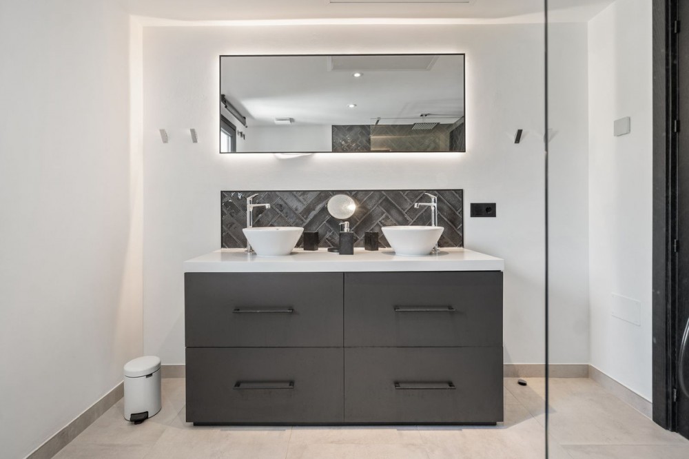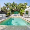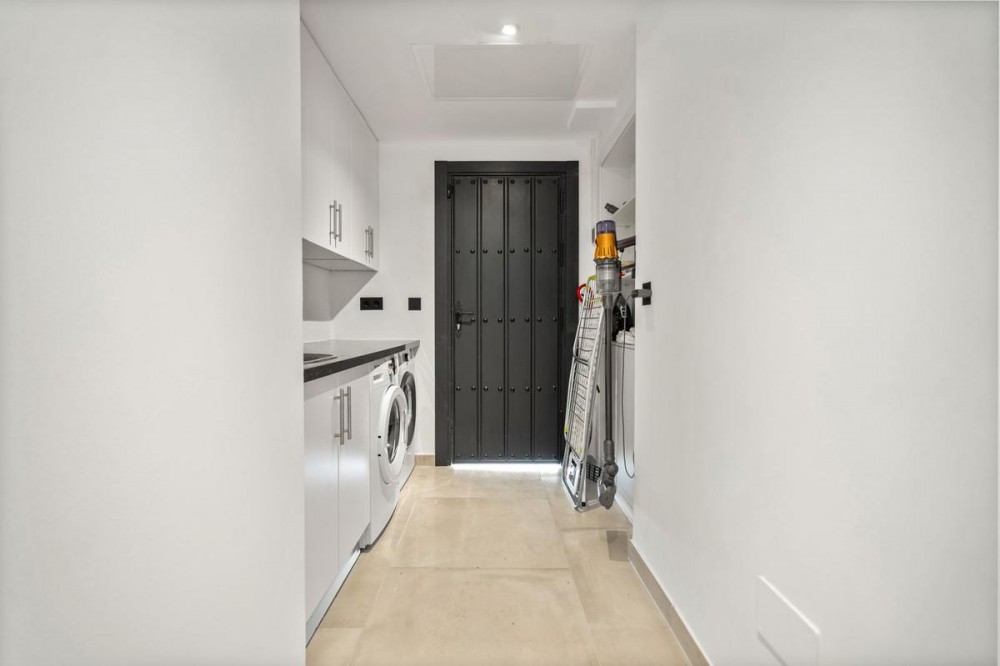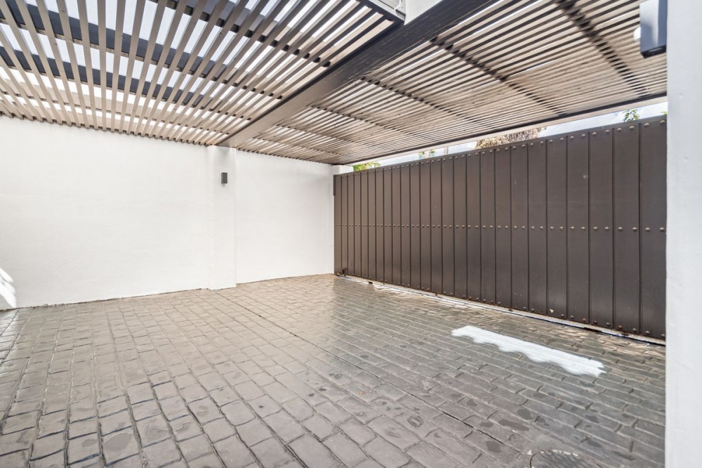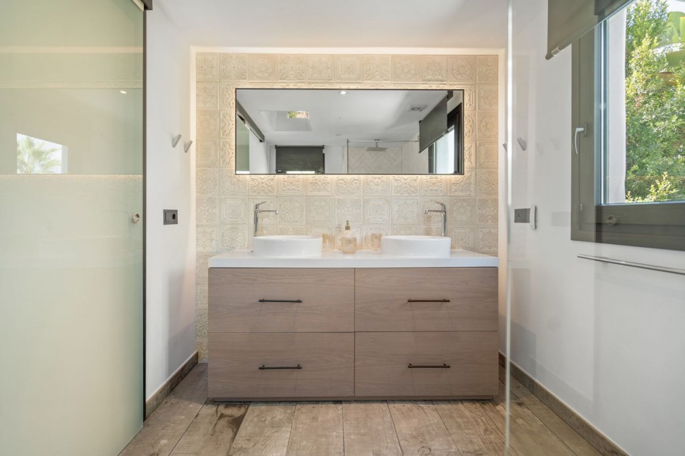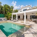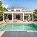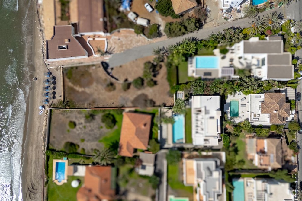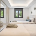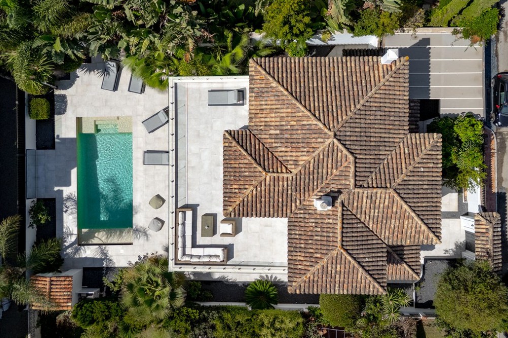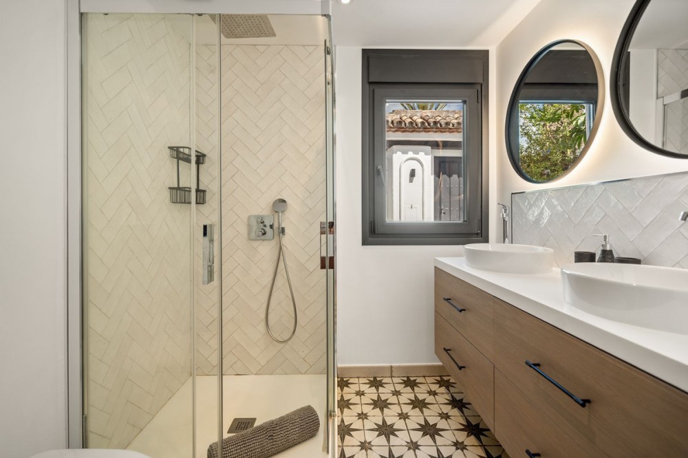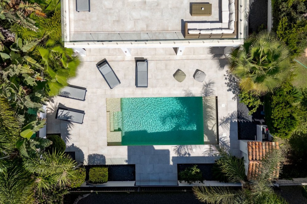 - This outstanding luxury villa, fully renovated to the highest standards in 2022, is located just 200 metres from the beach in Marbesa—one of Marbella’s most prestigious and sought-after residential areas, ideally positioned near Elviria and the charming port of Cabopino. Occupying a south-facing plot of 527 m², the property offers 344 m² of elegant living space across two floors, perfectly complemented by expansive outdoor areas designed for refined year-round living. The main level welcomes you with an inviting entrance hall leading into a luminous open-plan kitchen, dining and living area with fireplace and a cosy snug alongside a guest toilet. This floor also includes two spacious bedrooms with fitted wardrobes, a stylish bathroom, laundry room and storage. The upper level features a sophisticated chill-out lounge with sofa and TV, two large and luxurious en-suite bedrooms, one with a walk-in wardrobes and the other with fitted wardrobes. Both bedrooms and the chill out area have access to a generous sun-drenched terrace overlooking the garden. Outdoors, the villa embraces an authentic Mediterranean lifestyle with mature greenery and fruit trees including lemon, orange and pomegranate, enhanced by an 8 × 4 m private swimming pool, multiple elegant chill-out areas, and a covered patio. There is a covered area with parking for two cars. Modern comforts include underfloor heating, air conditioning, electric shutters, a professional security system, alarm and video intercom—ensuring the highest level of comfort and peace of mind. Ideally situated in Marbella East, this exceptional property offers the perfect balance of serenity and convenience, with prestigious golf clubs, international schools, and some of the Costa del Sol’s finest beaches, beach clubs and restaurants just moments away. A truly remarkable residence for those seeking luxury, exclusivity, and the ultimate Marbella lifestyle.